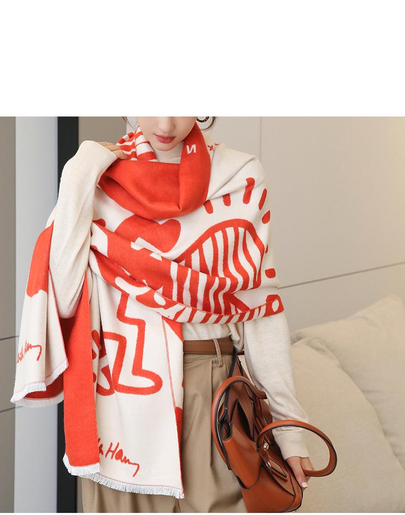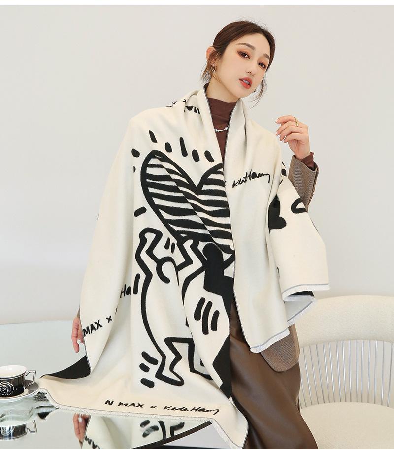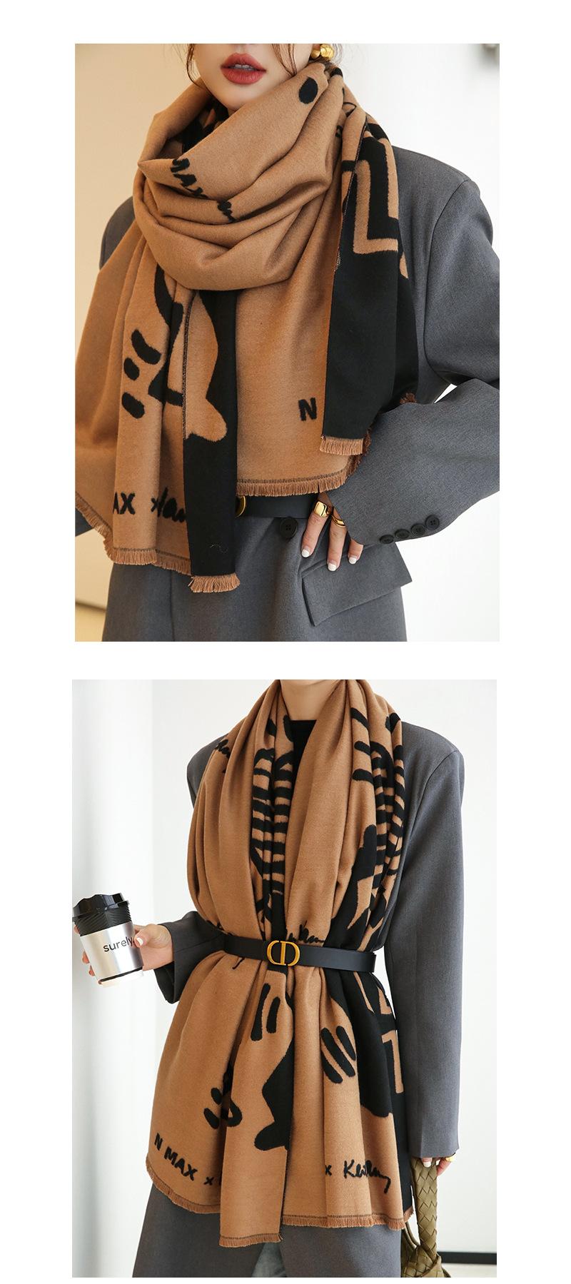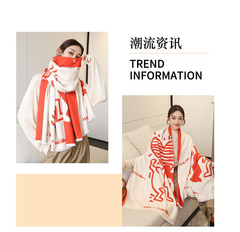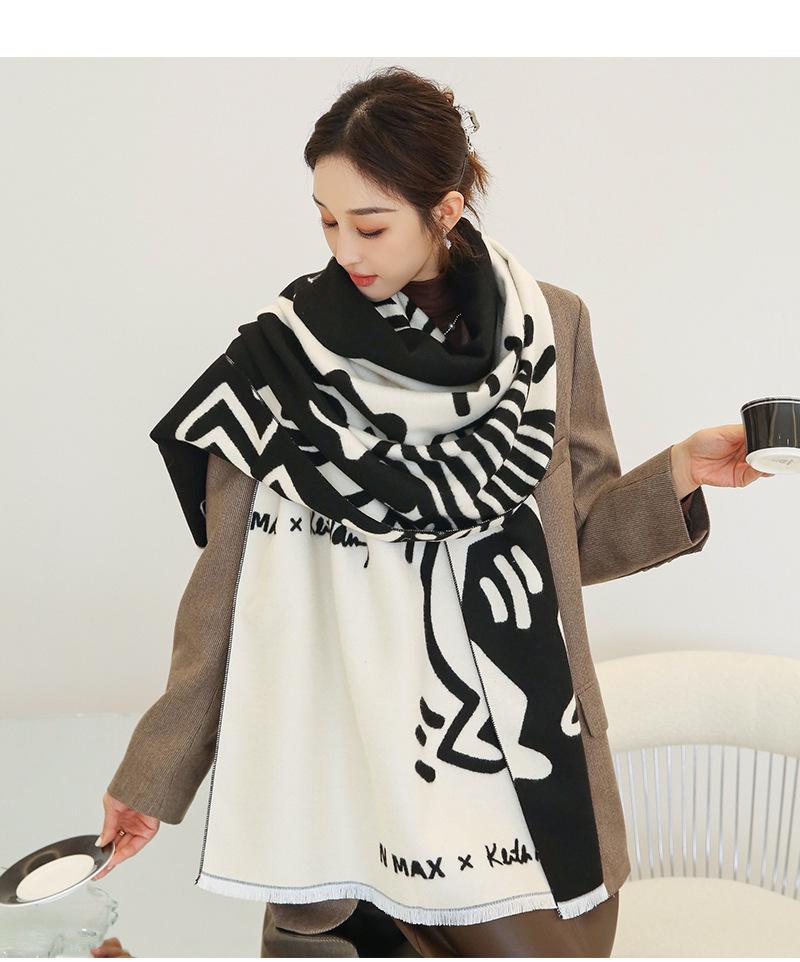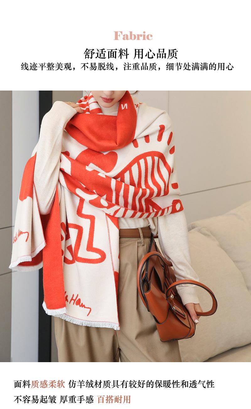 | Bufanda cálida nueva de otoño e invierno con letra H a juego de colores para mujer, chal largo grueso y cálido de doble cara de imitación de cachemira |
