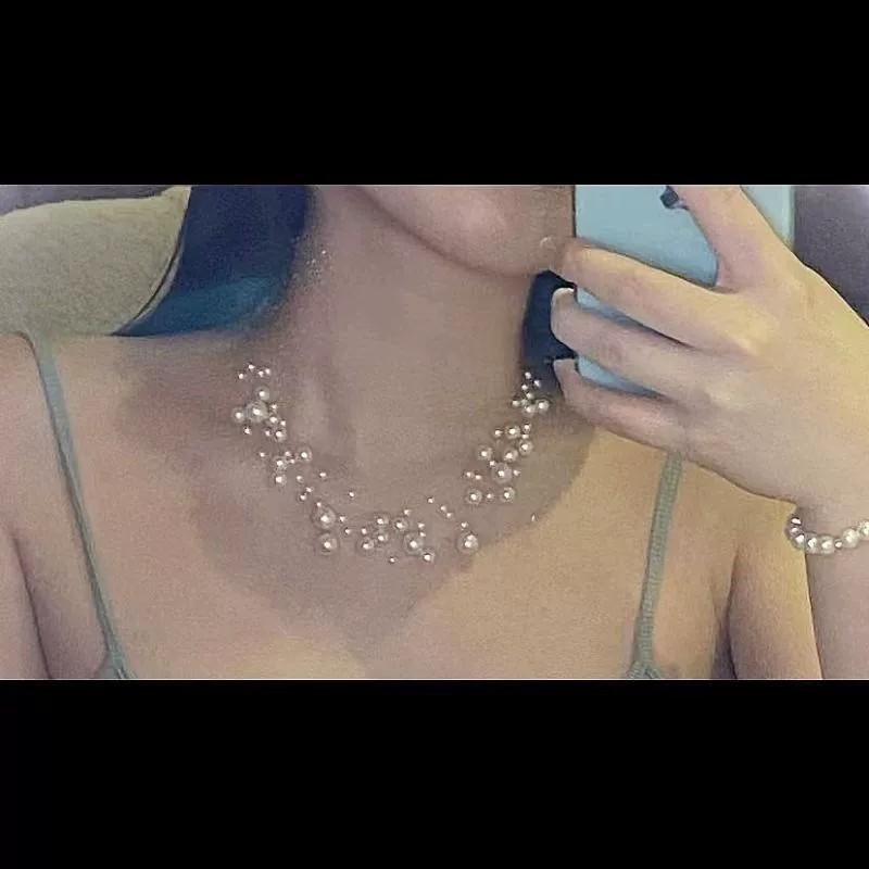 Collar de perlas de estrellas, diseño de nicho, collar de alta gama 2024, nuevo, elegante, ligero, de lujo, cadena de clavícula para mujer, verano