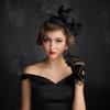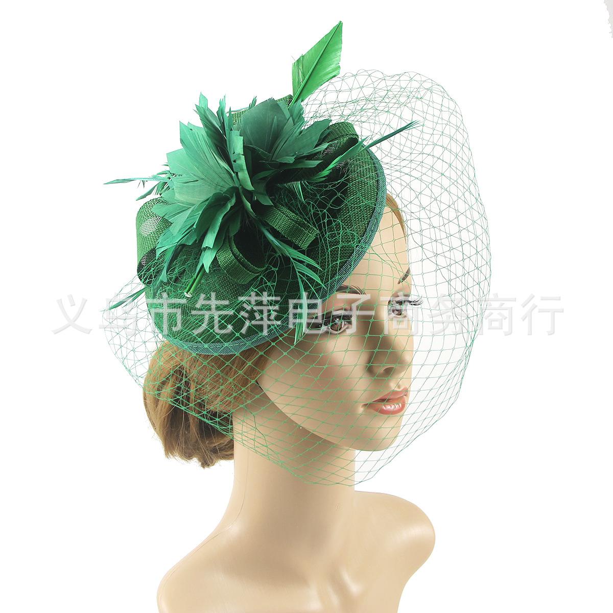 Nuevo y popular sombrero de copa de Amazon, accesorio para el cabello, tocado de plumas para novias europeas y americanas, sombrero de cáñamo de malla británico vintage para niños.