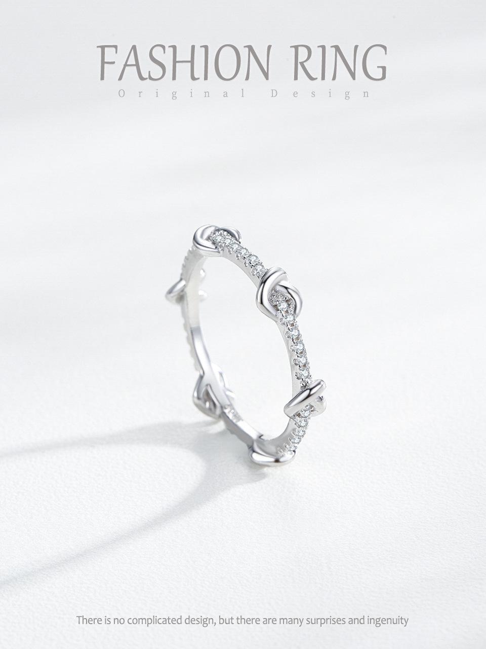 Anillo de plata de ley S925 con diamantes de imitación para mujer, diseño de estrella, estilo frío