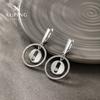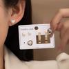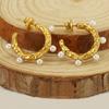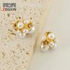 Pendientes geométricos anchos y cuadrados de estilo retro francés con perla en oro de 18 quilates para mujer.