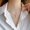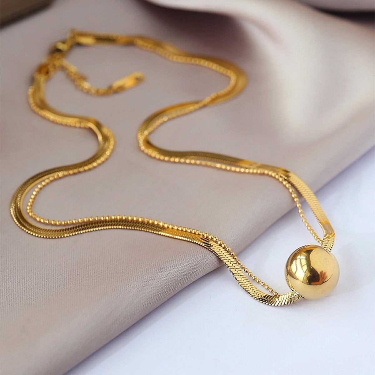 Nuevo collar doble exquisito para mujer, cadena de bolas con cuchillas, cadena de acero de titanio multicapa con cuentas de transferencia, cadena de clavícula