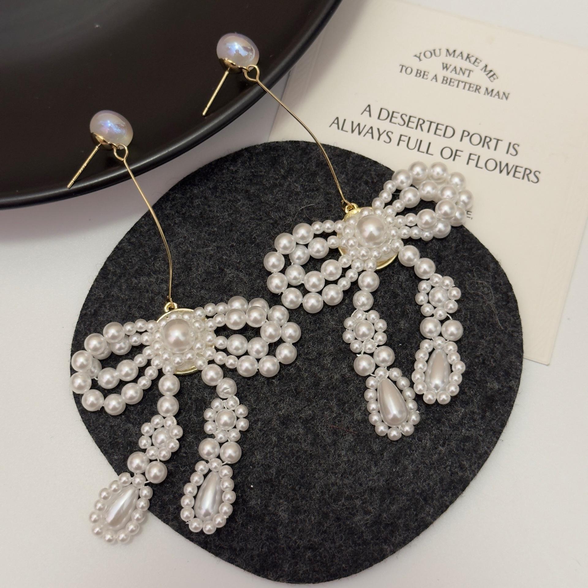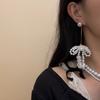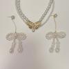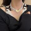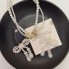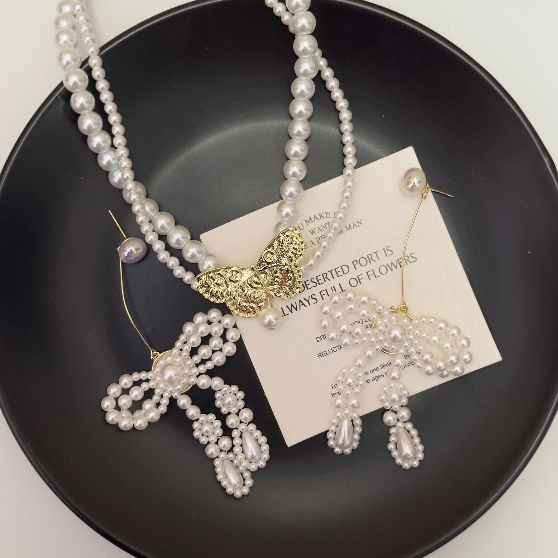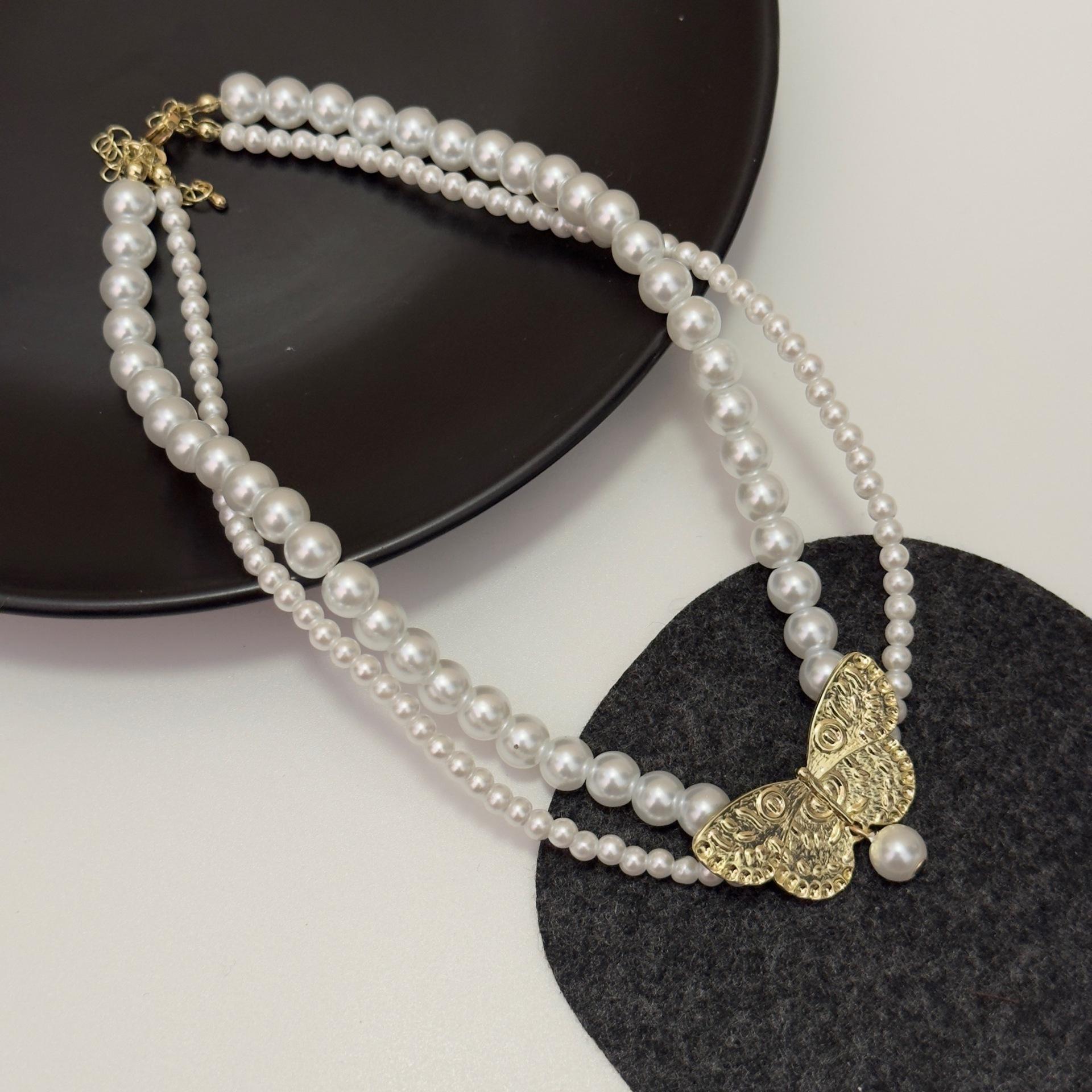Collar de mariposa de perlas de doble capa, ligero, lujoso, de alta gama, con cadena de lana, cadena para clavícula, cadena para cuello, lazo de perlas y borla.