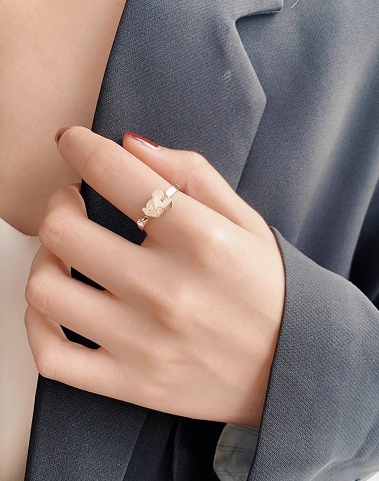 Anillo de mujer sencillo con diseño personalizado de moda, anillo de dedo índice de doble capa, pulsera, accesorios de moda en oro rosa.