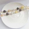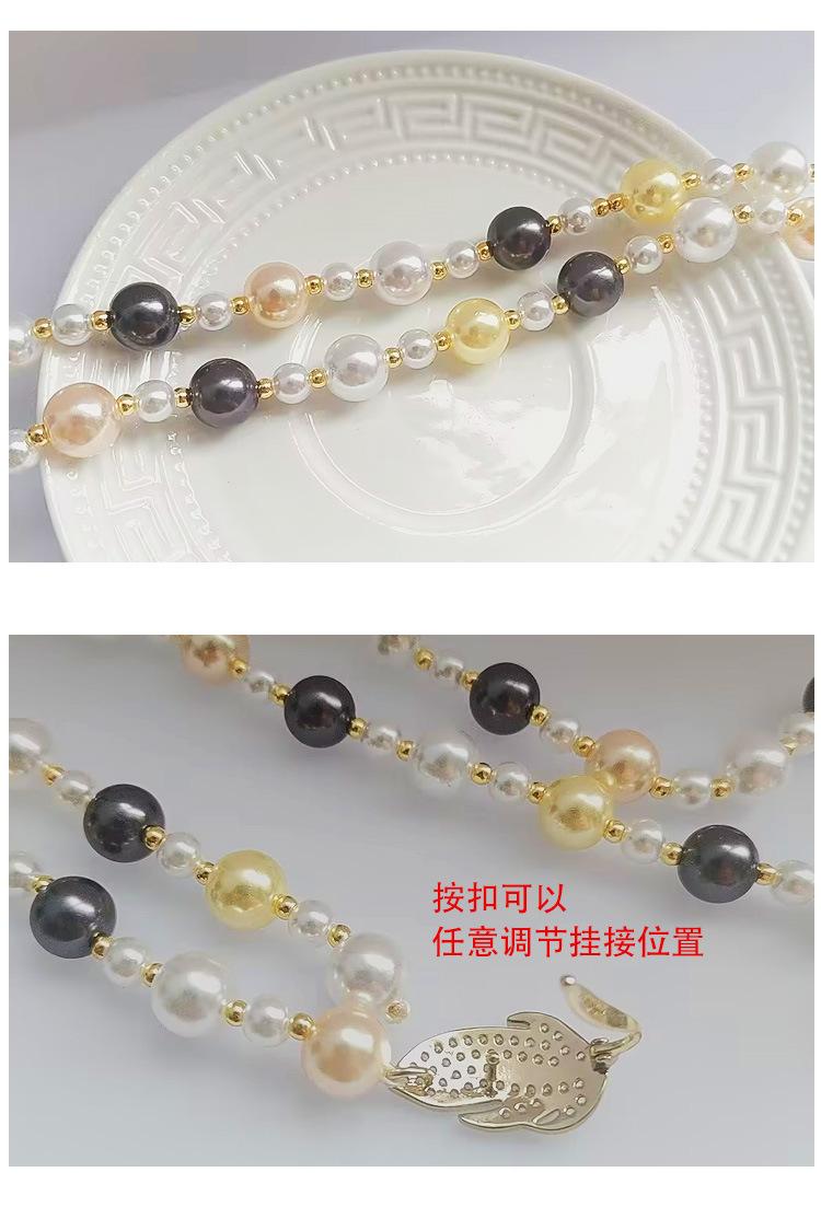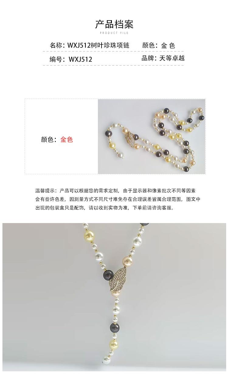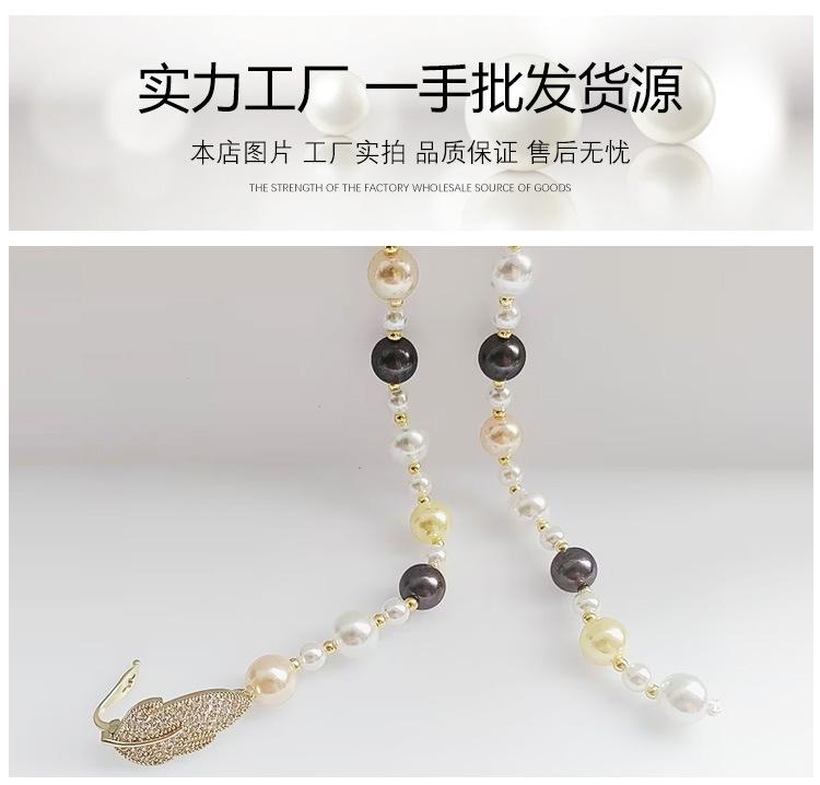 Elegante collar largo de perlas de concha de otoño e invierno para mujer, collar ajustable de moda con hojas y cadena de suéter con cuentas redondas