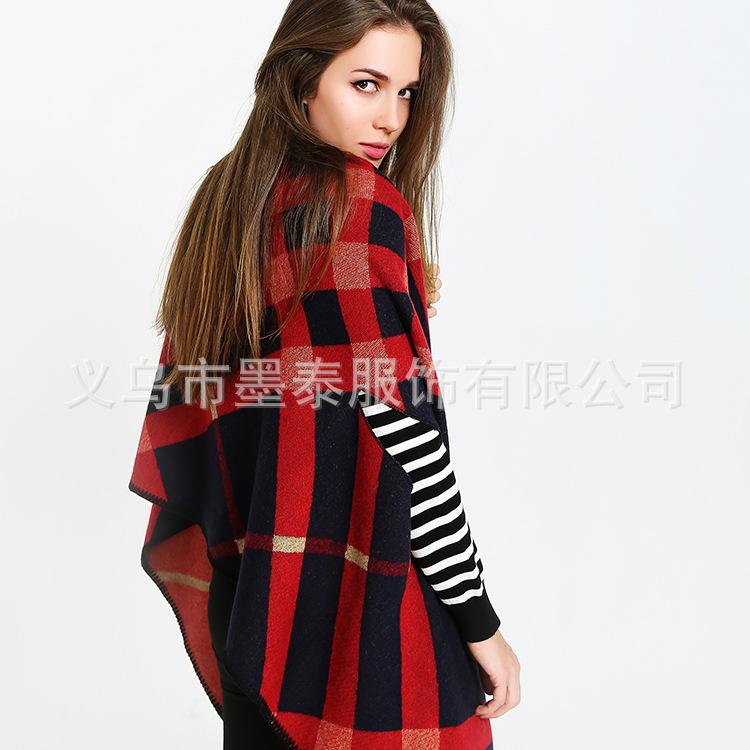• Capa de moda con chal a cuadros de barra transfronteriza, de doble propósito, sencilla y versátil, para viajes, para otoño e invierno, cálida y exterior.