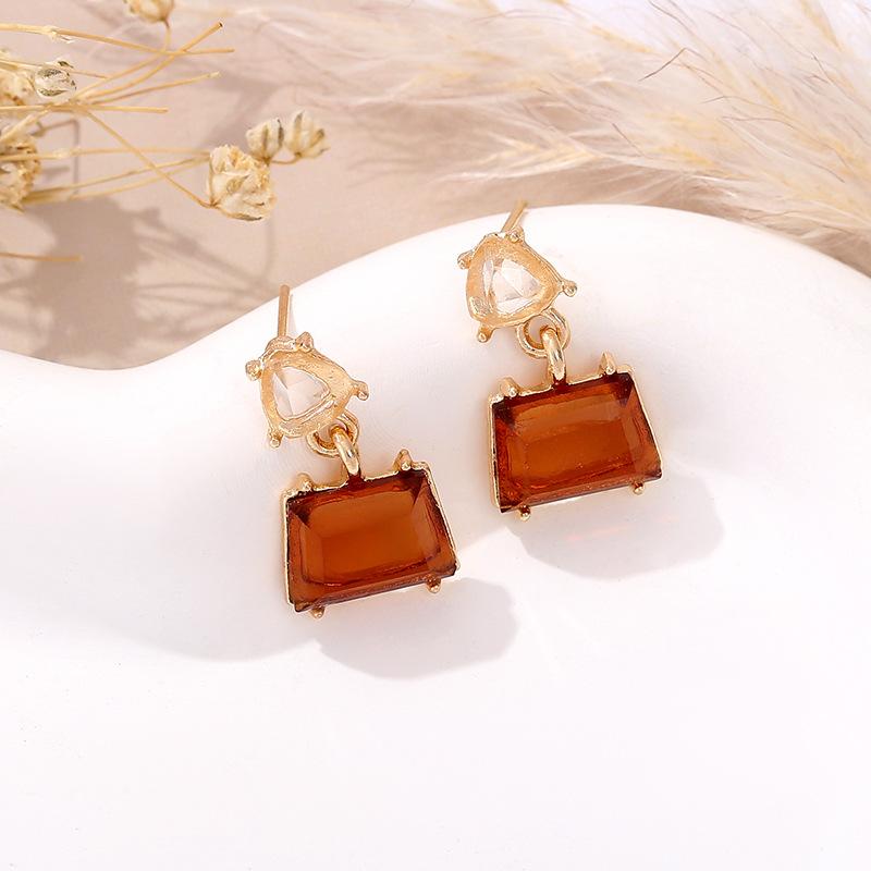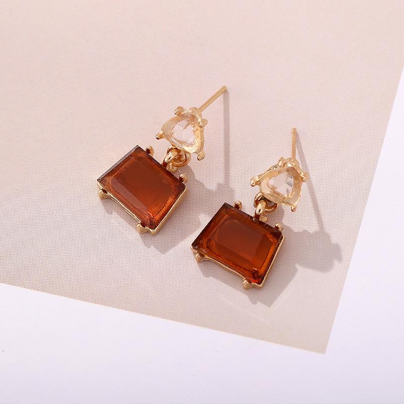 Aretes Ins de Estilo Coreano, Cuadrados Geométricos Simples, Aretes Pequeños de Cristal Marrón, Accesorios de Moda de Alta Gama para Mujer
