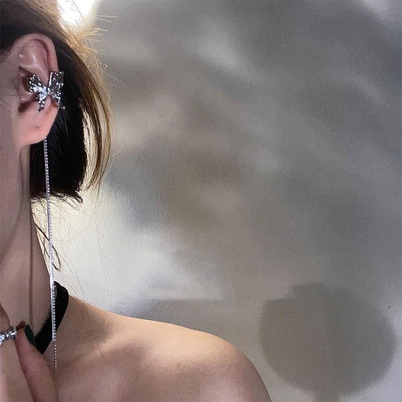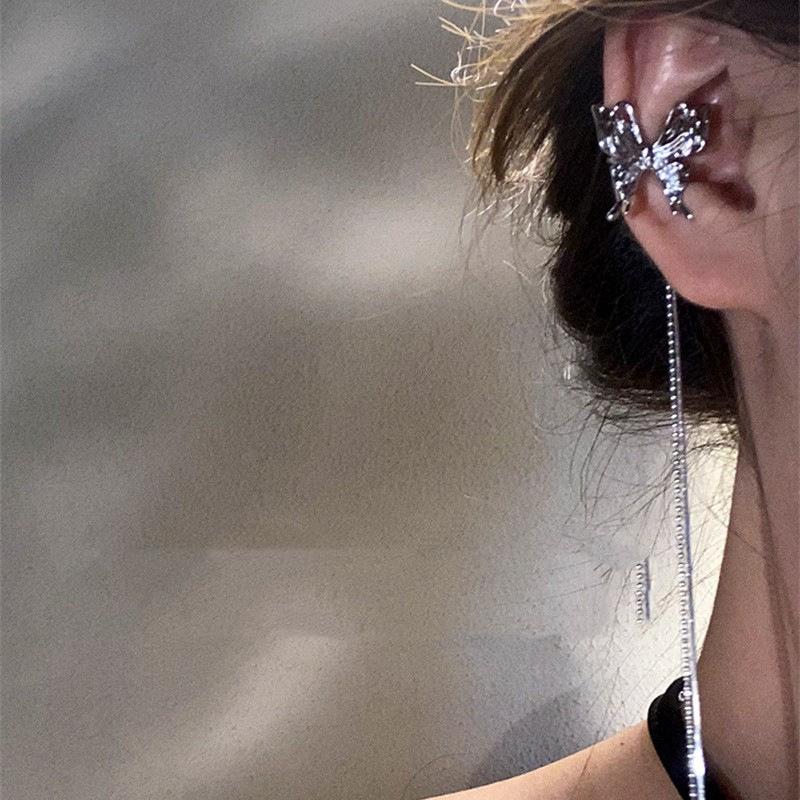 Pendientes con borlas y mariposas para mujer, sin agujeros, estilo coreano, color rojo, 2022