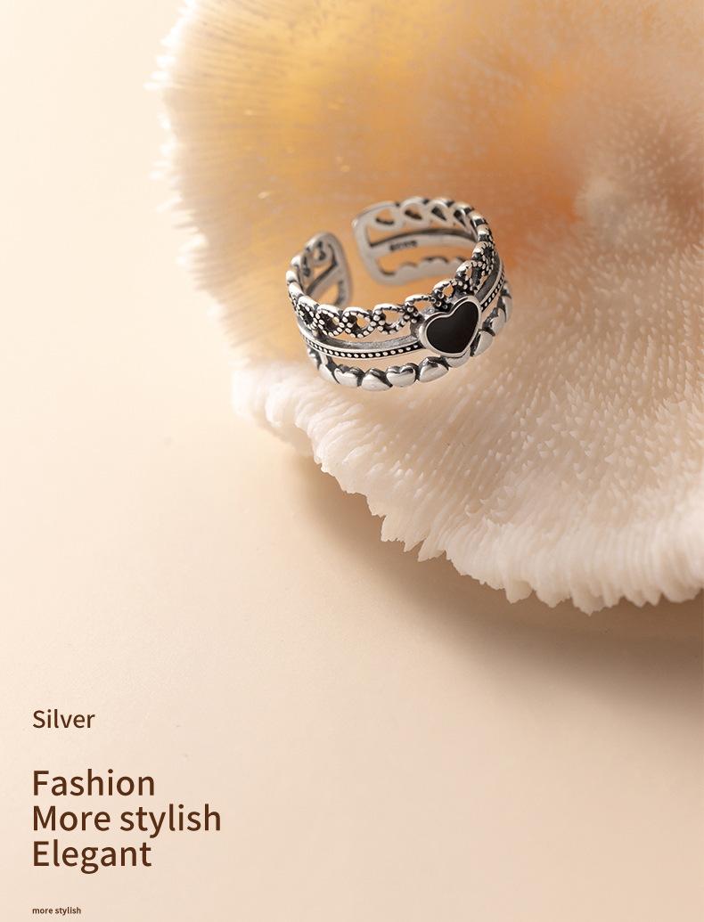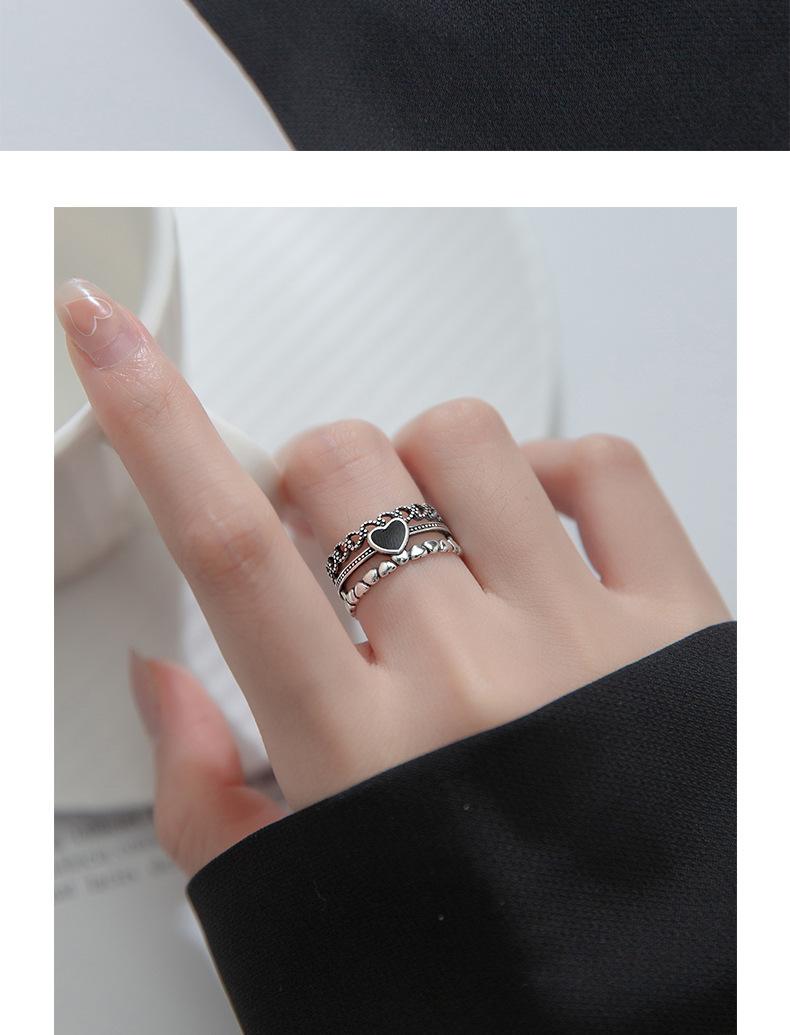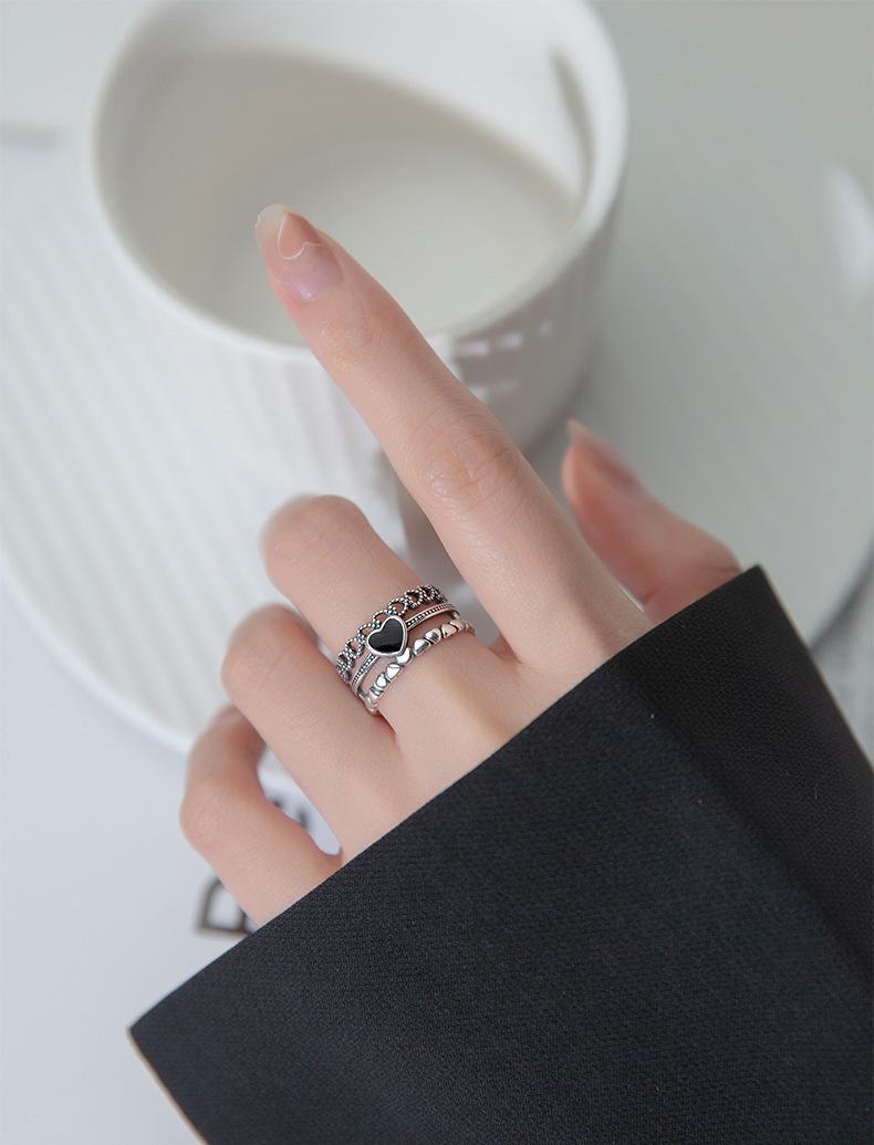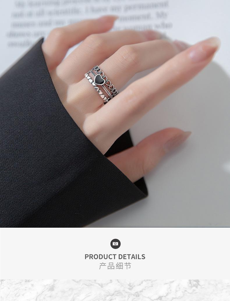 Anillo de Amor Negro Dulce y Exquisito Anillo Abierto de Encaje de Moda Multicapa para Mujer Ins Nicho Versátil Anillo de Dedo