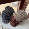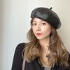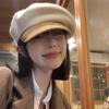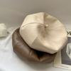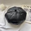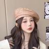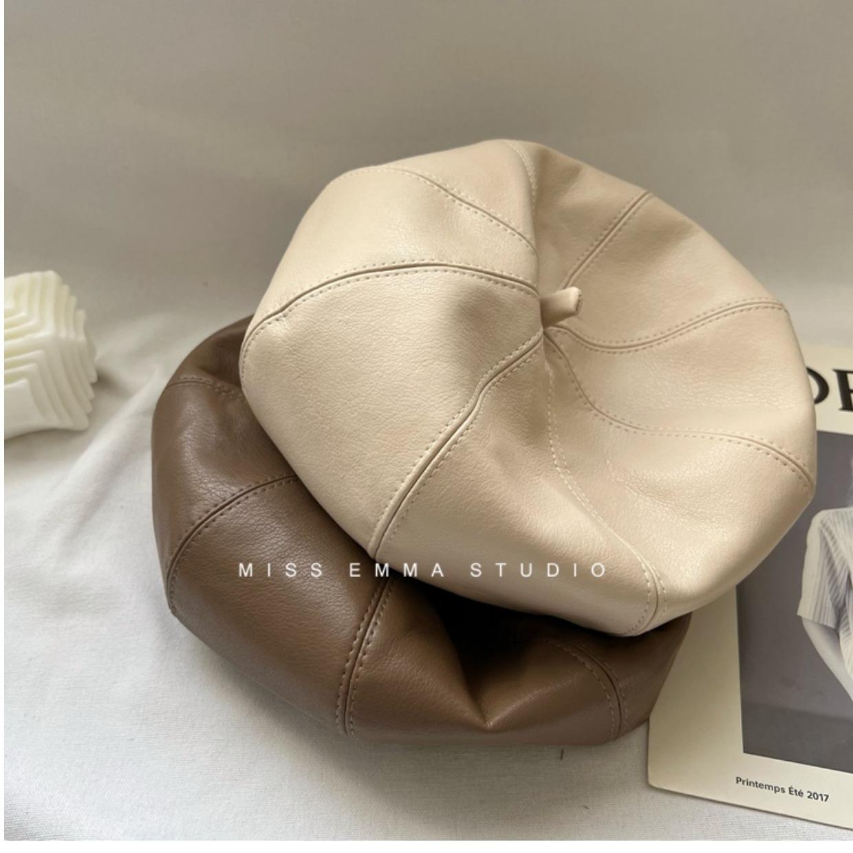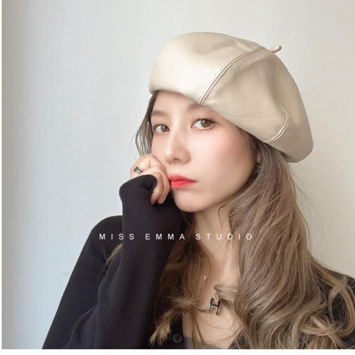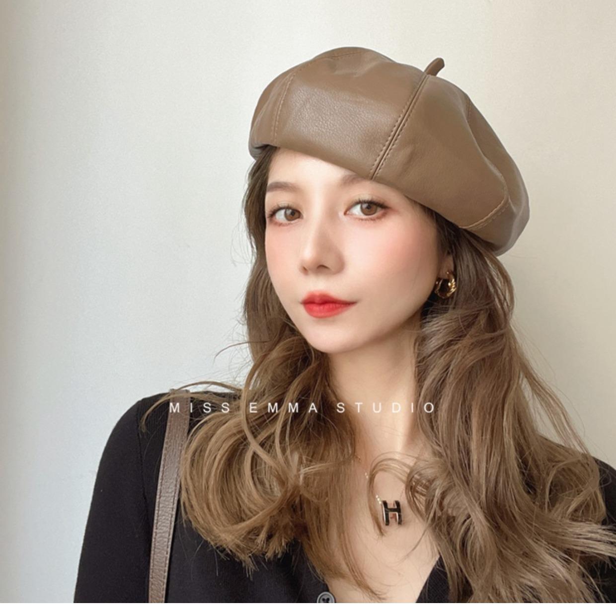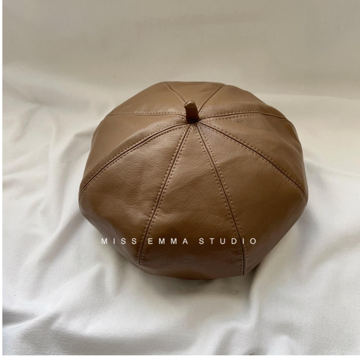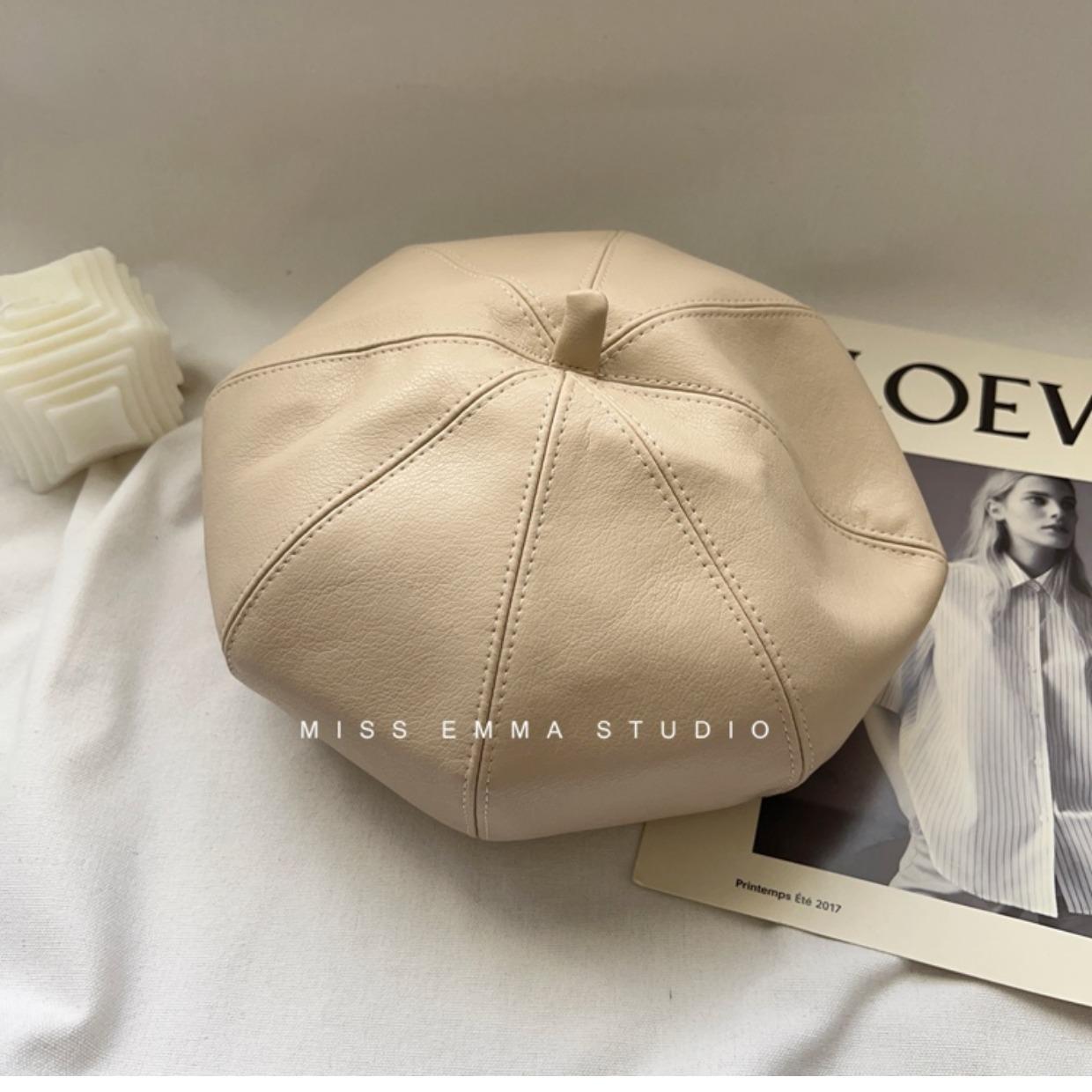 Boina de cuero PU de color sólido estilo japonés para mujer, negra, combinable con todo, que hace que la cara se vea pequeña, sombrero octogonal pequeño retro artístico de pintor, boina