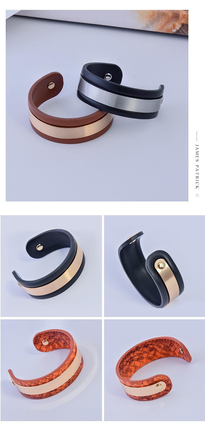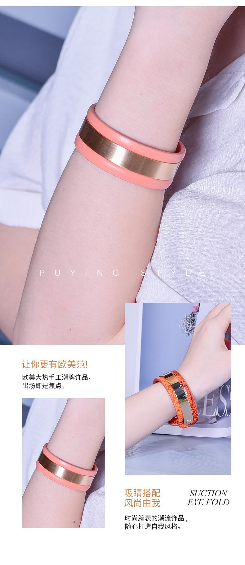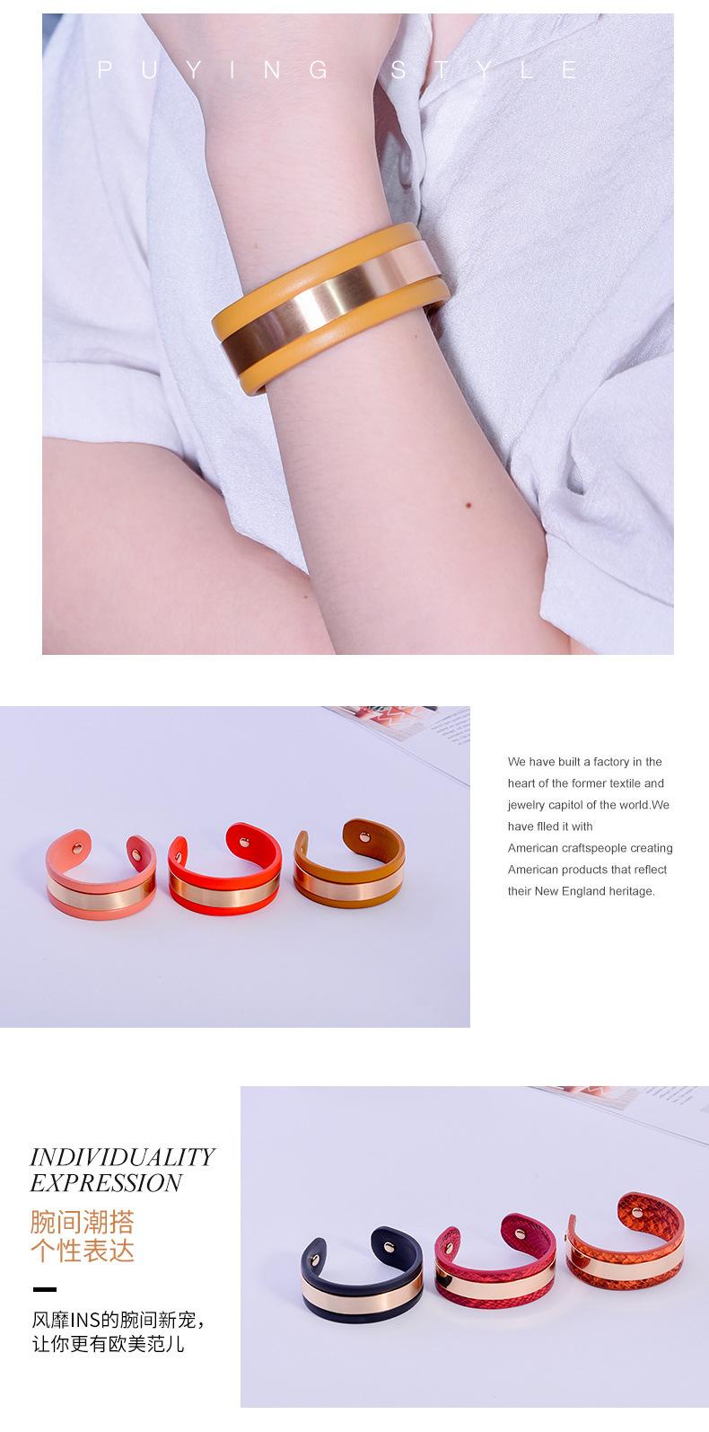 Pulsera de Cuero PU de Exportación Transfronteriza Diseño de Pulsera de Cuero Simple Abierta Media Pulsera Anillo de Cuero Accesorios para Mujer Estilo Popular de Celebridad de Internet