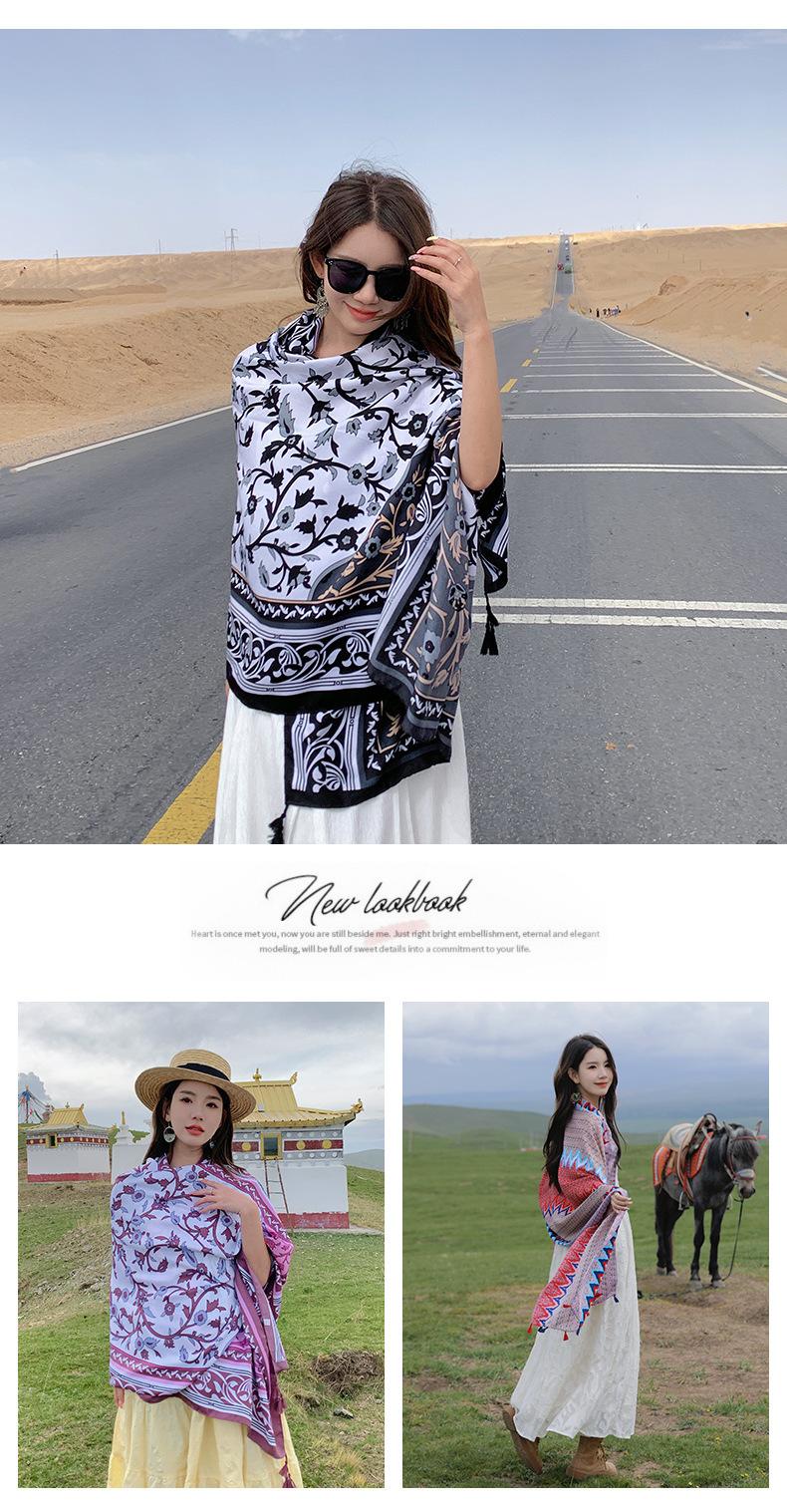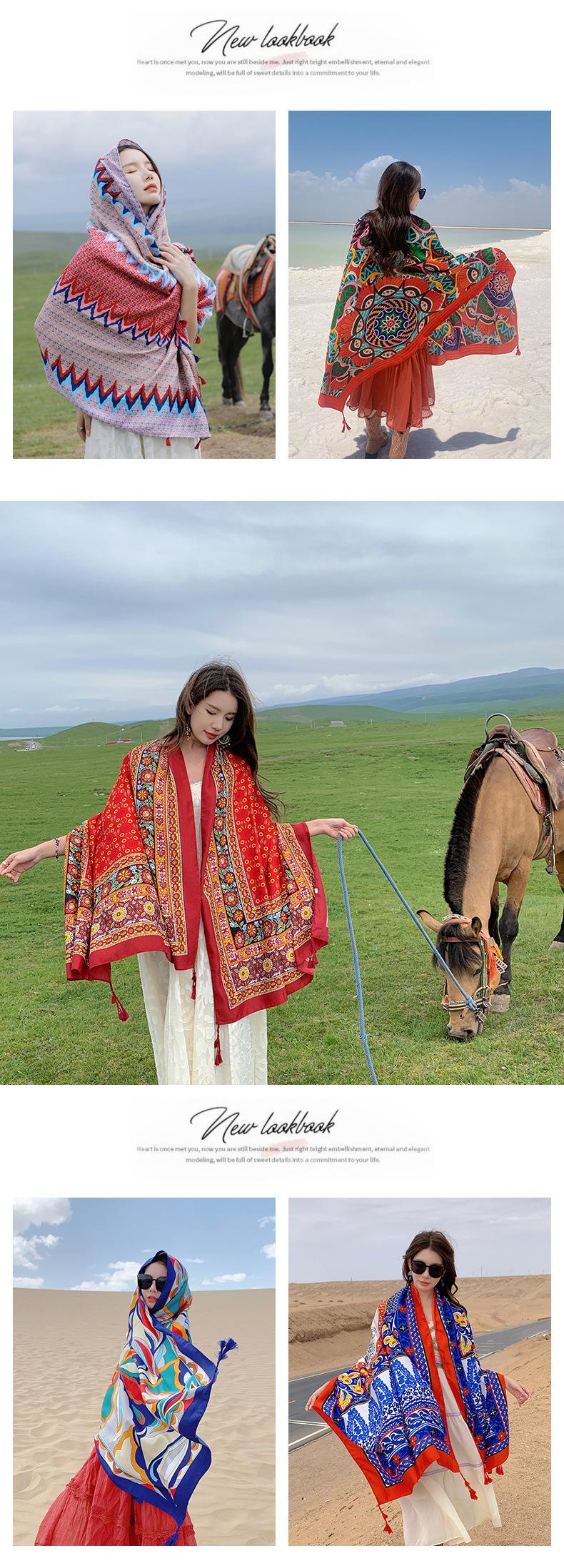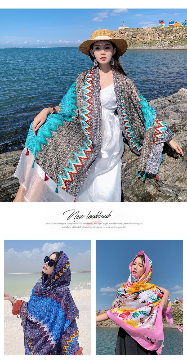 Chal grande de estilo étnico para mujer, bufanda fina de algodón y lino para fotografía de viaje por Xizang, bufanda protectora solar para el desierto de Dunhuang, toalla de playa