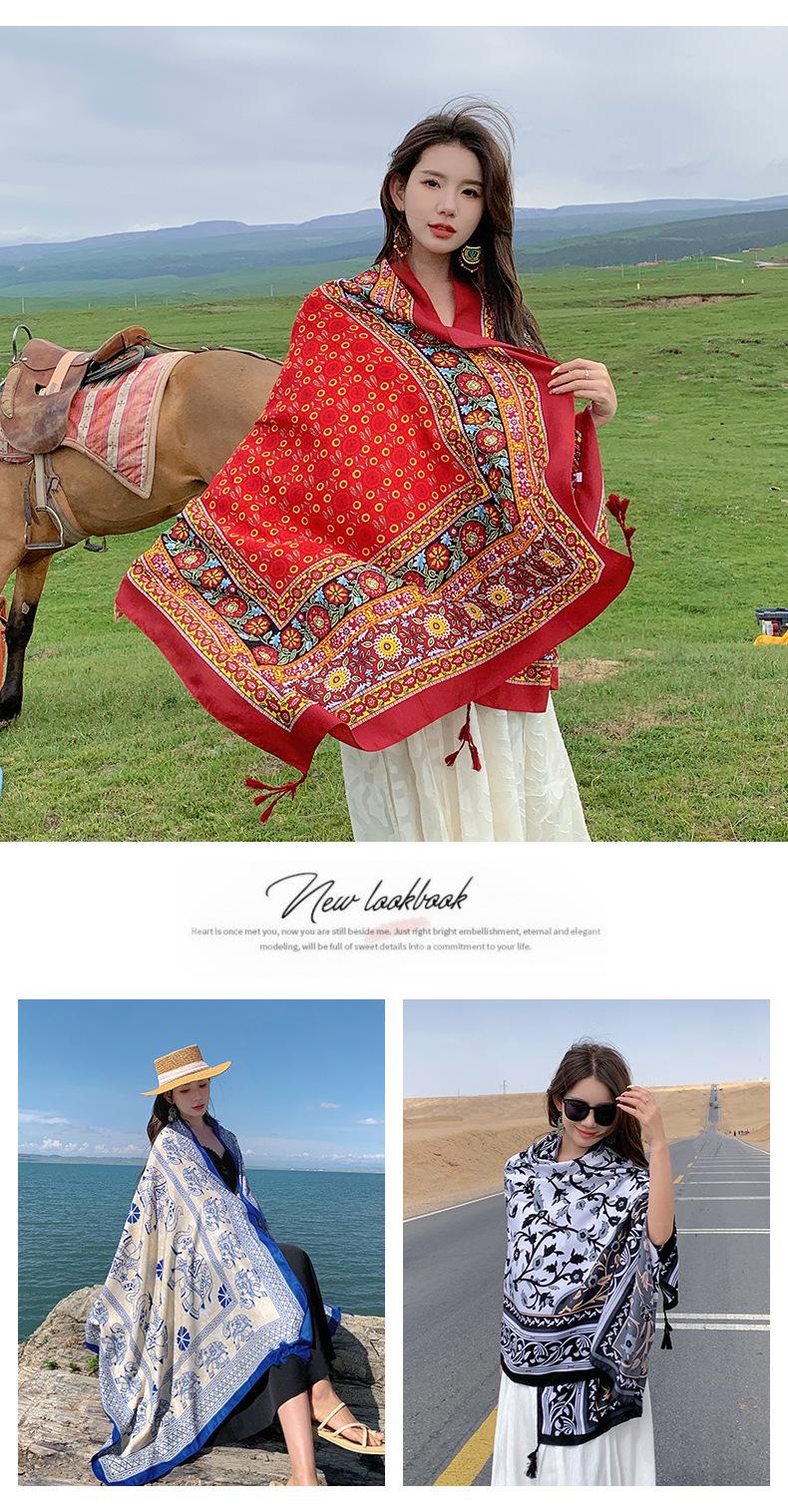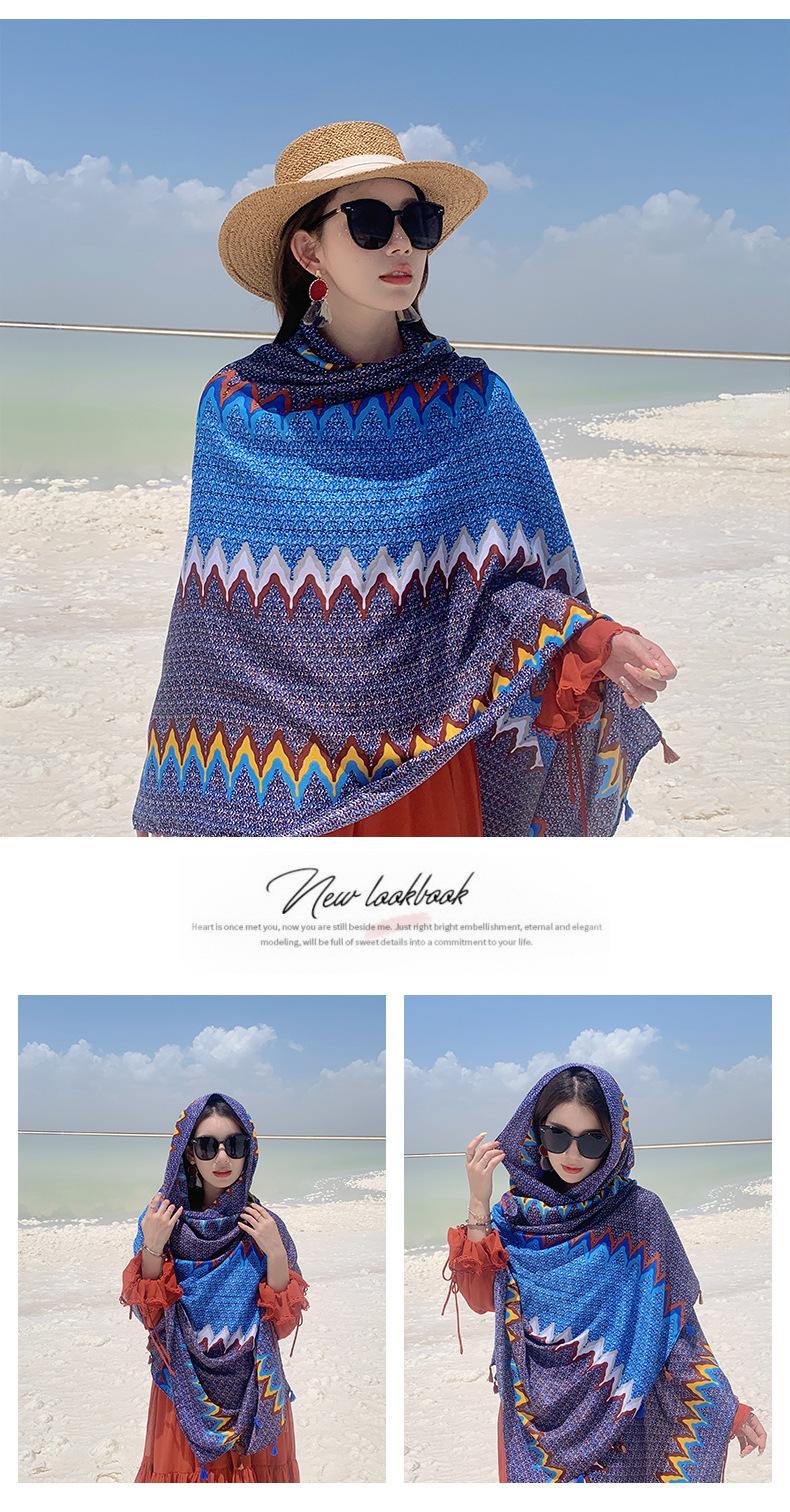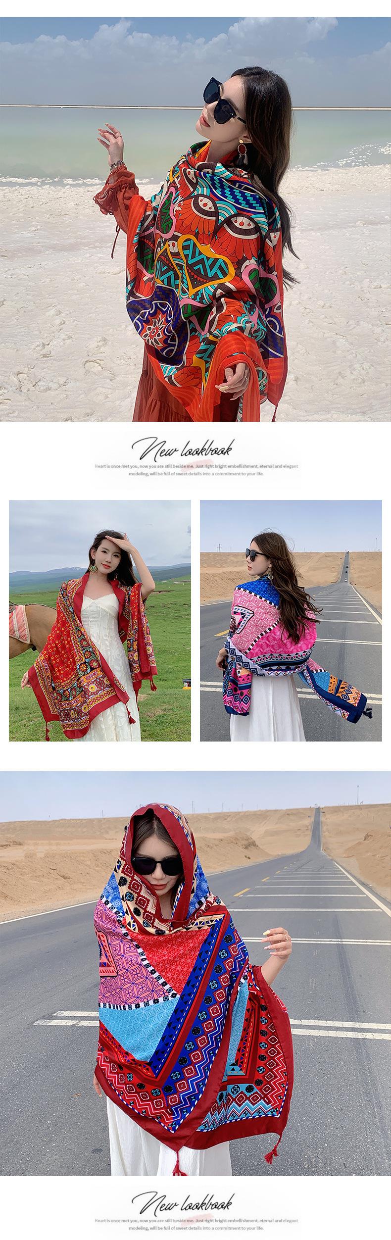 Chal grande de estilo étnico para mujer, bufanda fina de algodón y lino para fotografía de viaje por Xizang, bufanda protectora solar para el desierto de Dunhuang, toalla de playa