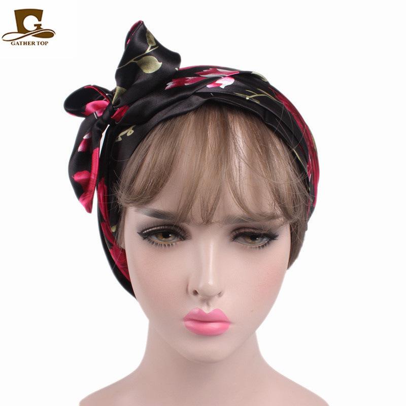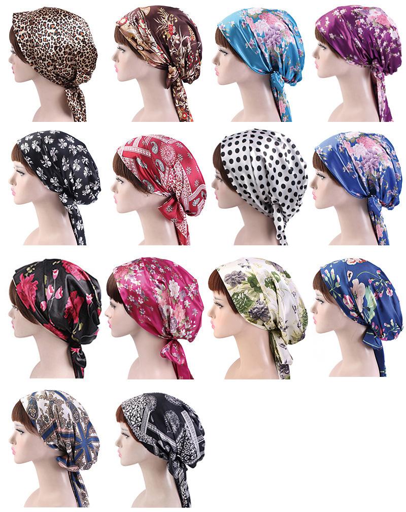 Turbante con estampado de satén, gorra con banda elástica y vendaje, sombrero pirata para el cuidado del cabello JDT-217C |