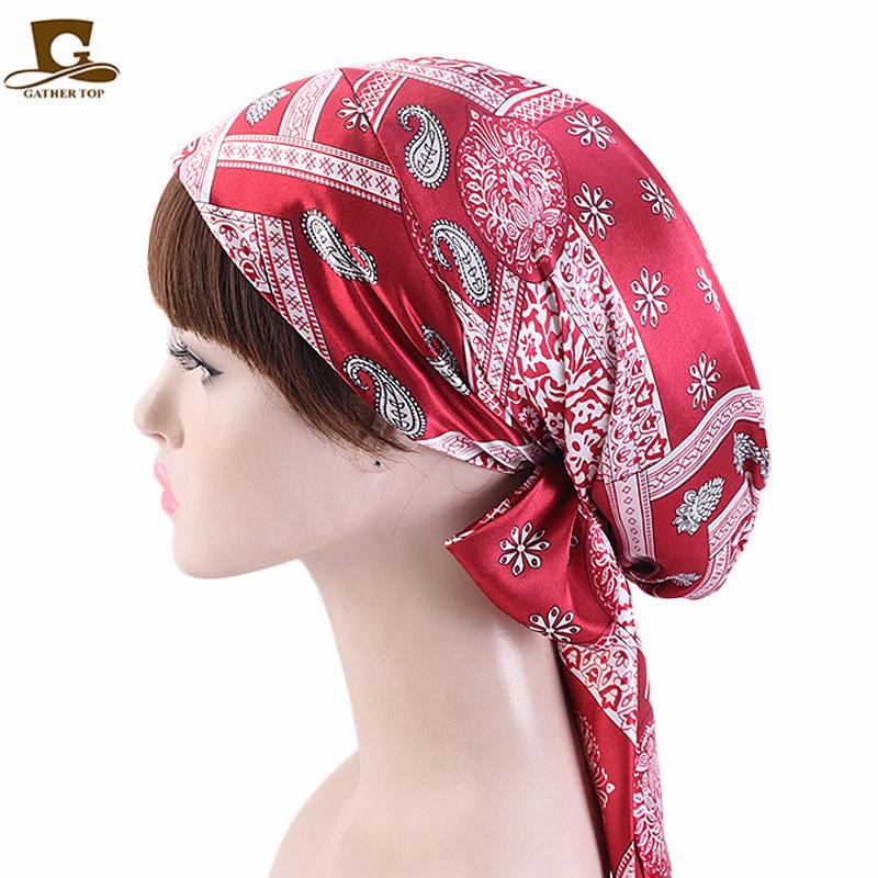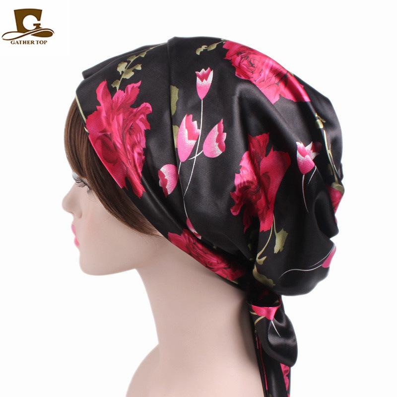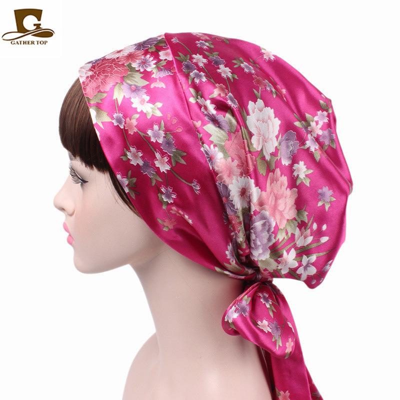 Gorro de dormir de satén de seda artificial, gorro elástico triangular para mujer, gorro de quimioterapia, gorro de confinamiento, gorro para el hogar |