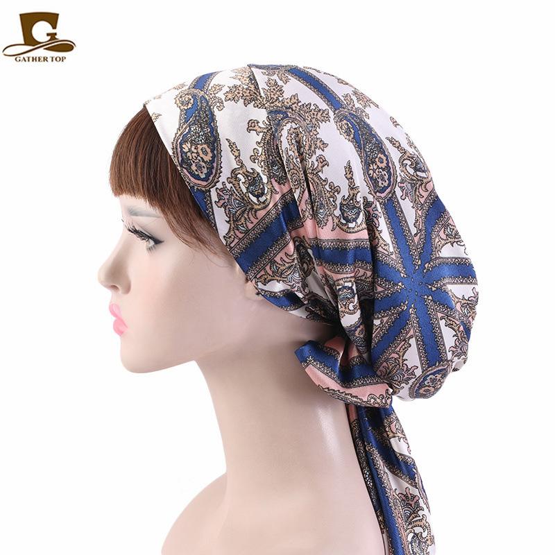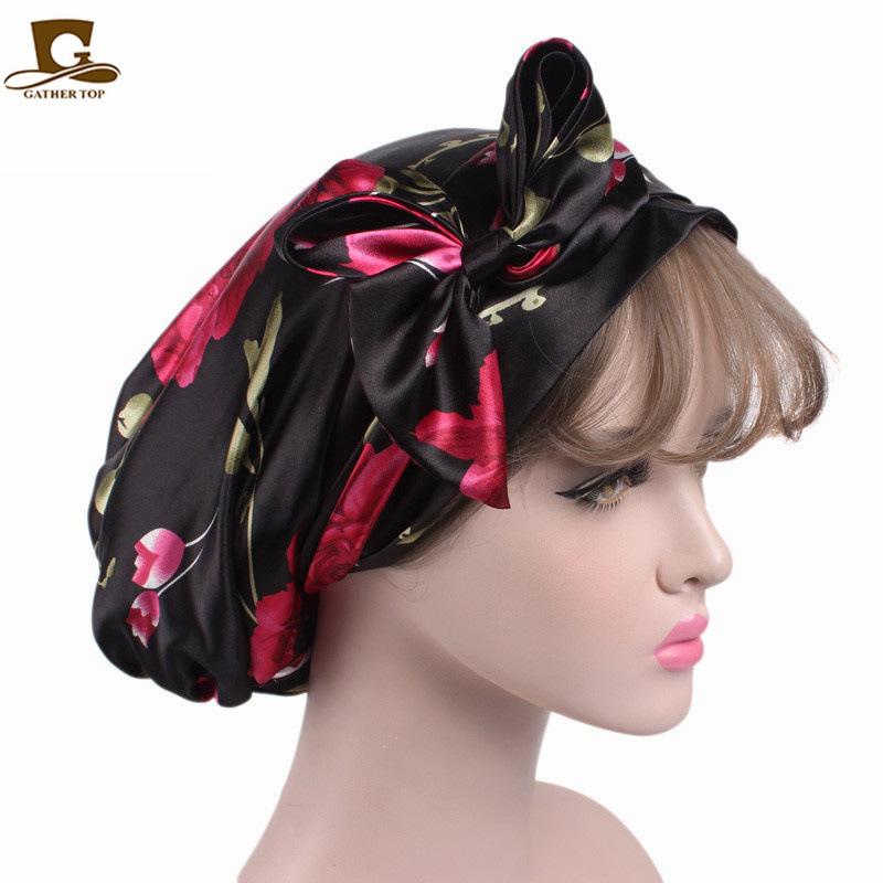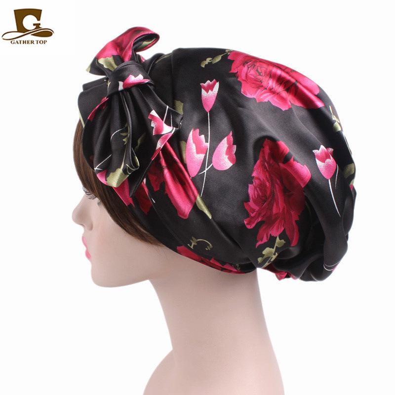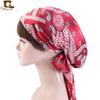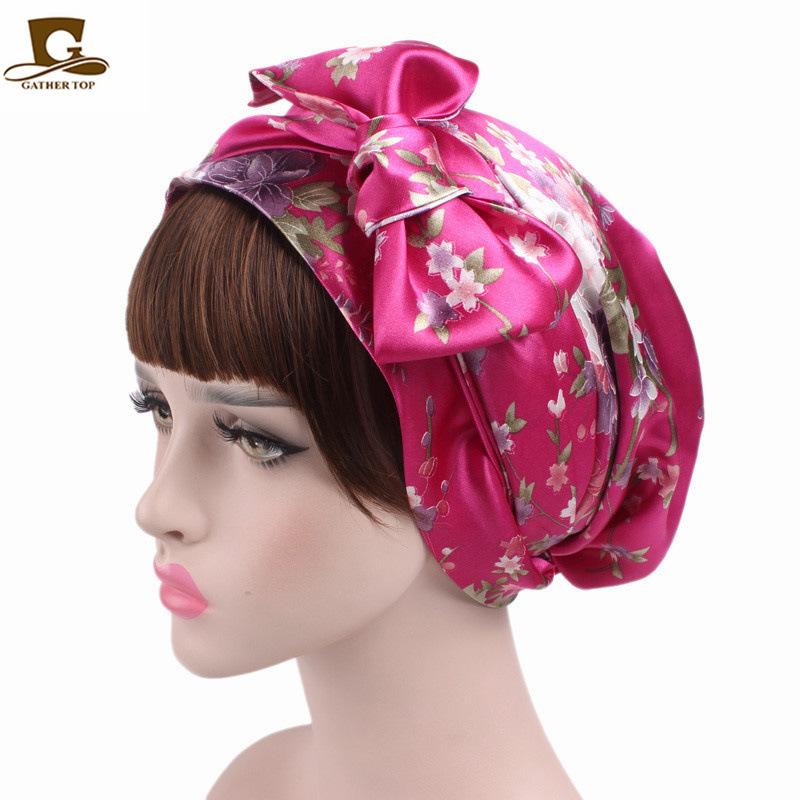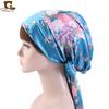 Gorro de dormir de satén con lazo largo estampado estilo nacional, turbante, gorro de salón de belleza JDB-301M |