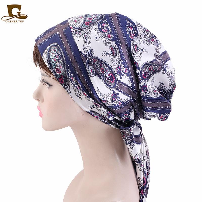 Nuevo gorro de quimioterapia de seda con lazo de satén para mujer, gorro trenzado de cola larga TJM-226 |