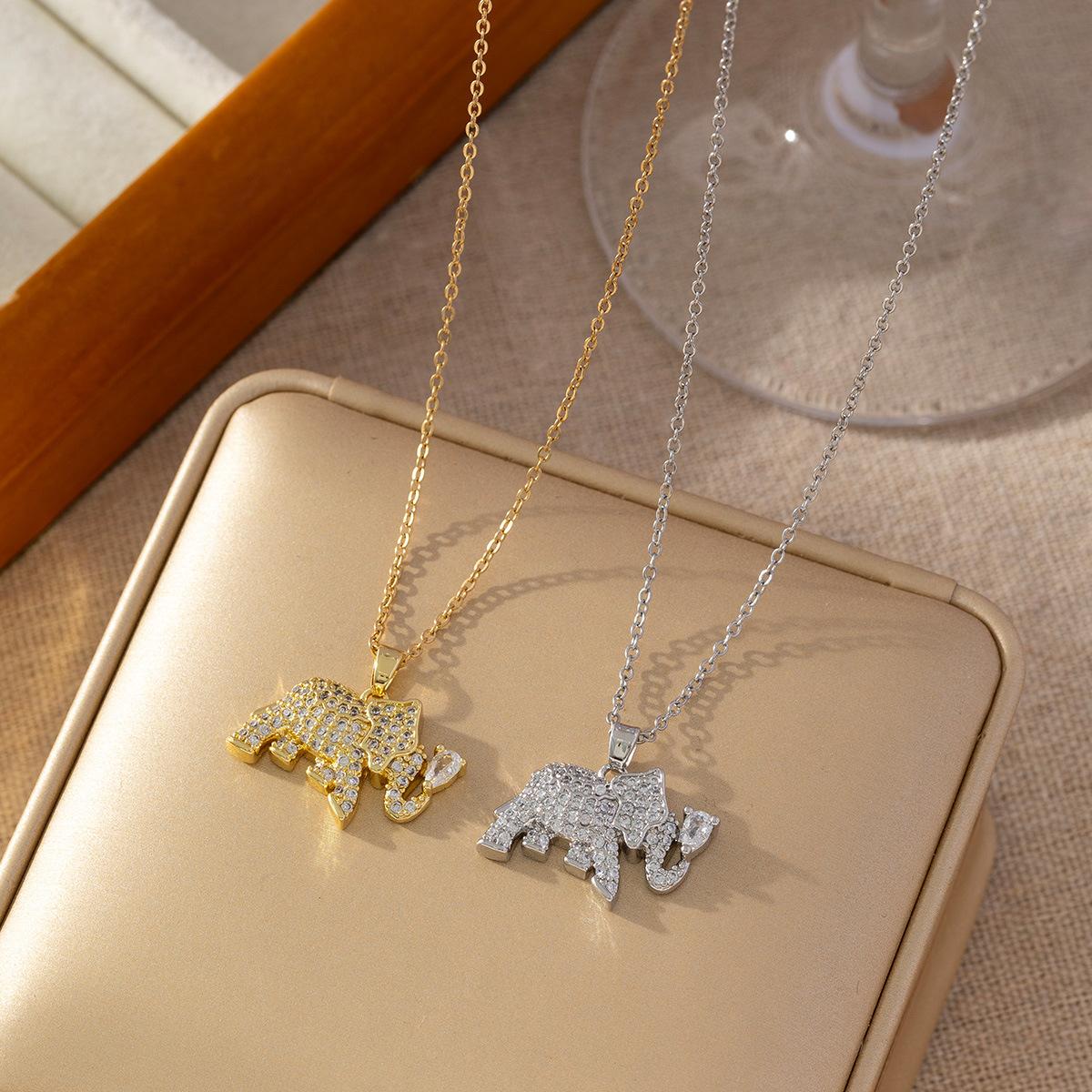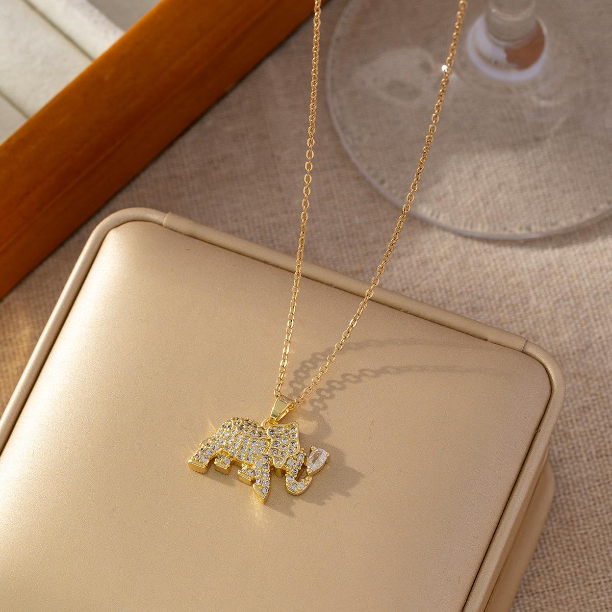 Collar de mujer estilo japonés-coreano con diseño de elefante pequeño, de acero y titanio, con colgante de elefante y cadena de clavícula de estilo cyber celebridad.