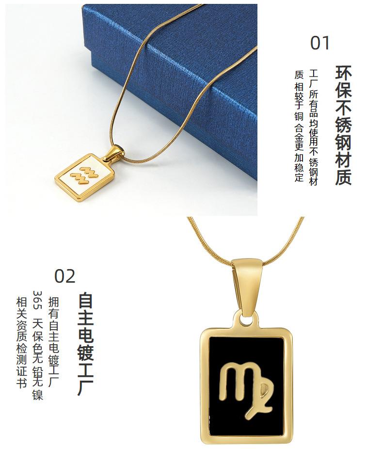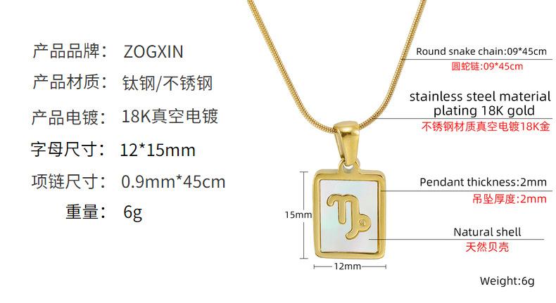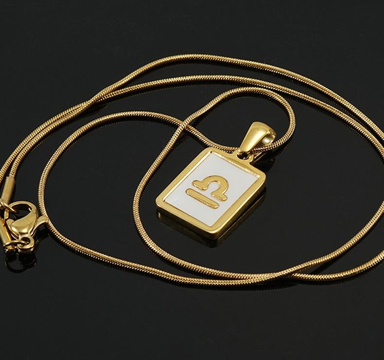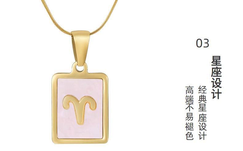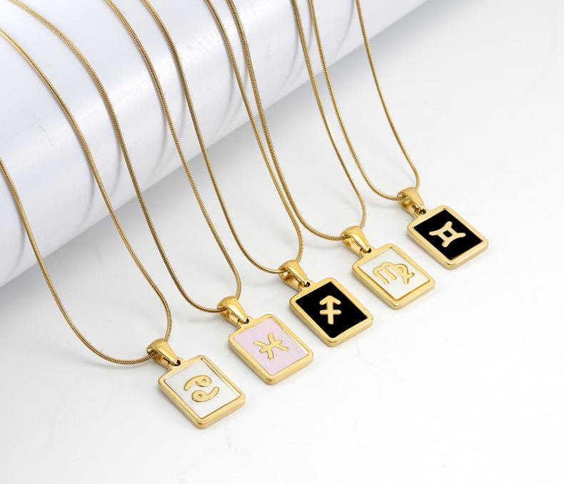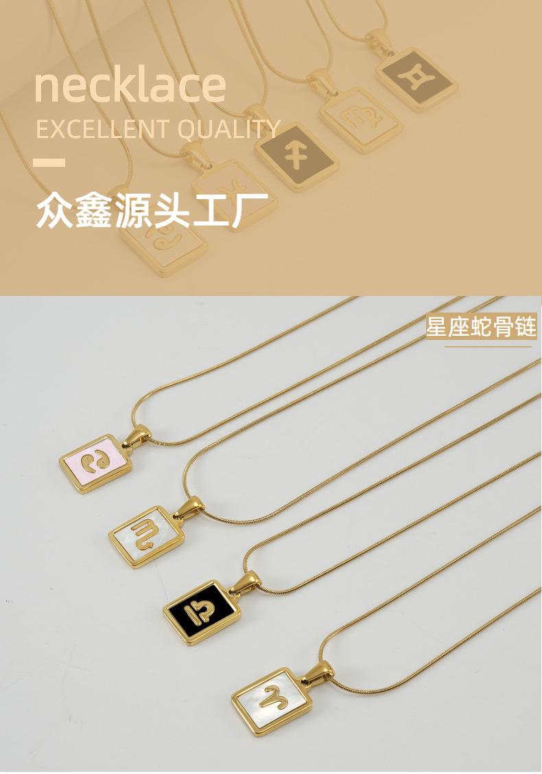Collar de cadena de hueso de serpiente de acero de titanio transfronterizo de 12 constelaciones para mujer de Europa y Estados Unidos Colgante de concha cuadrada de acero inoxidable de 18 quilates de 12 constelaciones