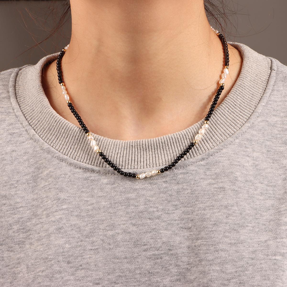 Collar de perlas naturales de agua dulce negras con cuentas vintage, combina con todo, exquisito, discreto, moderno y sencillo para mujer.