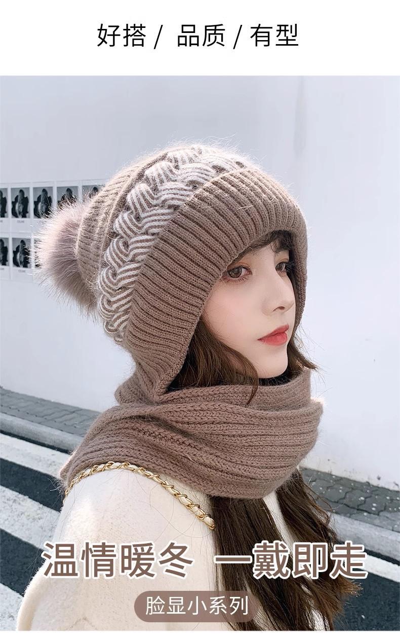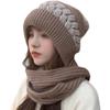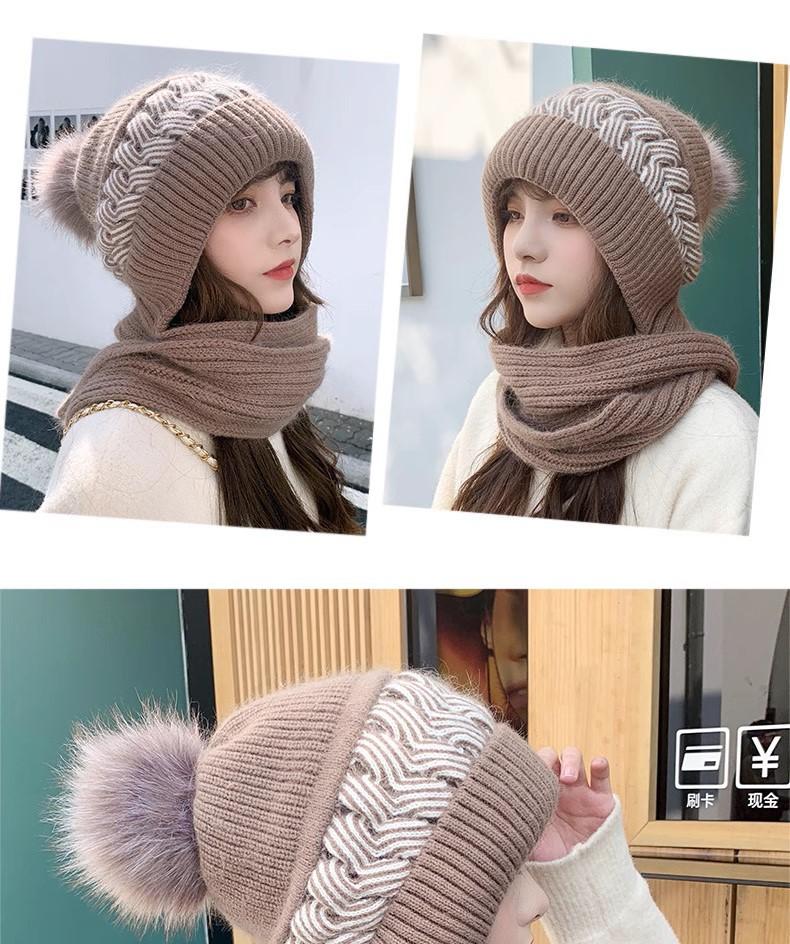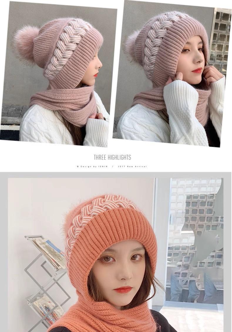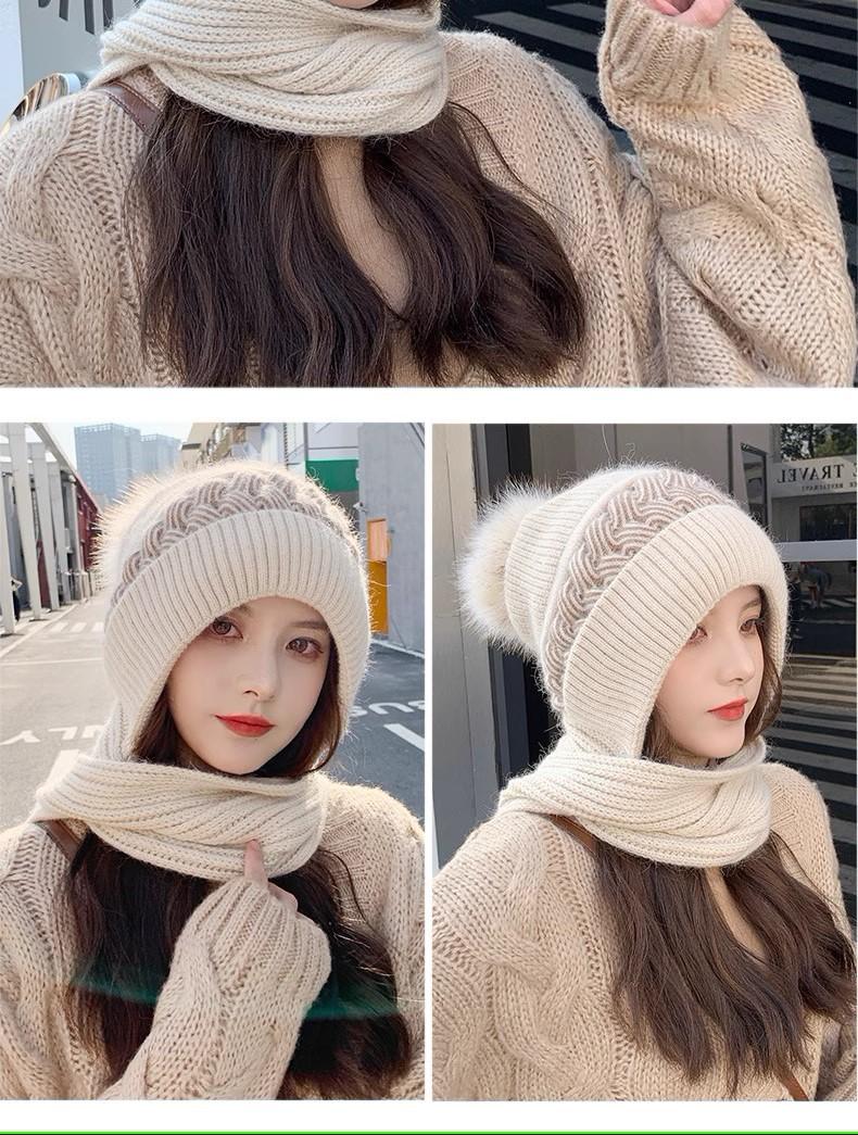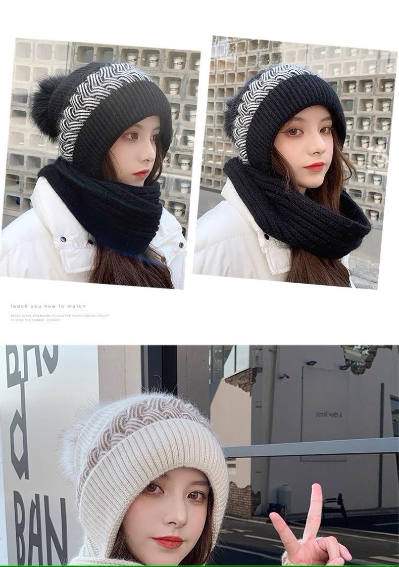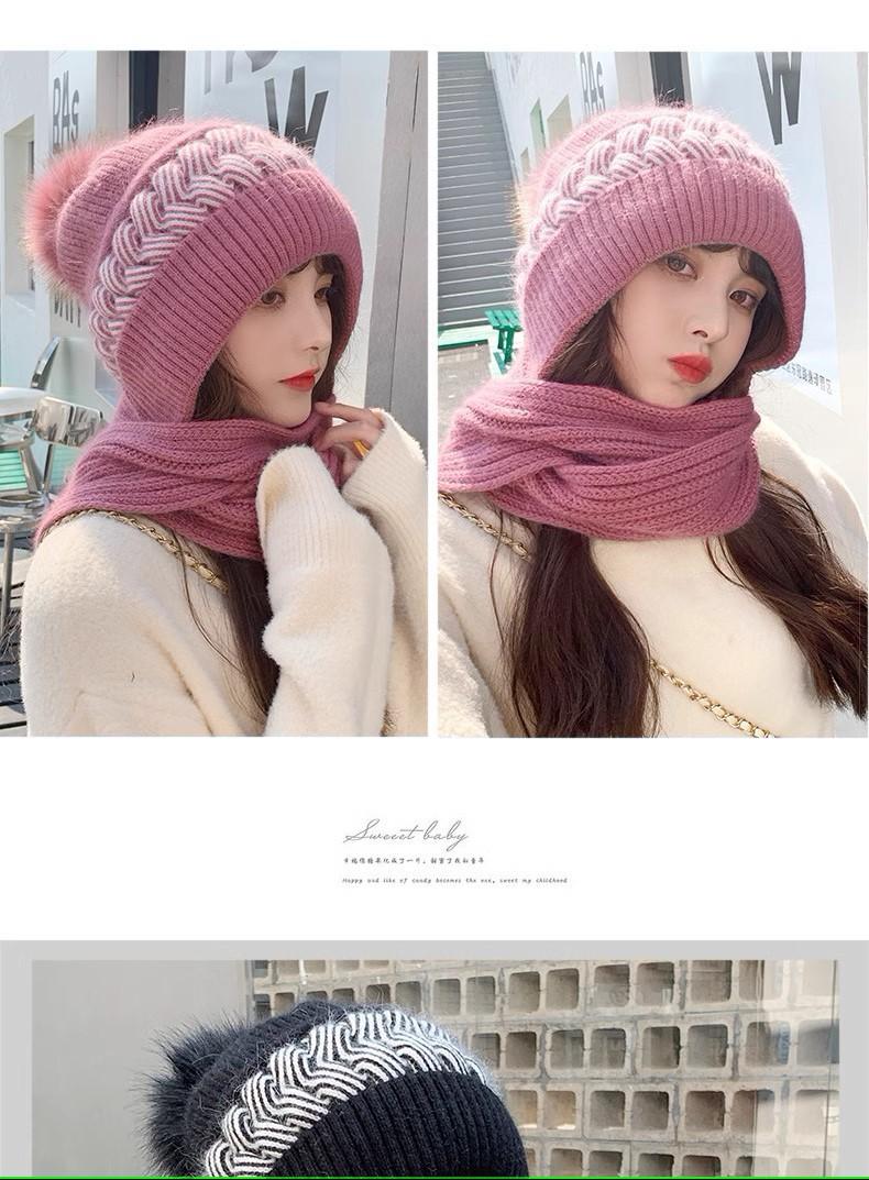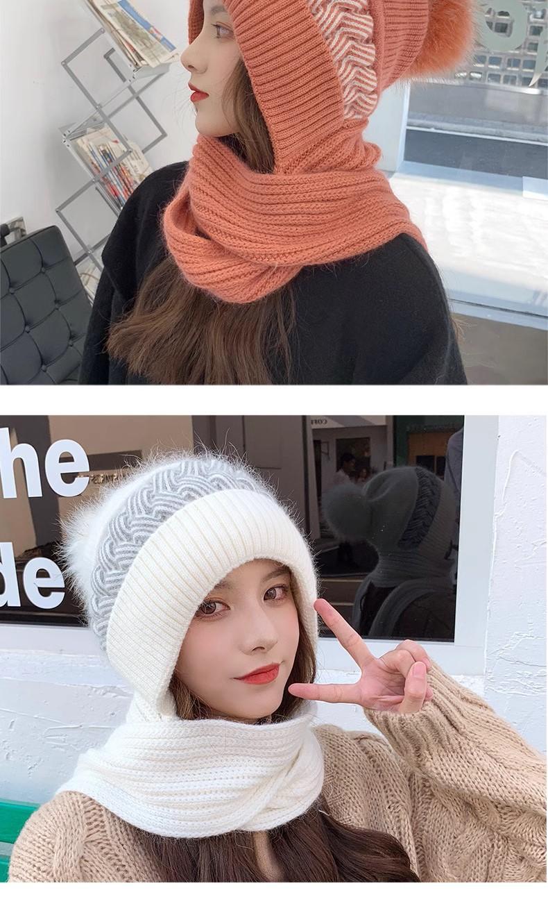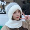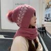 Gorro de lana para mujer, otoño e invierno, versátil, estilo coreano, de moda, cálido, de punto, con forro polar, grueso, bufanda, gorro integrado, gorro de mujer