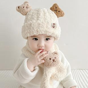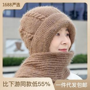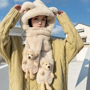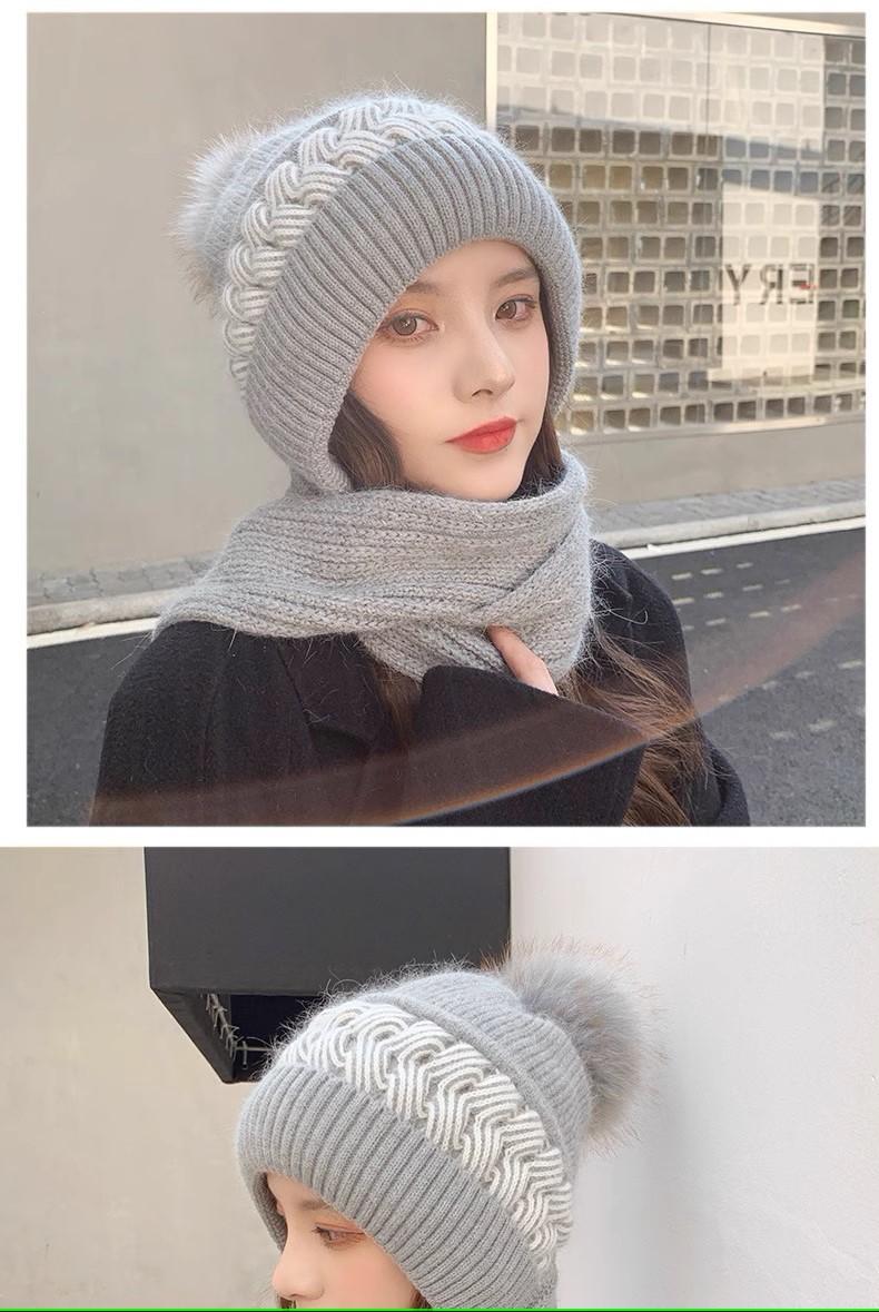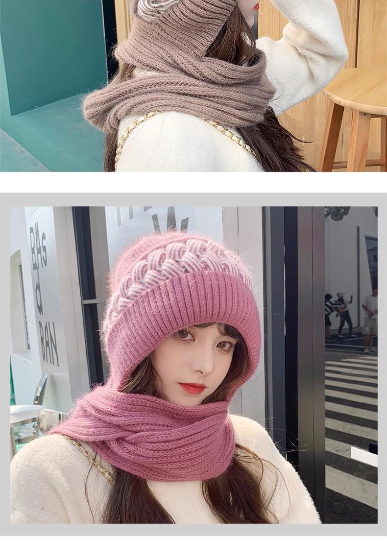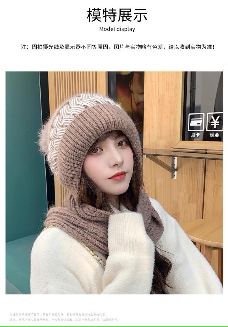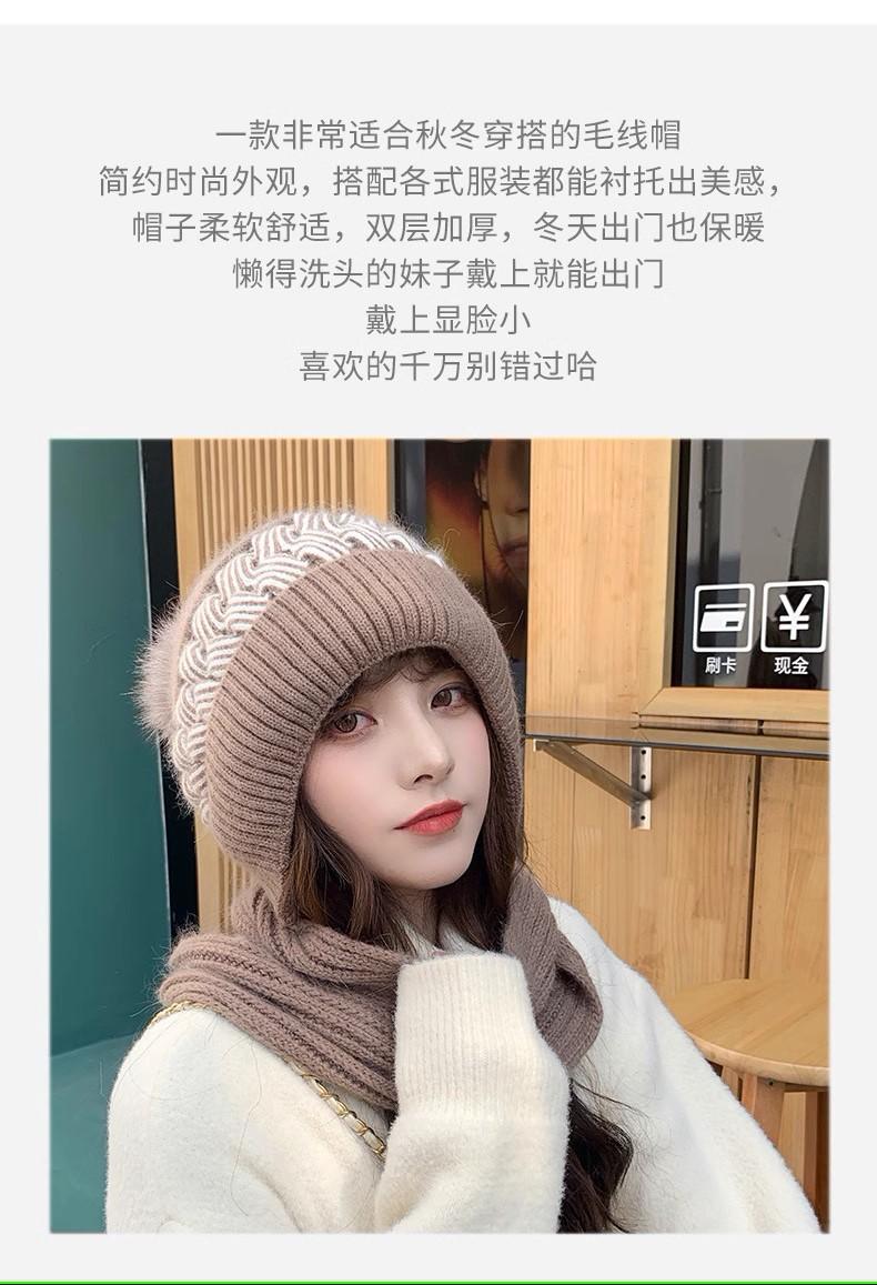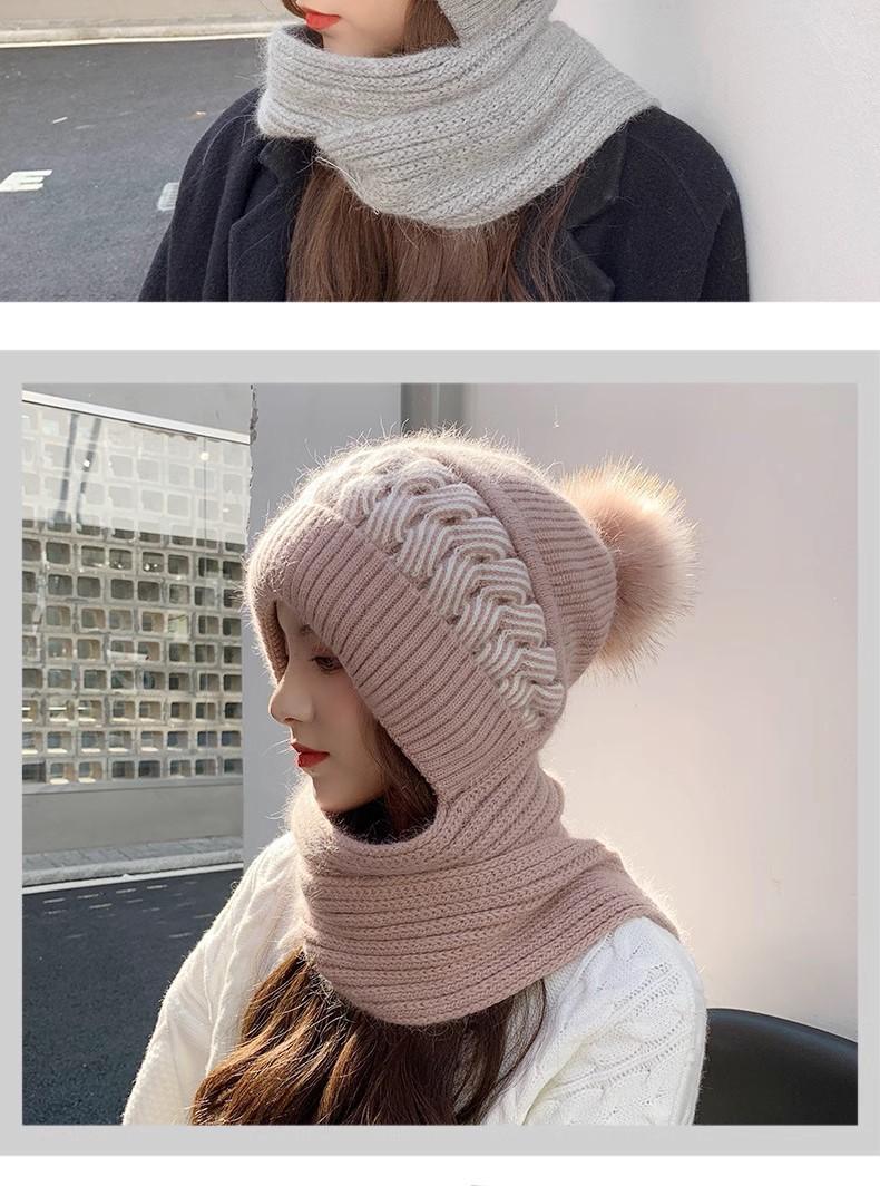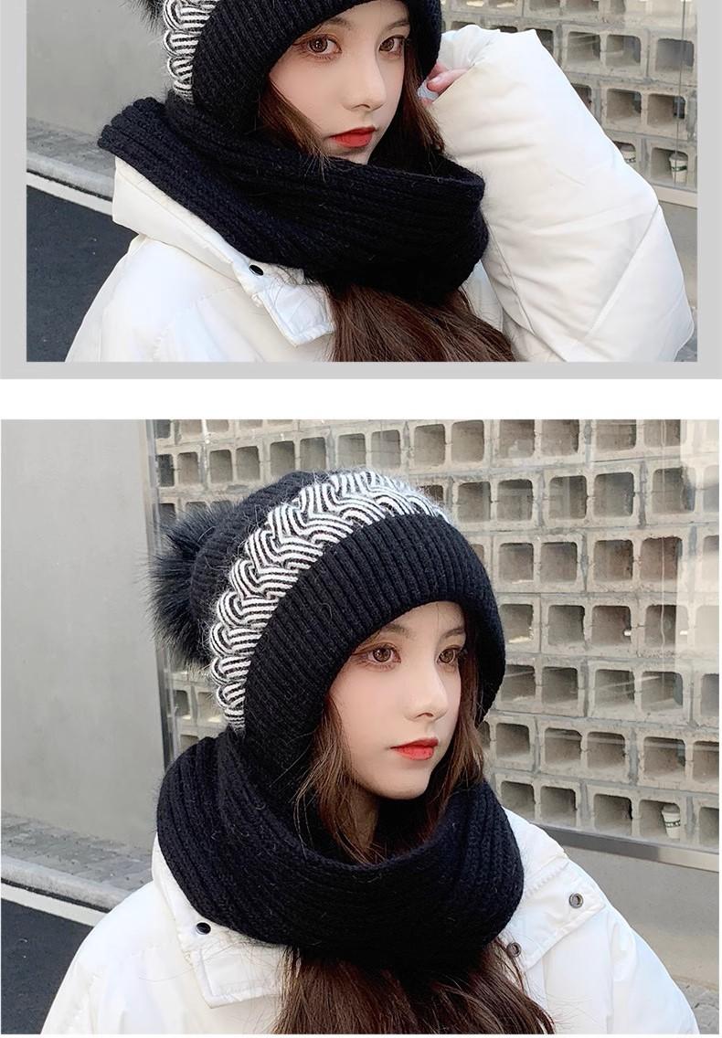 Gorro de lana para mujer, otoño e invierno, versátil, estilo coreano, de moda, cálido, de punto, con forro polar, grueso, bufanda, gorro integrado, gorro de mujer