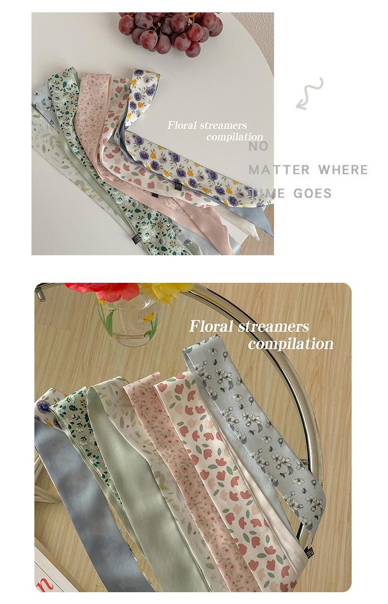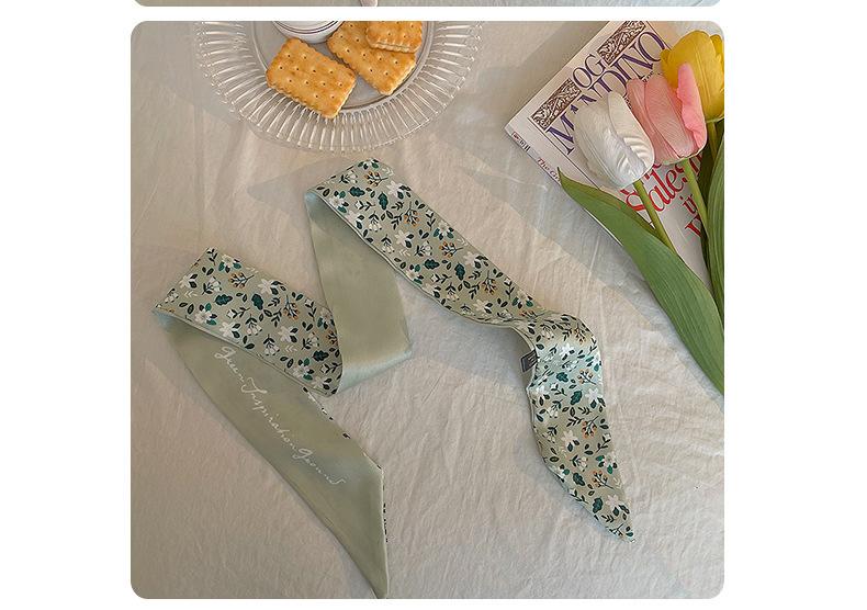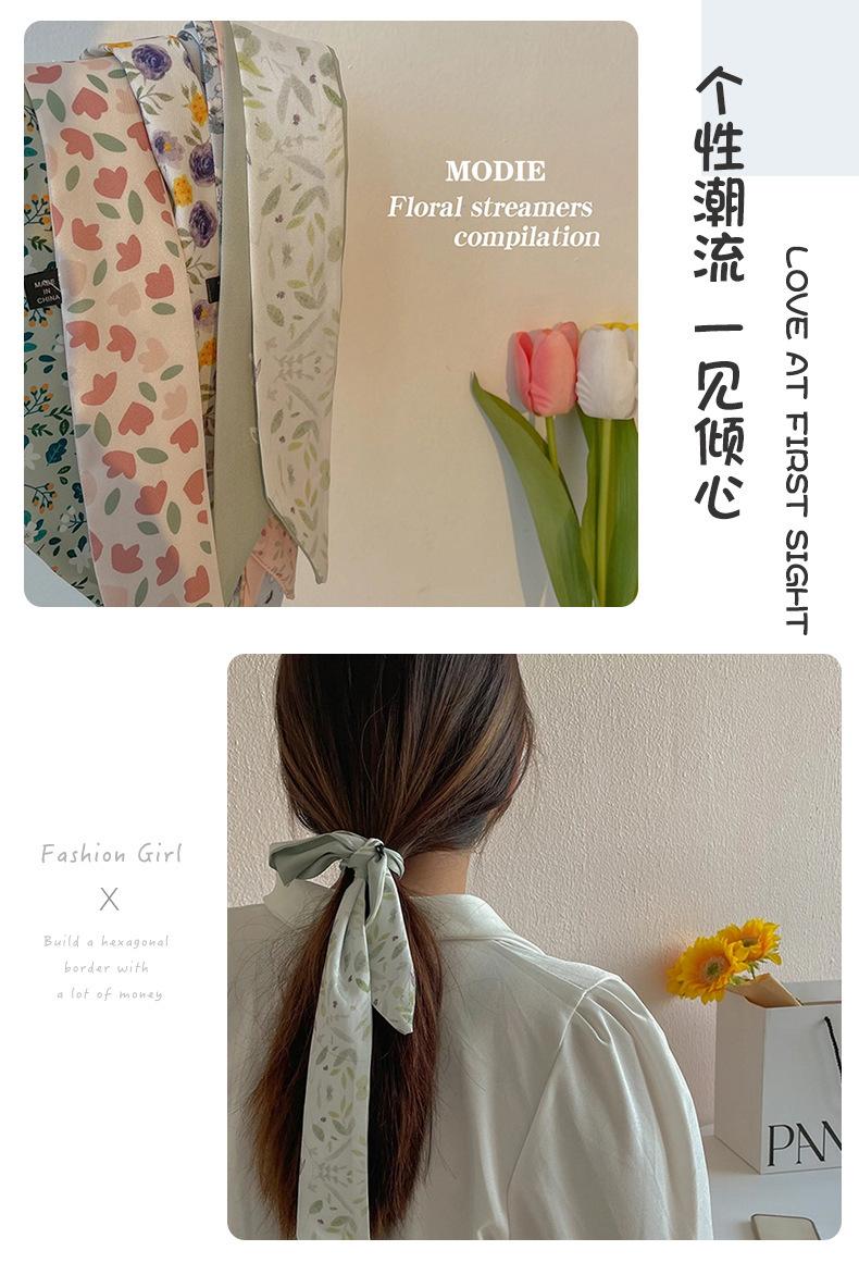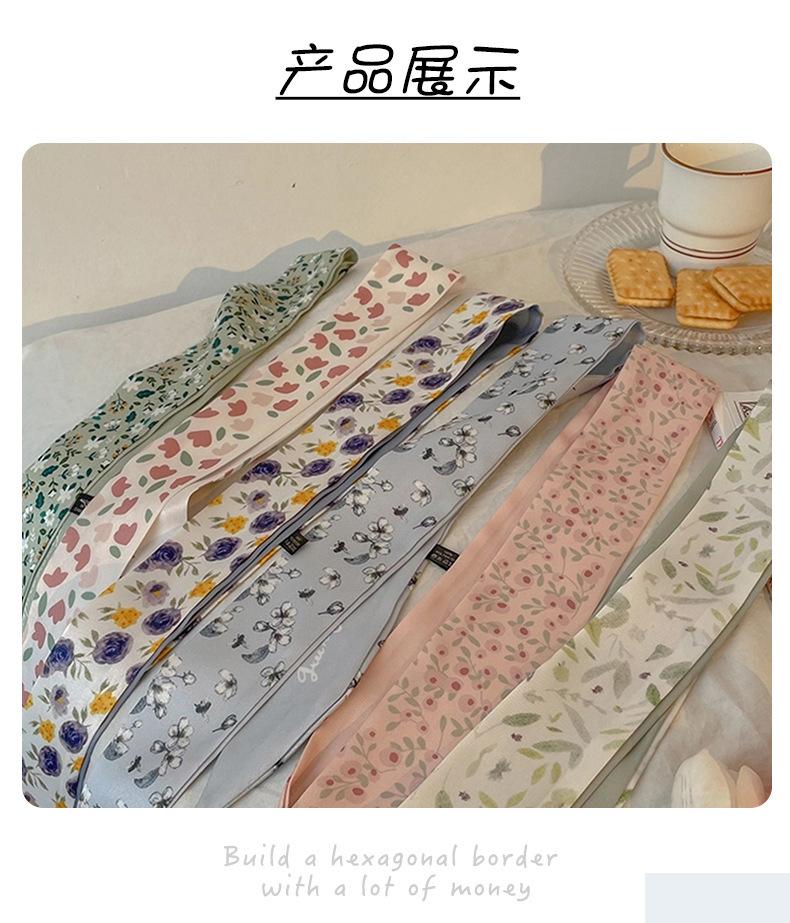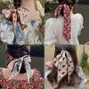 Verano Fresco Pequeña Banda para el Cabello Floral Cinta para Cola de Caballo Bufanda Larga de Seda Elegante Bolso de Mano Cinta Delgada Accesorios para el Cabello