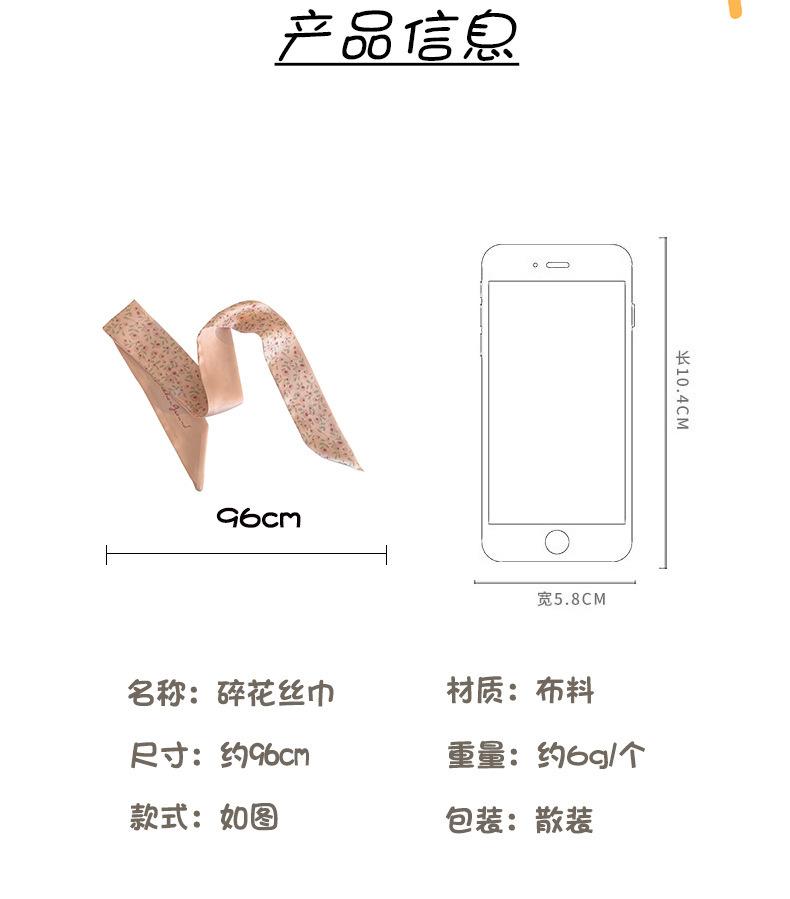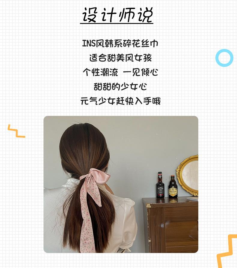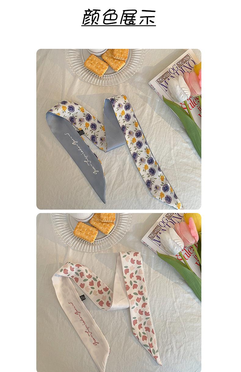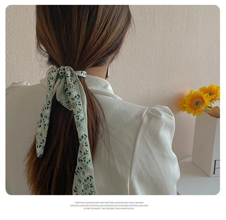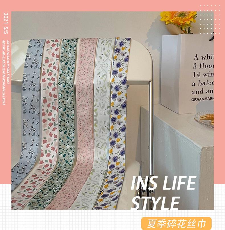 Verano Fresco Pequeña Banda para el Cabello Floral Cinta para Cola de Caballo Bufanda Larga de Seda Elegante Bolso de Mano Cinta Delgada Accesorios para el Cabello