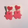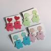 Pendientes de oso lindo de verano con forma de macarrón, hoja de acrílico, pendientes de gancho redondos con amor de color