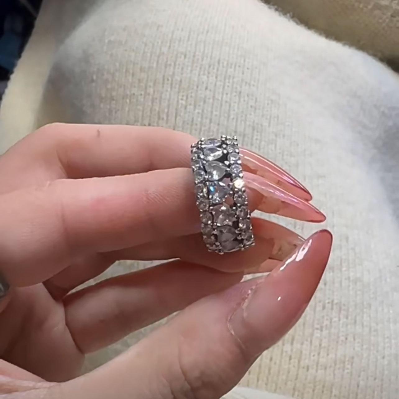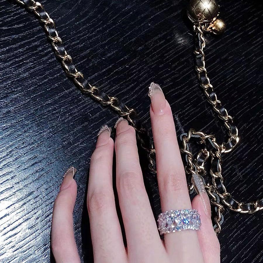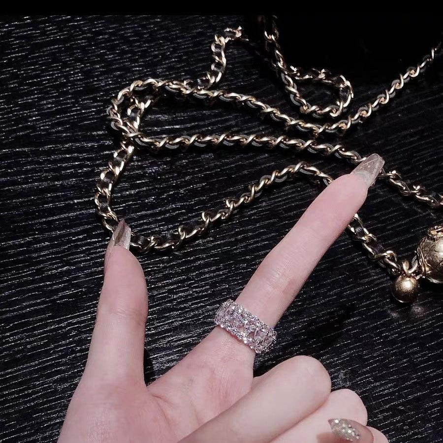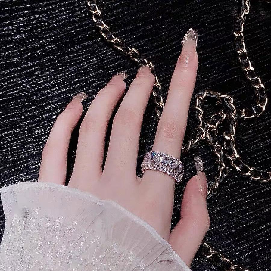 Anillo hueco de circón brillante para mujer, diseño de nicho, anillo abierto para el dedo medio, anillo ligero de lujo con gran sentido de la decoración del dedo.