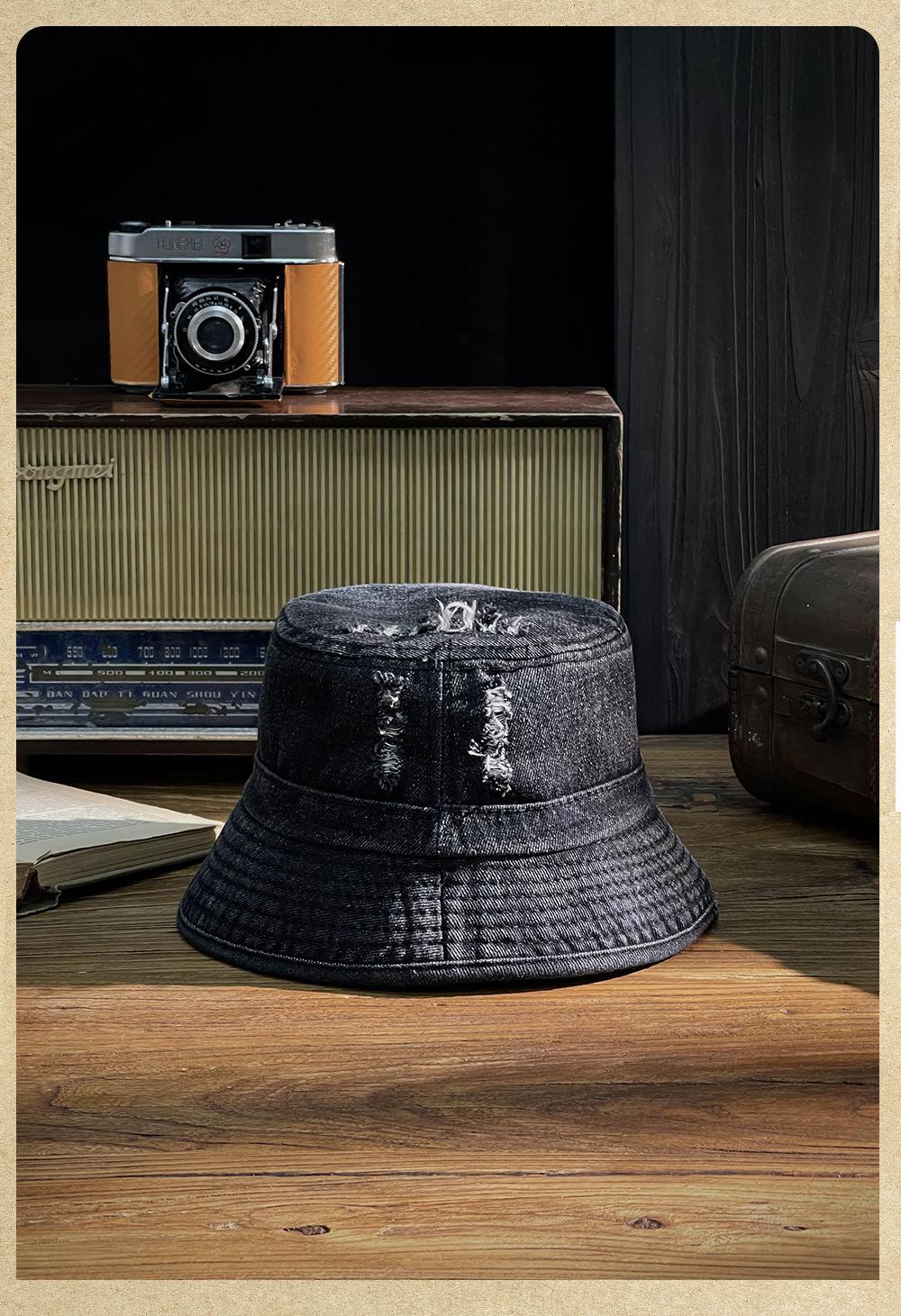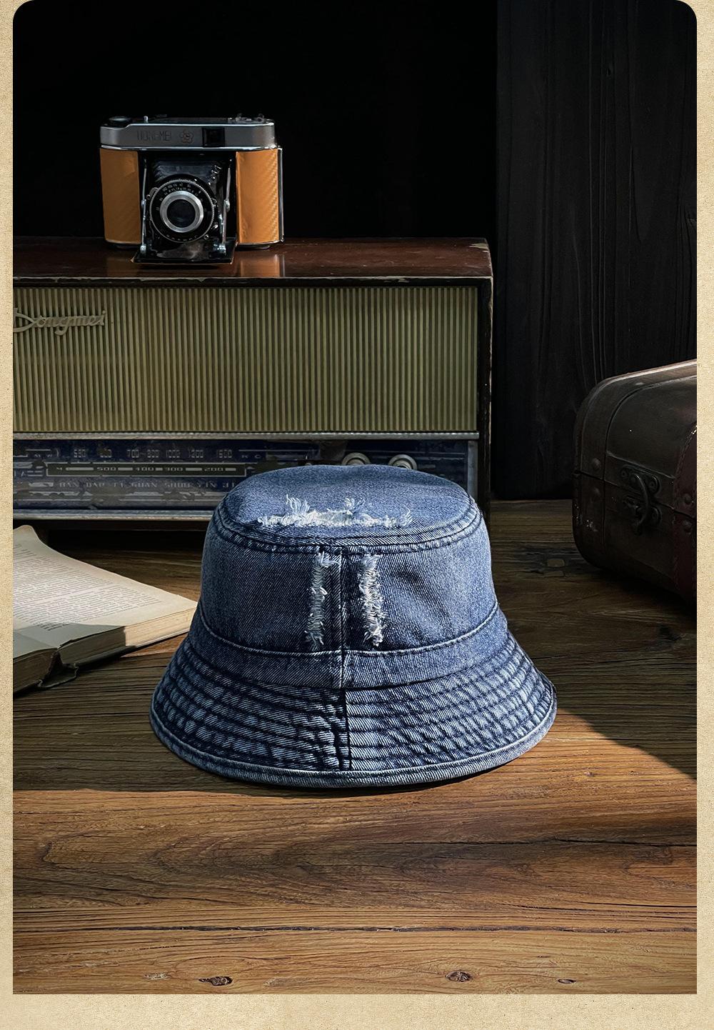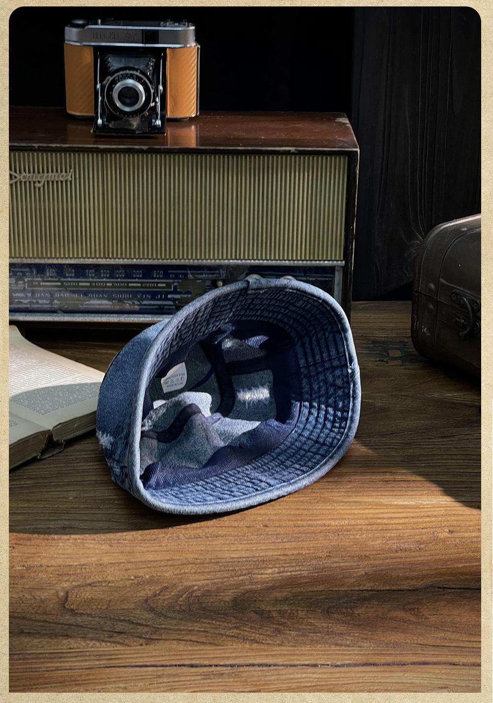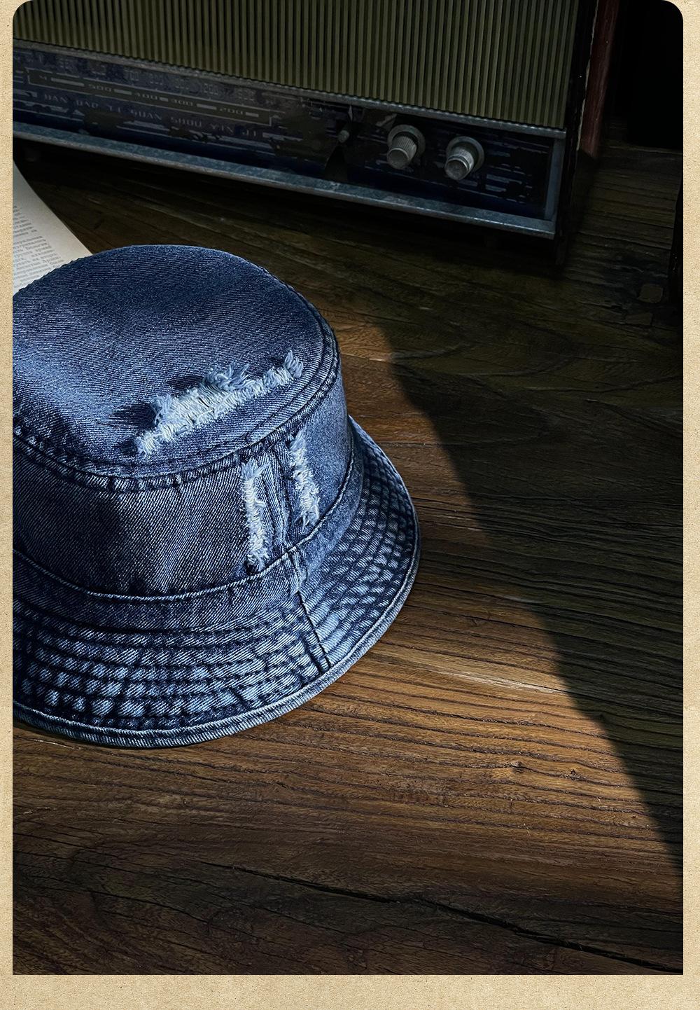 Sombrero de pescador vaquero lavado retro estilo Hong Kong comercio exterior Amazon calle agujero ala pequeña cara pequeña sombrero cubo cuenca