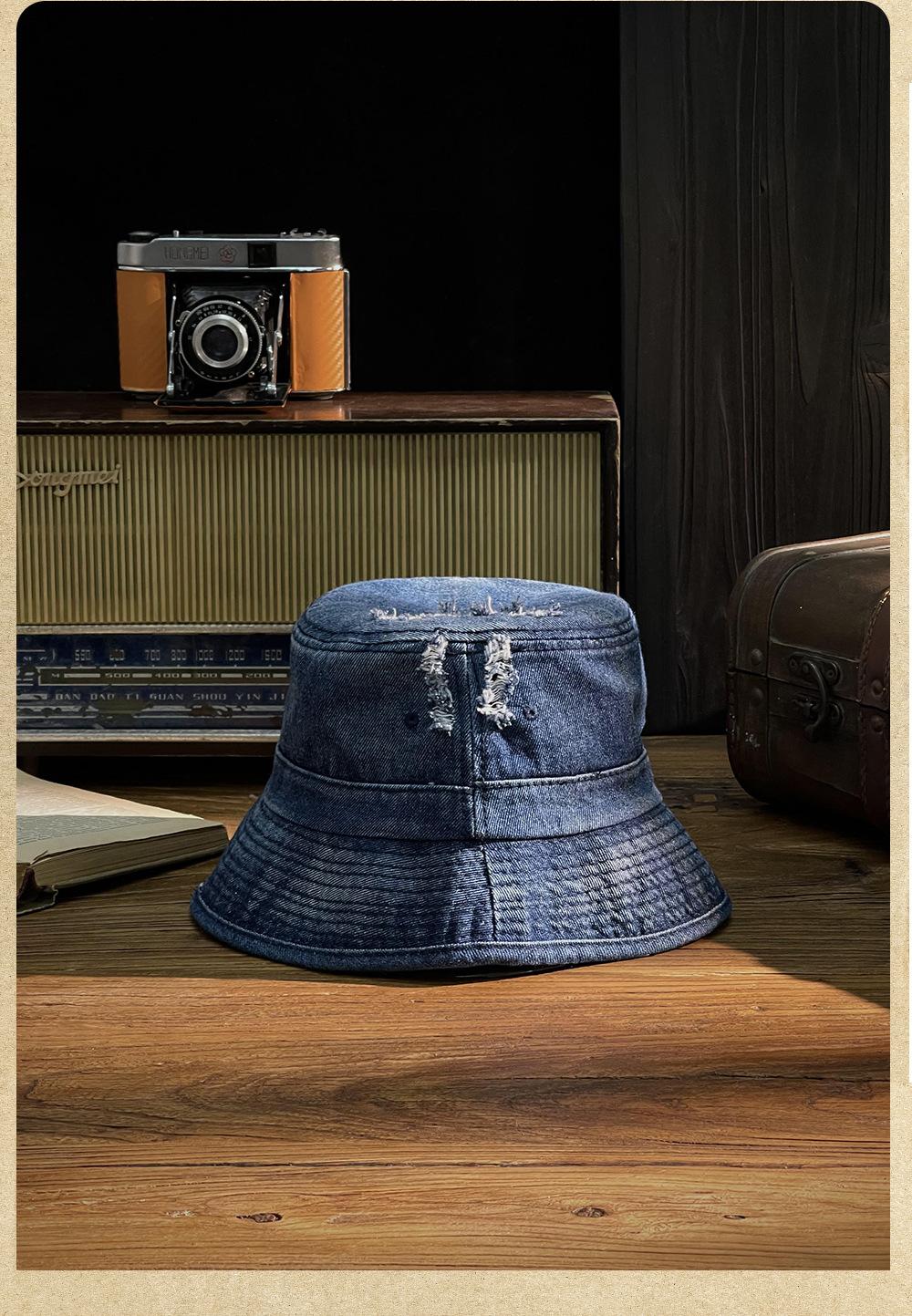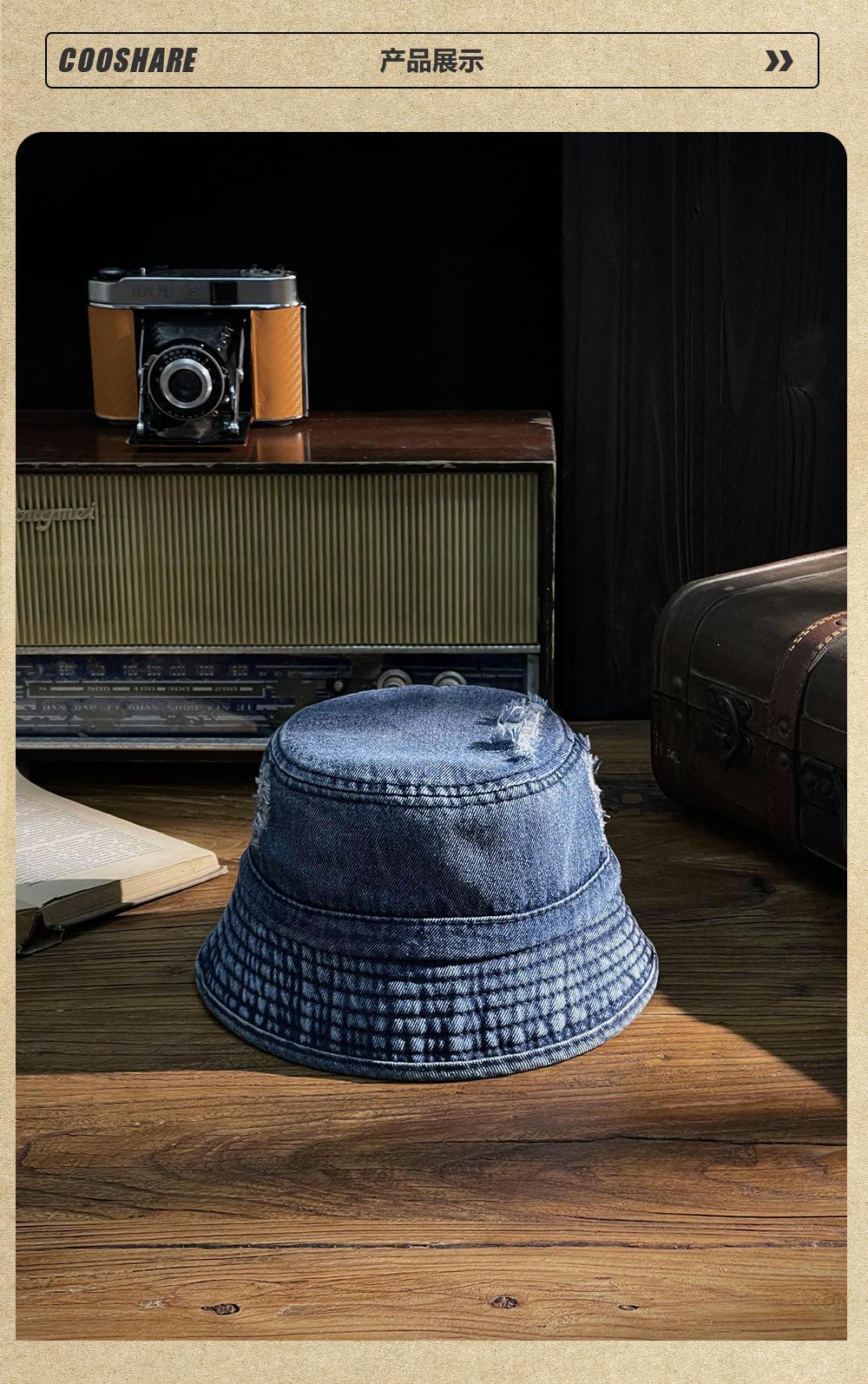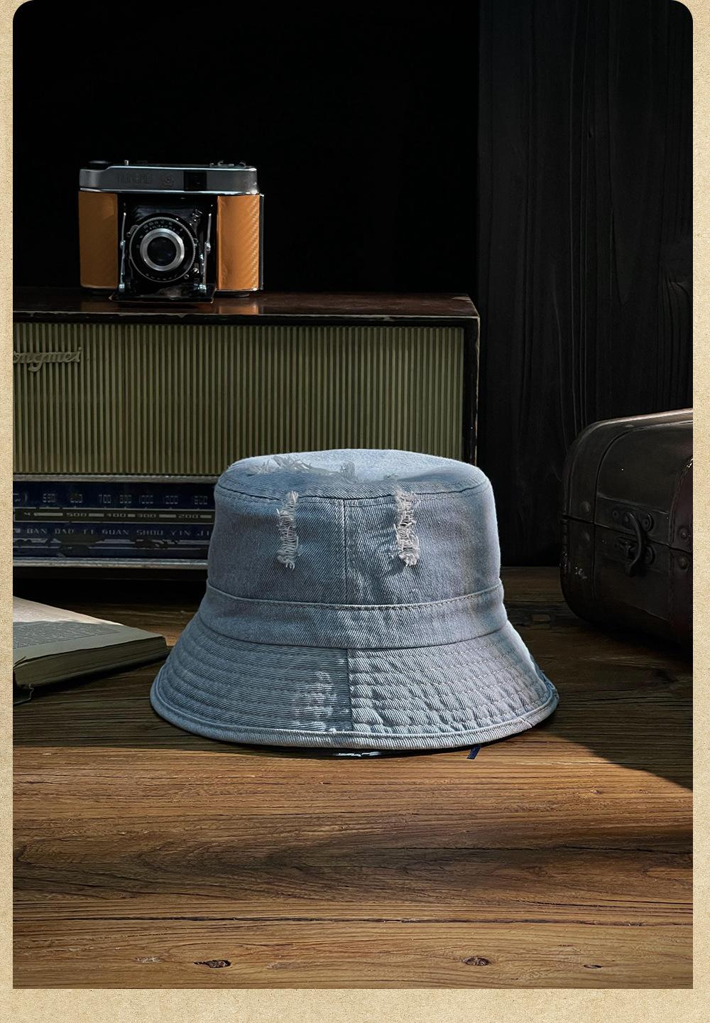Sombrero de pescador vaquero lavado retro estilo Hong Kong comercio exterior Amazon calle agujero ala pequeña cara pequeña sombrero cubo cuenca