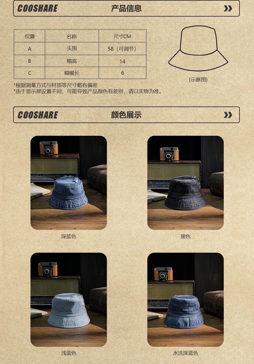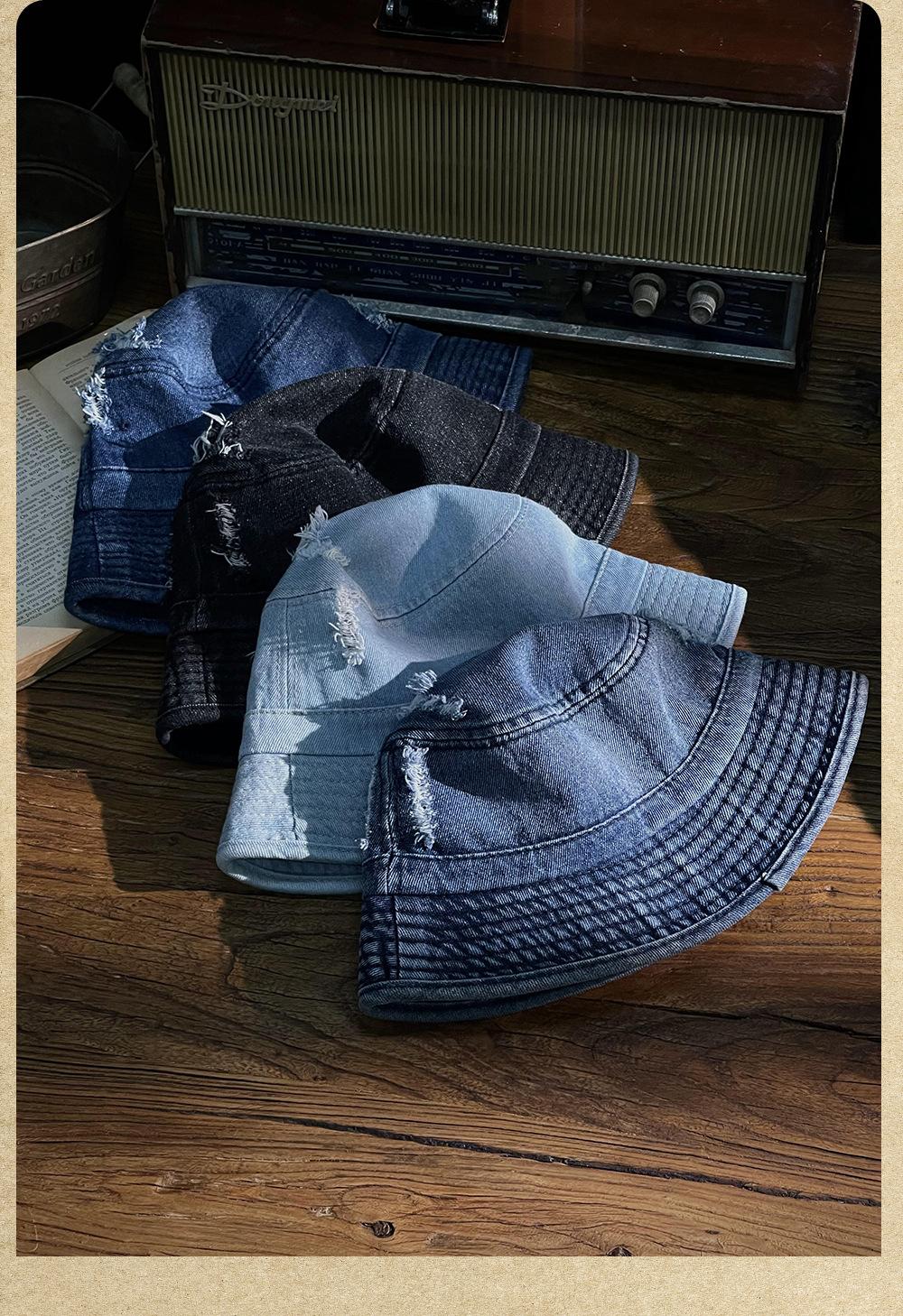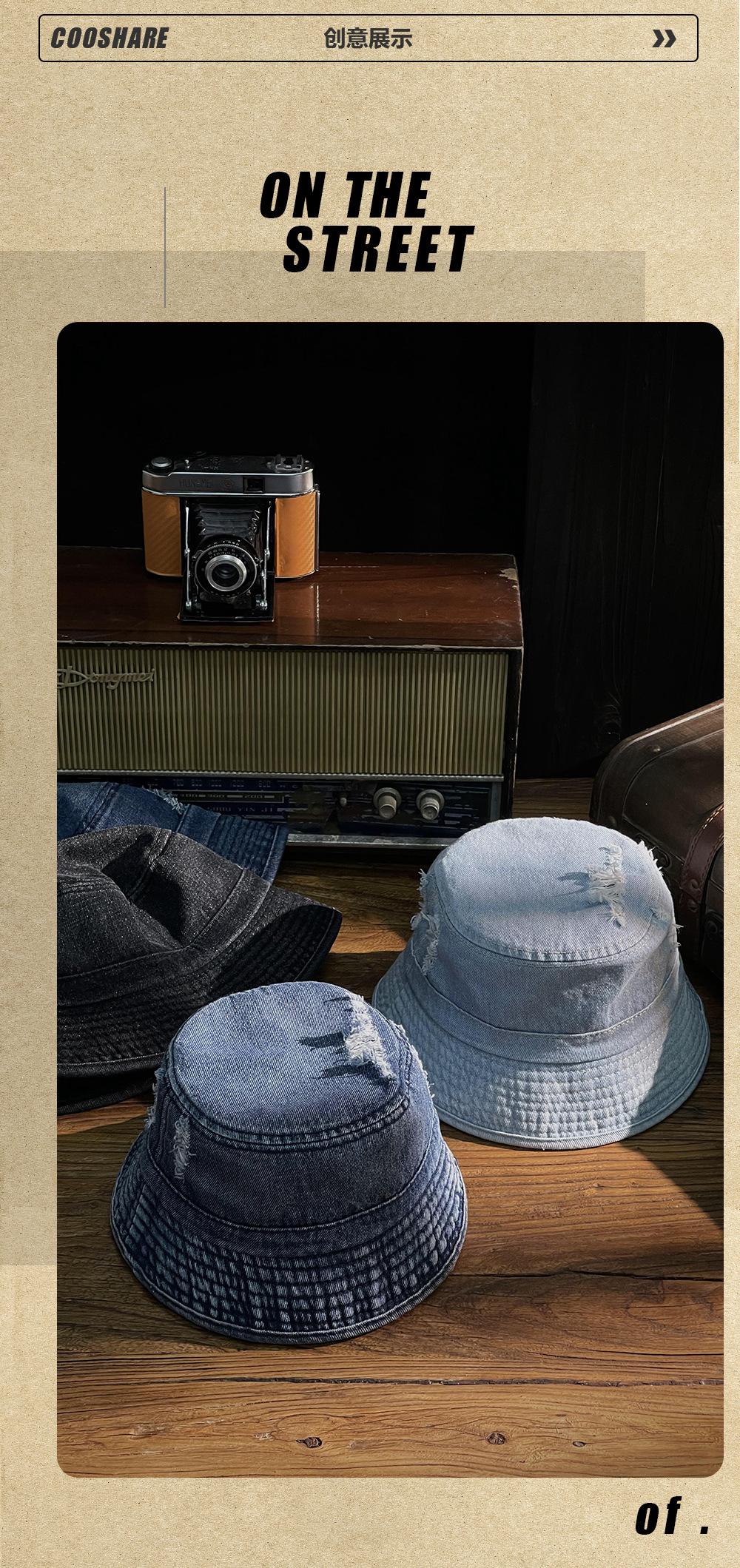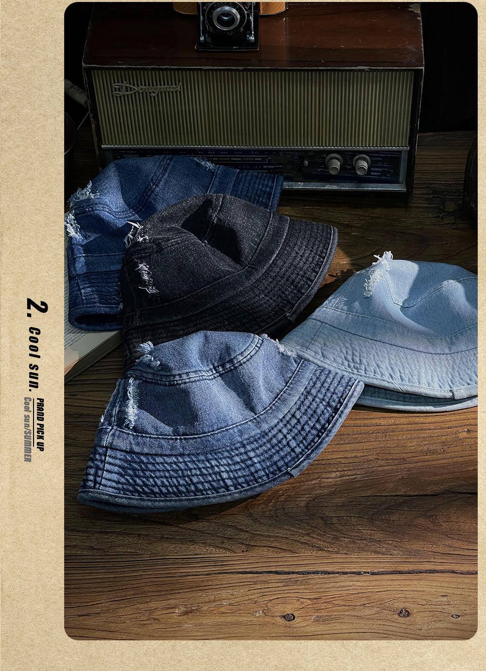 Sombrero de pescador vaquero lavado retro estilo Hong Kong comercio exterior Amazon calle agujero ala pequeña cara pequeña sombrero cubo cuenca