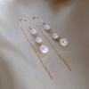 S925 aguja de plata Corea del Sur oro borla larga Perla luz lujo temperamento nicho versátil diseño de alta gama OREJA hilo oreja