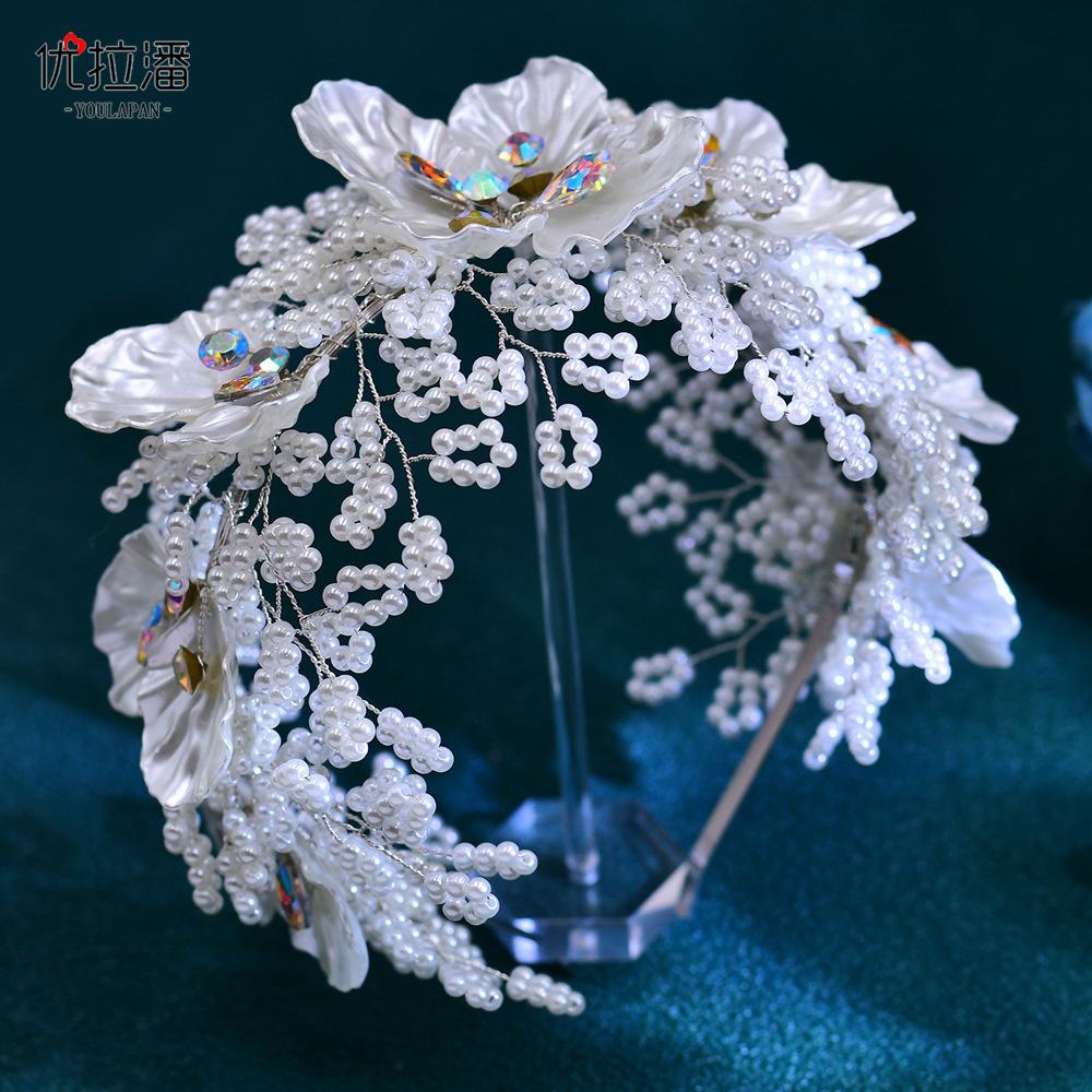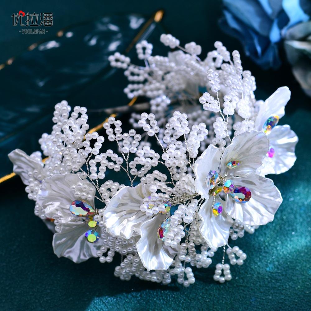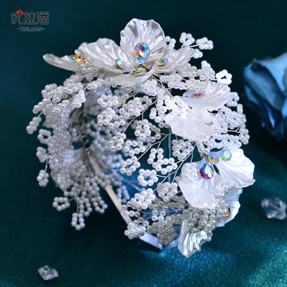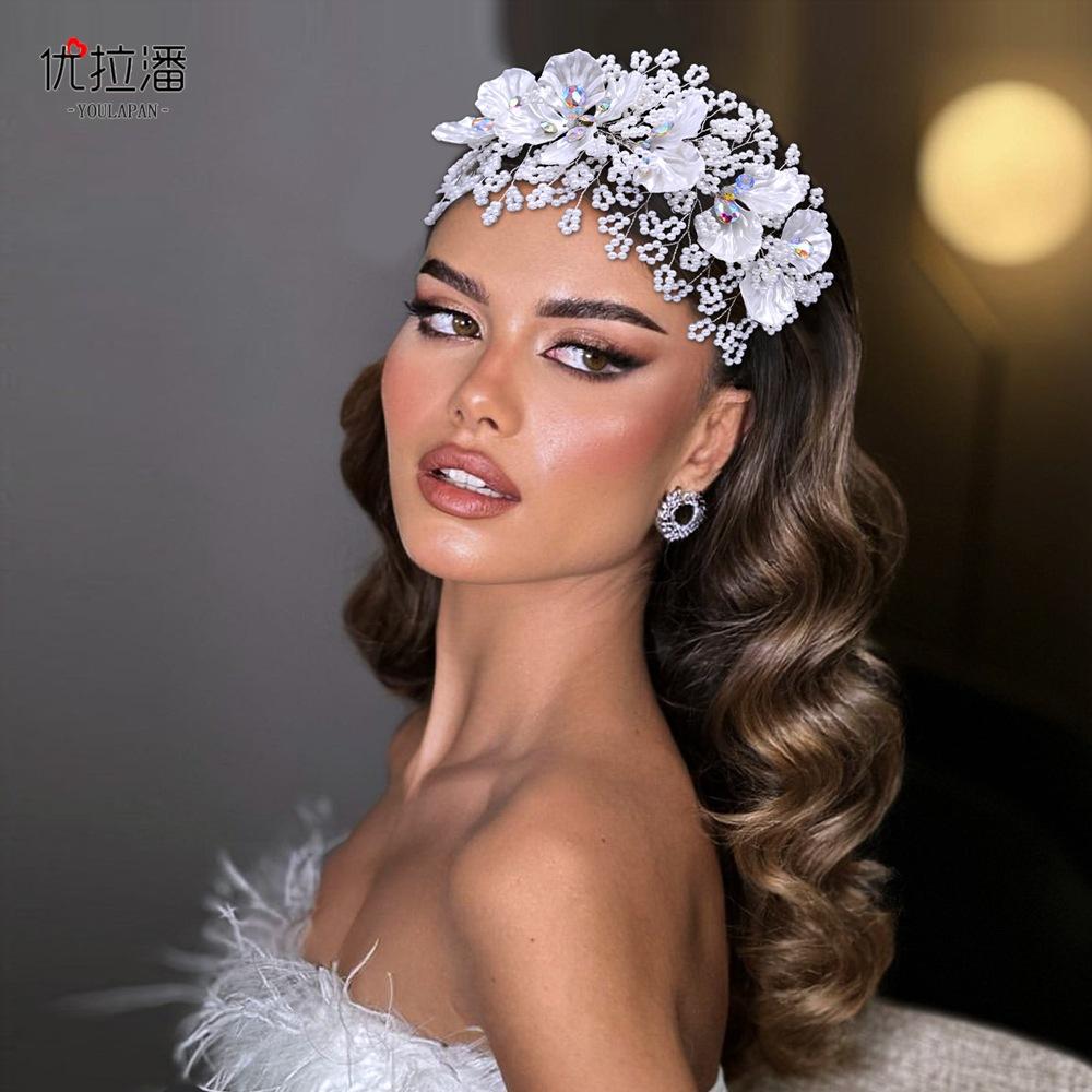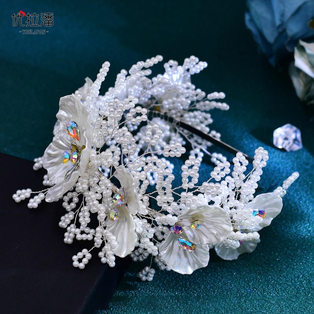 Youlapan Hp675 Accesorios para Vestido de Novia Europeo y Americano Diadema de Fantasía con Flor Blanca y Hoja de Pedrería Accesorios para el Cabello de Lujo