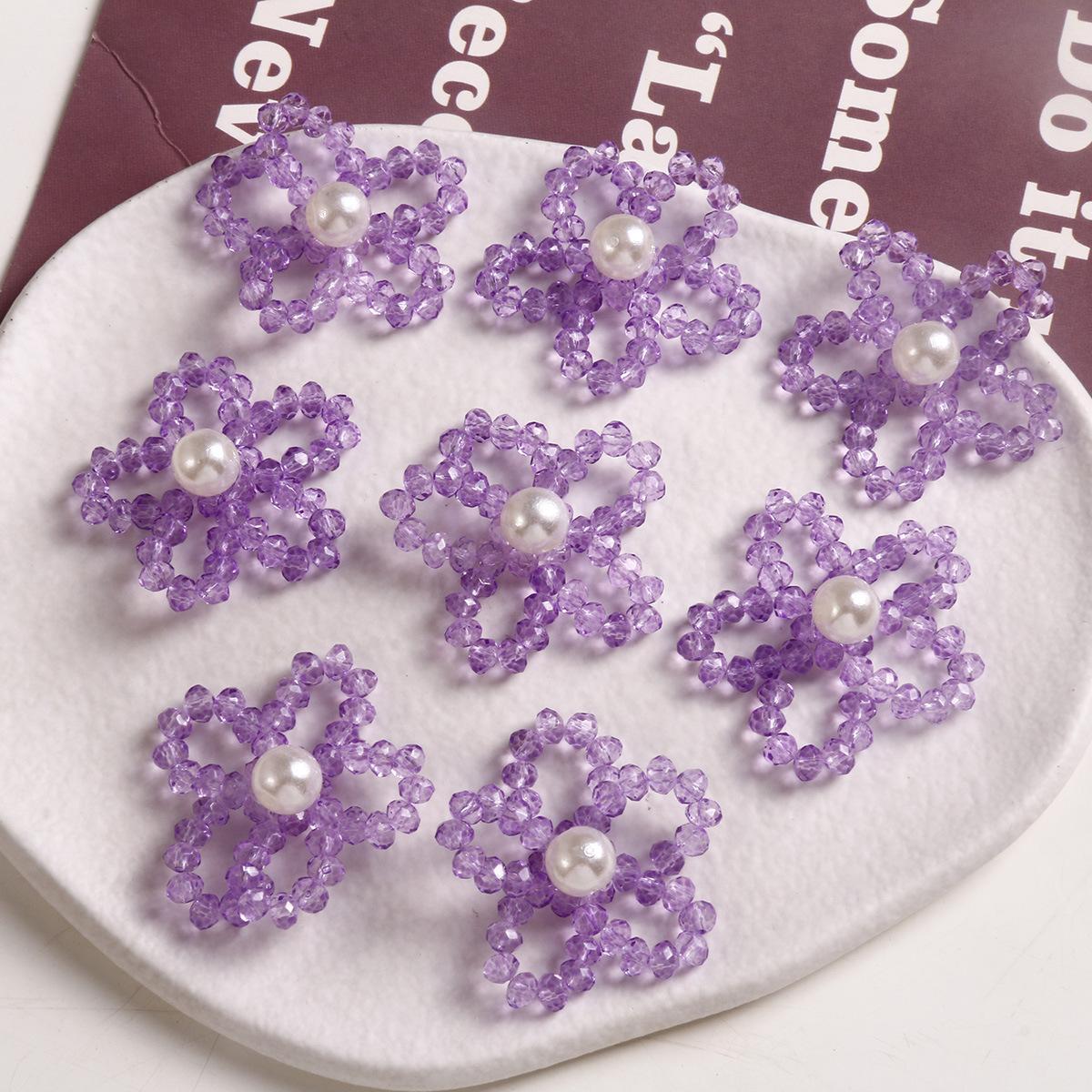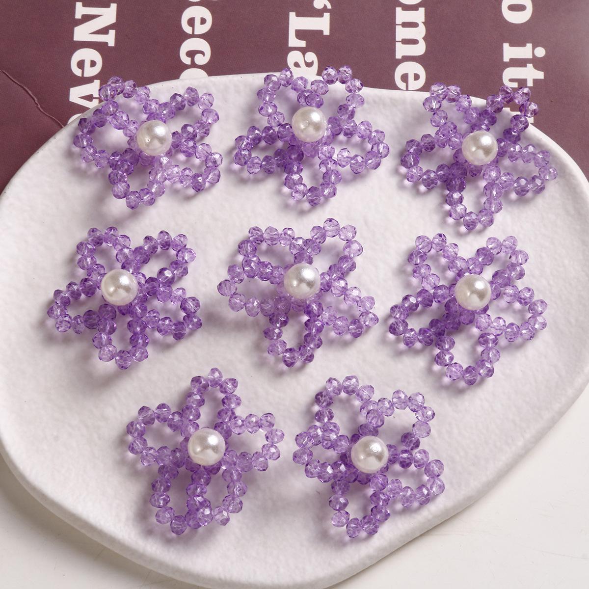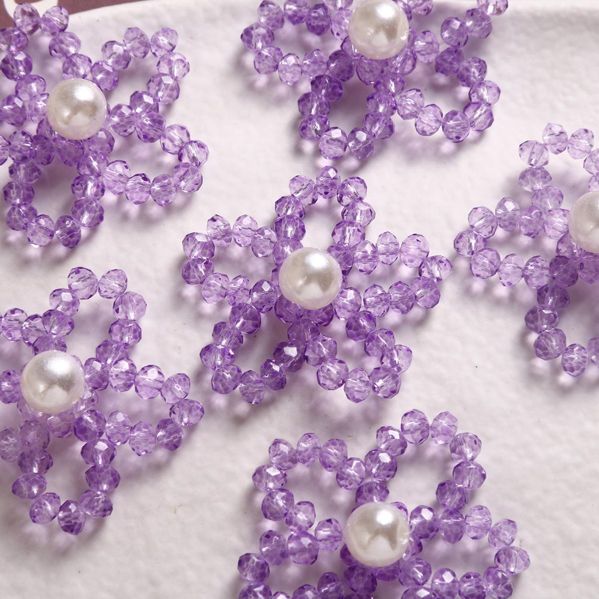 Pendientes de imitación de perla morada con cinco pétalos de flor de vidrio tejidos a mano, tocado, accesorios de joyería DIY, material al por mayor