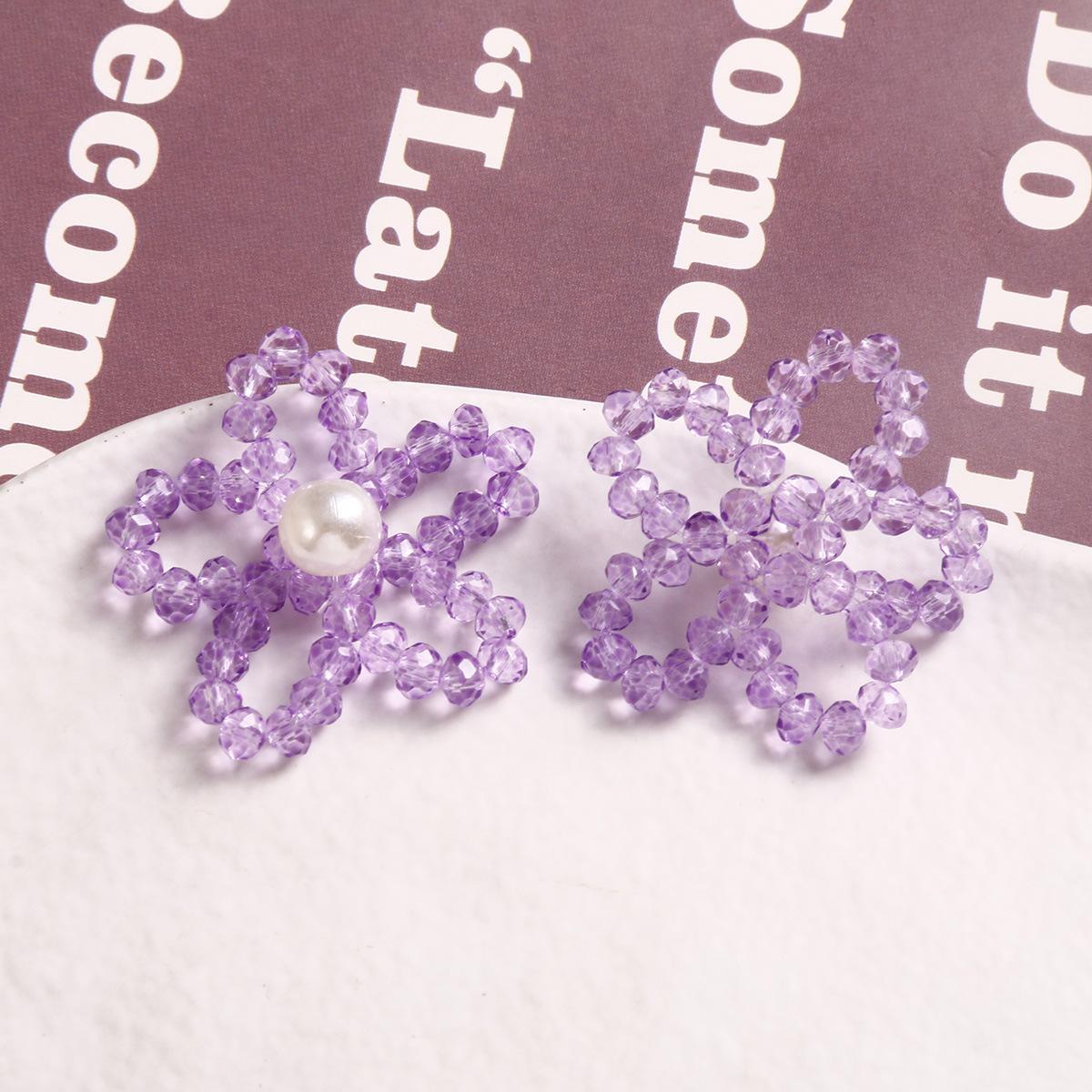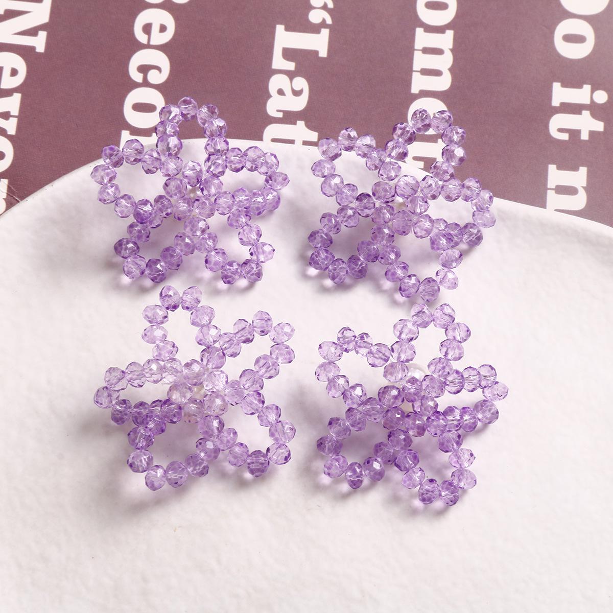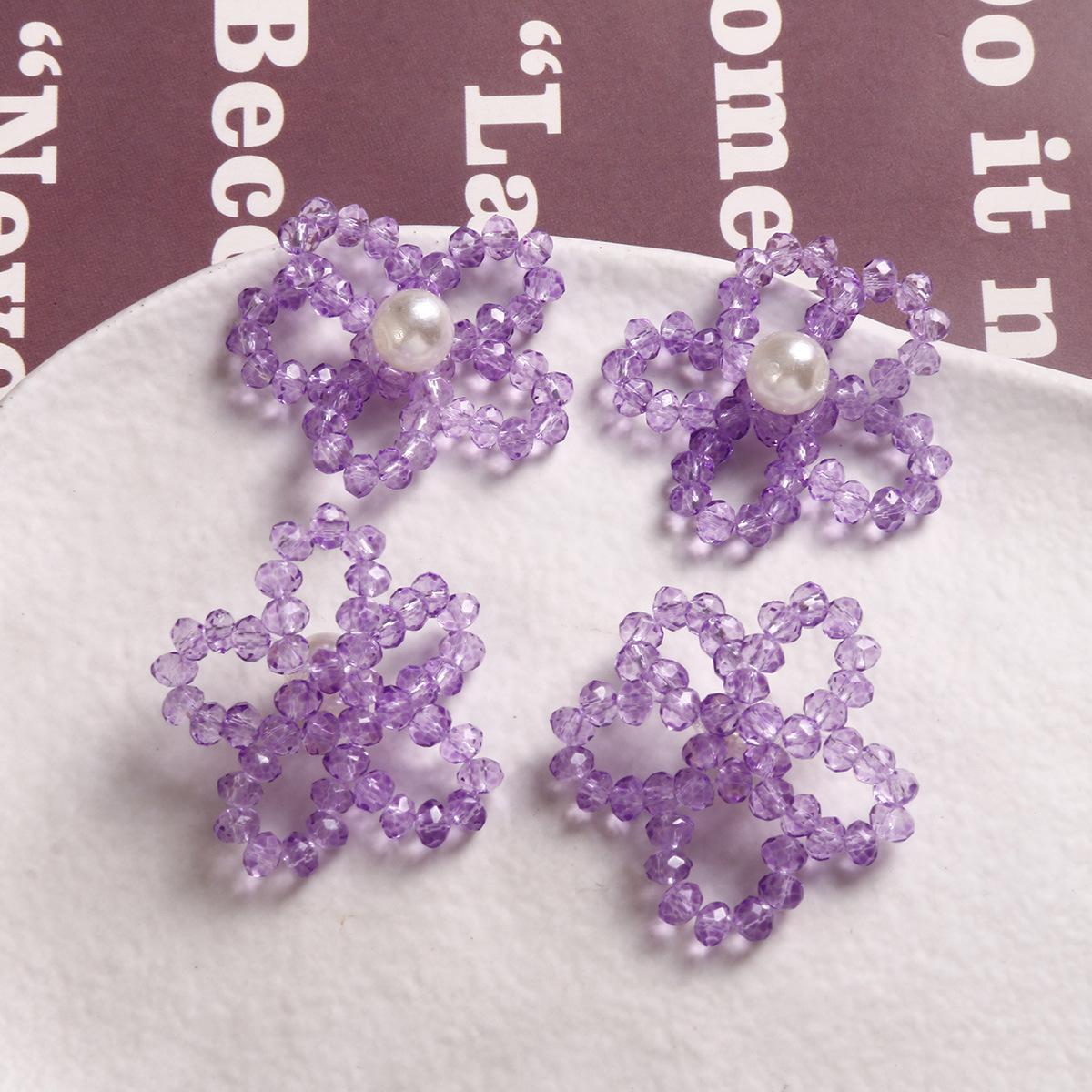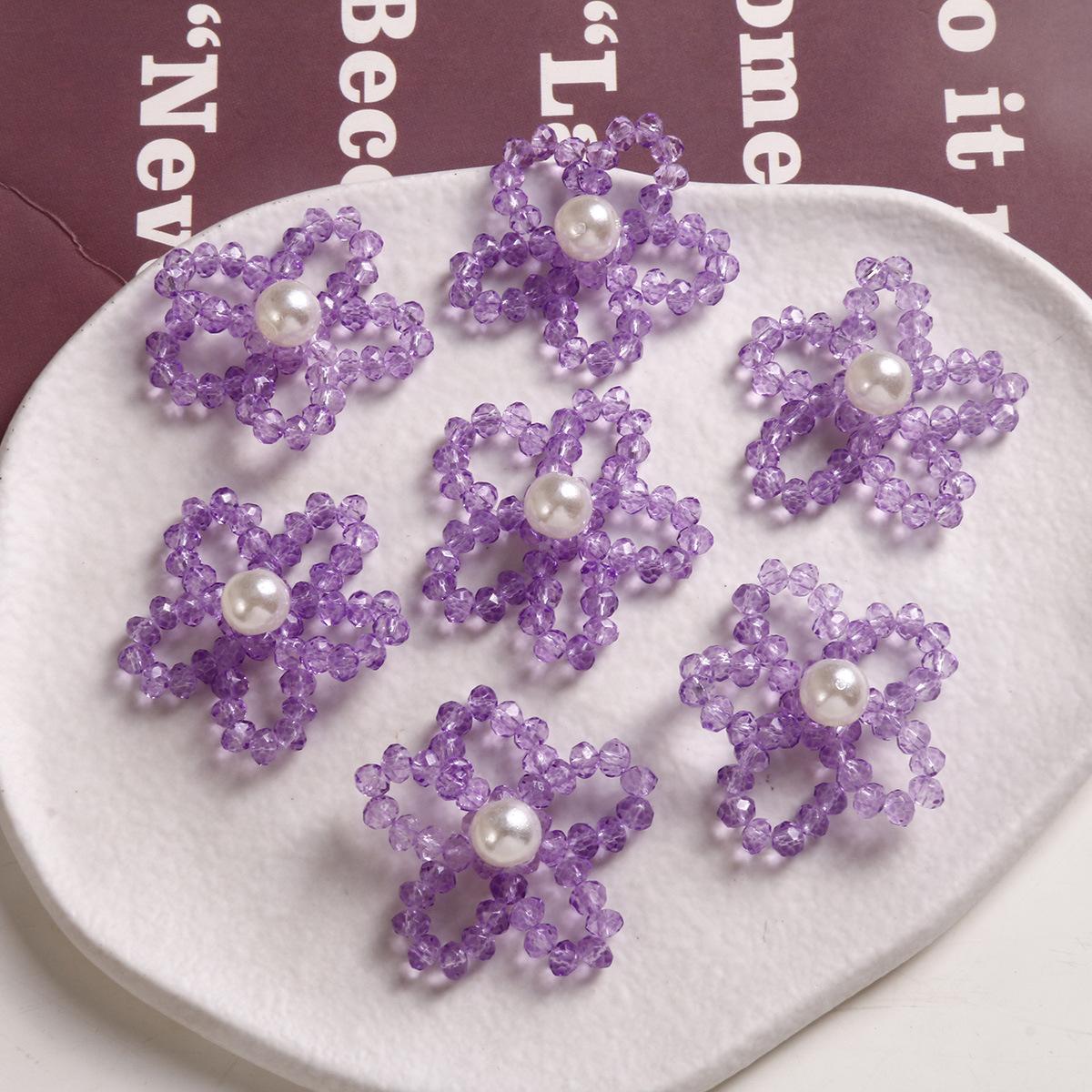 Pendientes de imitación de perla morada con cinco pétalos de flor de vidrio tejidos a mano, tocado, accesorios de joyería DIY, material al por mayor