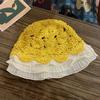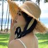 Sombrero de Paja Tejido a Mano con Encaje de Estilo Japonés para Mujer, Sombrero para el Sol Fresco Calado con Protección Solar, Sombrero de Playa para Vacaciones