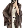 Chal de lana con borlas para mujer, abrigo exterior de estilo europeo y americano, para otoño e invierno, manta, bufanda, abrigo de punto holgado sin hebilla, suéter para mujer