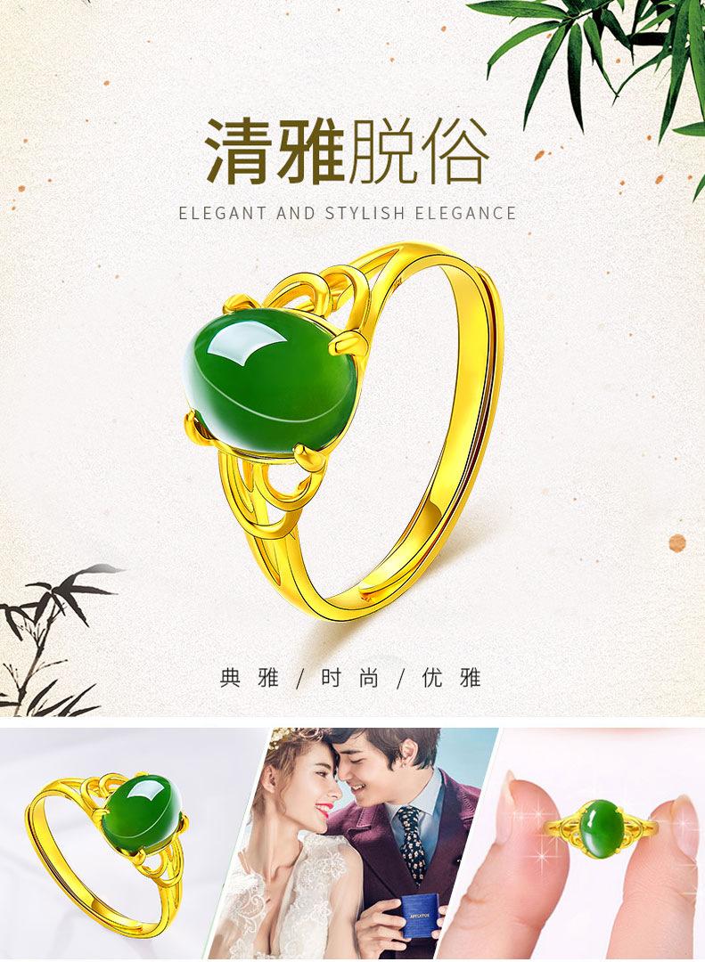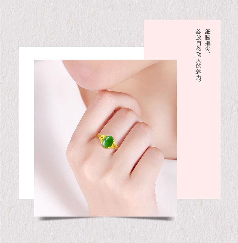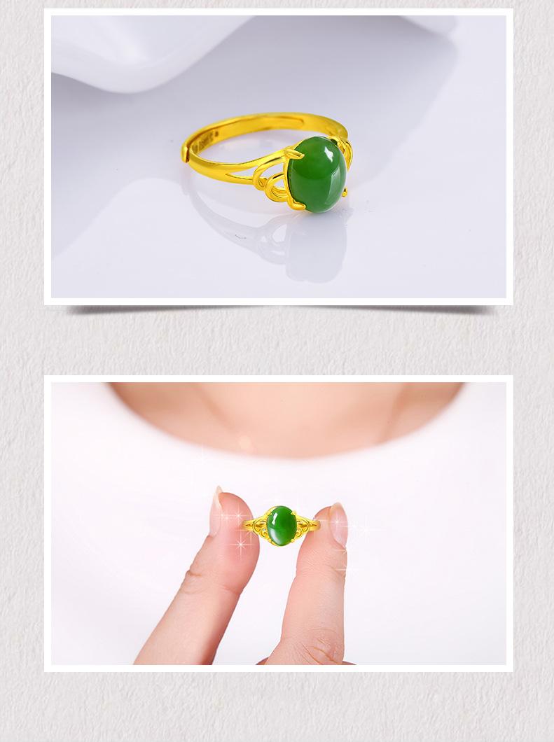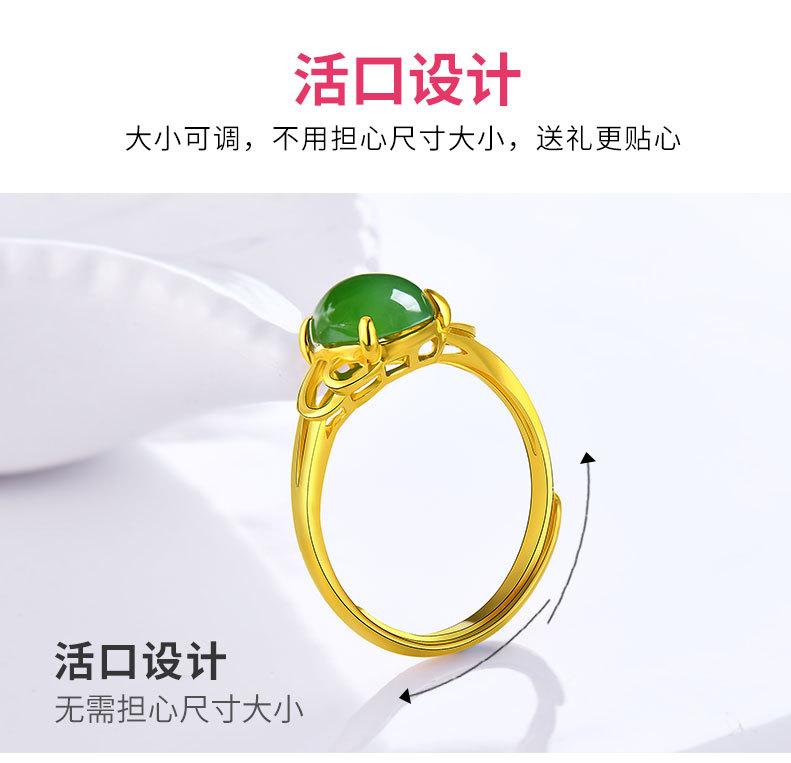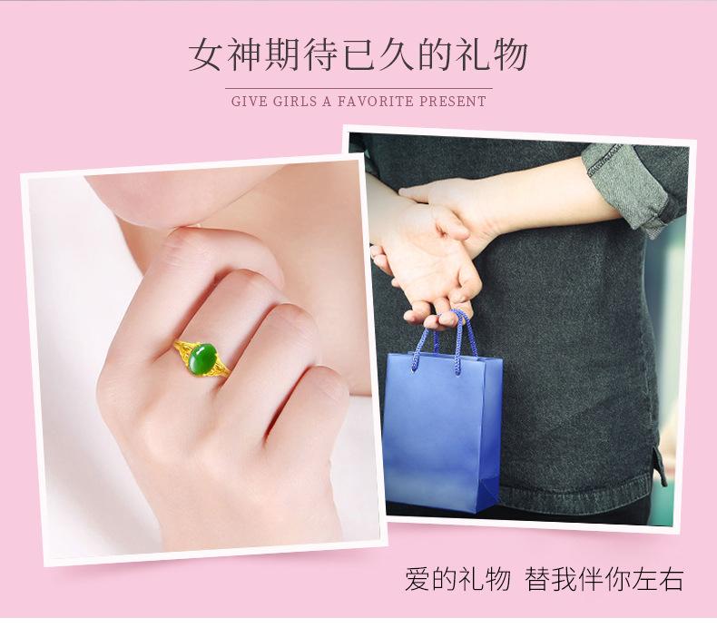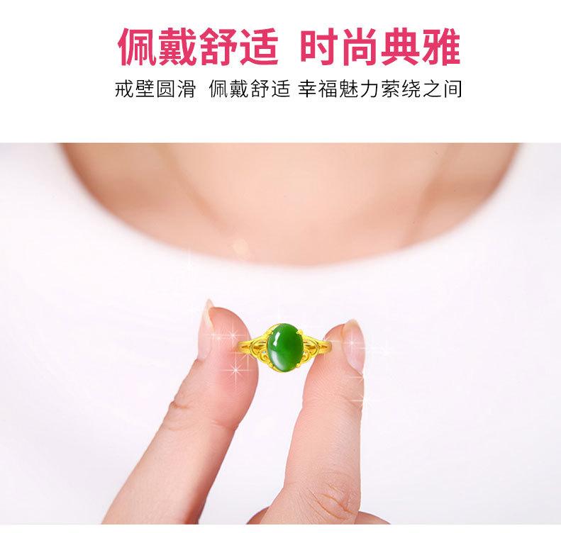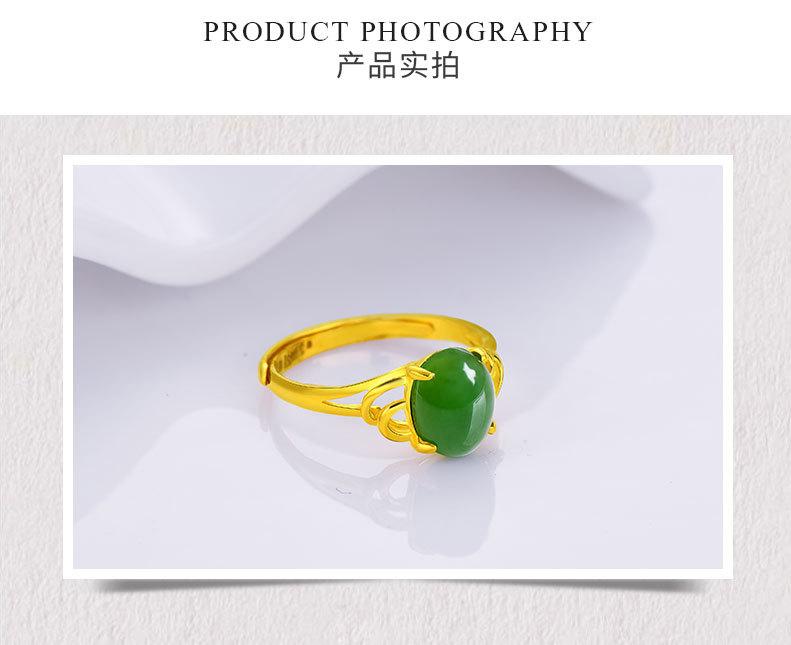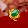 Nuevo Temperamento Chapado Oro de 24K Color Oro Simulación Esmeralda Wada Jasper Anillo de Boda Anillo Abierto Anillo de Mujer