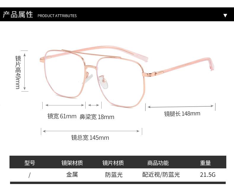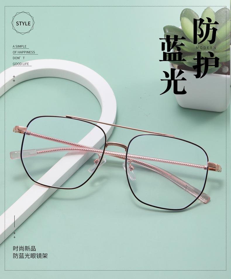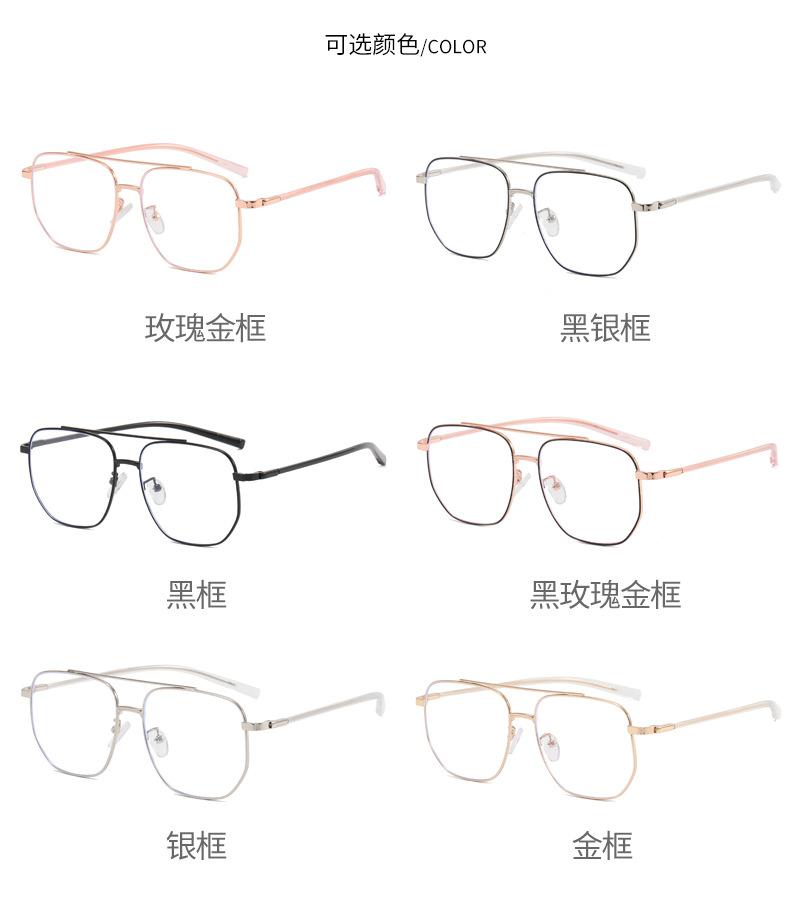 2022 Nueva Moda doble puente anti luz azul gafas lisas personalidad polígono montura retro con montura para gafas de miopía