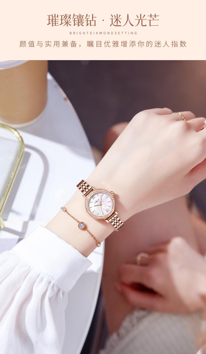 Reloj Yapini para mujer, de cuarzo, ligero y de lujo, con diseño explosivo transfronterizo, resistente al agua, de acero dorado con incrustaciones de diamantes.