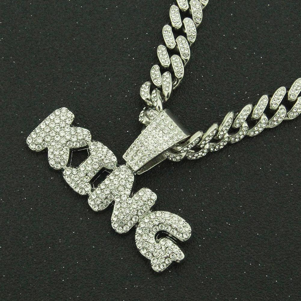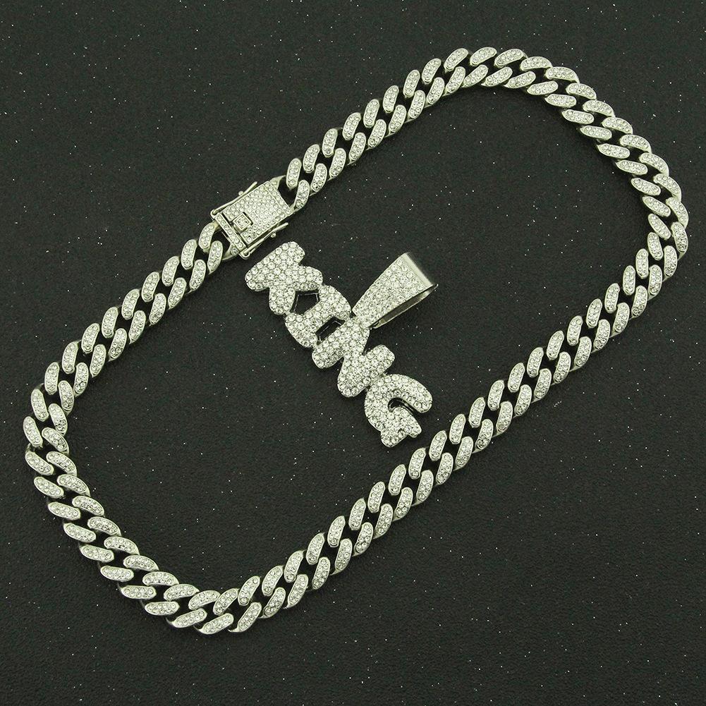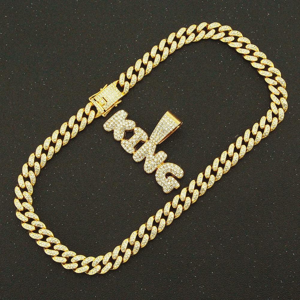 Collar con colgante de letra de diamante con diseño de rey exagerado de hip-hop europeo y americano para hombre, accesorios de cadena cubana dominantes y geniales, joyería
