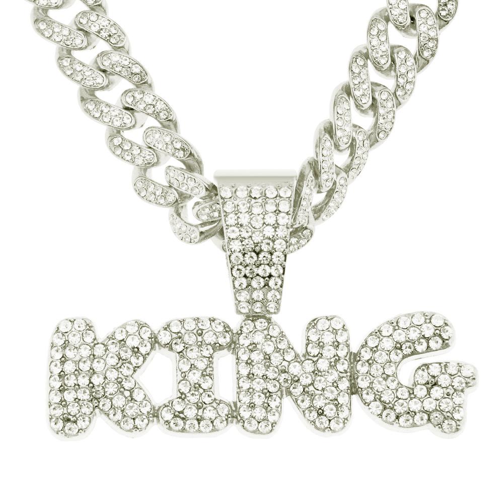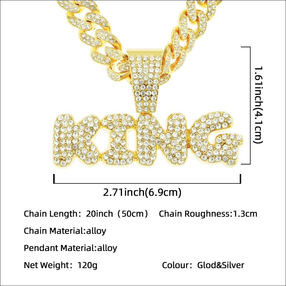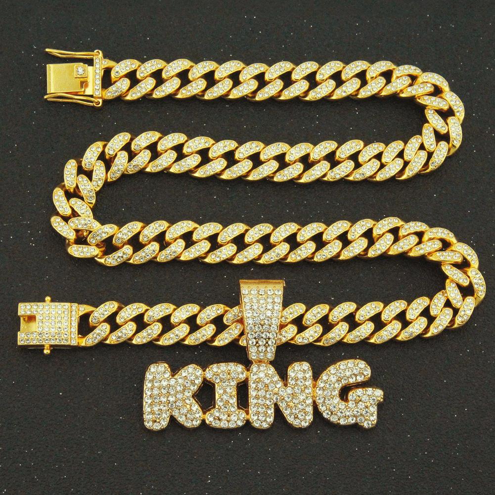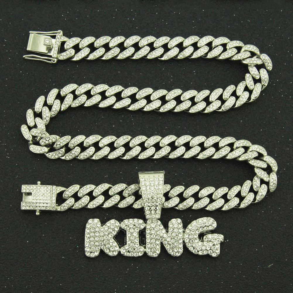Collar con colgante de letra de diamante con diseño de rey exagerado de hip-hop europeo y americano para hombre, accesorios de cadena cubana dominantes y geniales, joyería