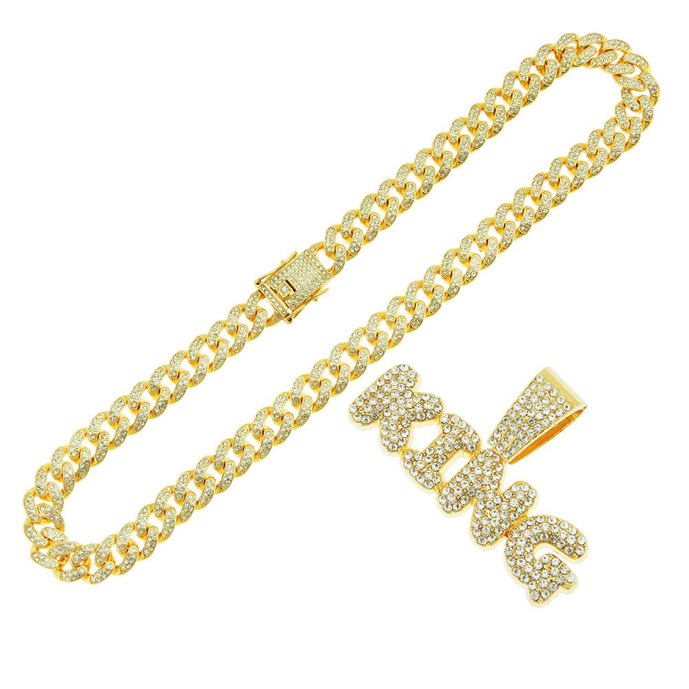 Collar dominante para hombre con colgante de letra de diamante completo, cadena cubana ancha, estilo hip hop, hip-hop, baile callejero europeo y americano