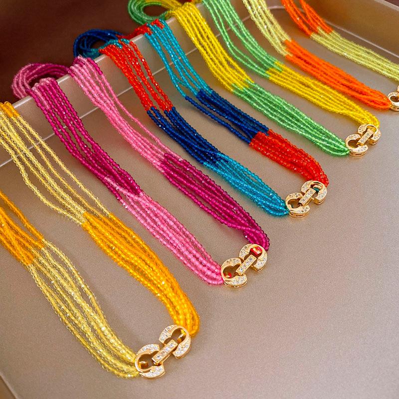 3# Necklace-dark purple, 4# Necklace-Green-Yellow, 7# Necklace-Pink
