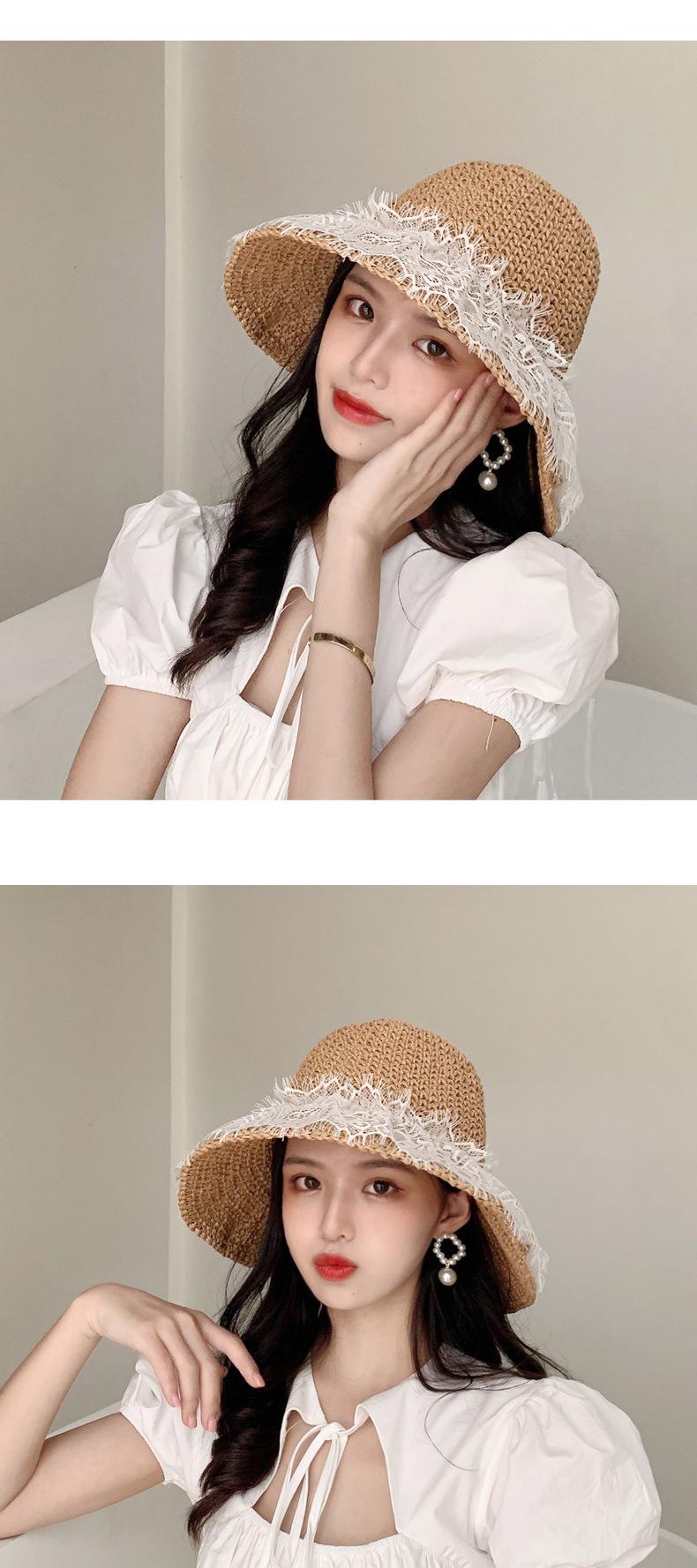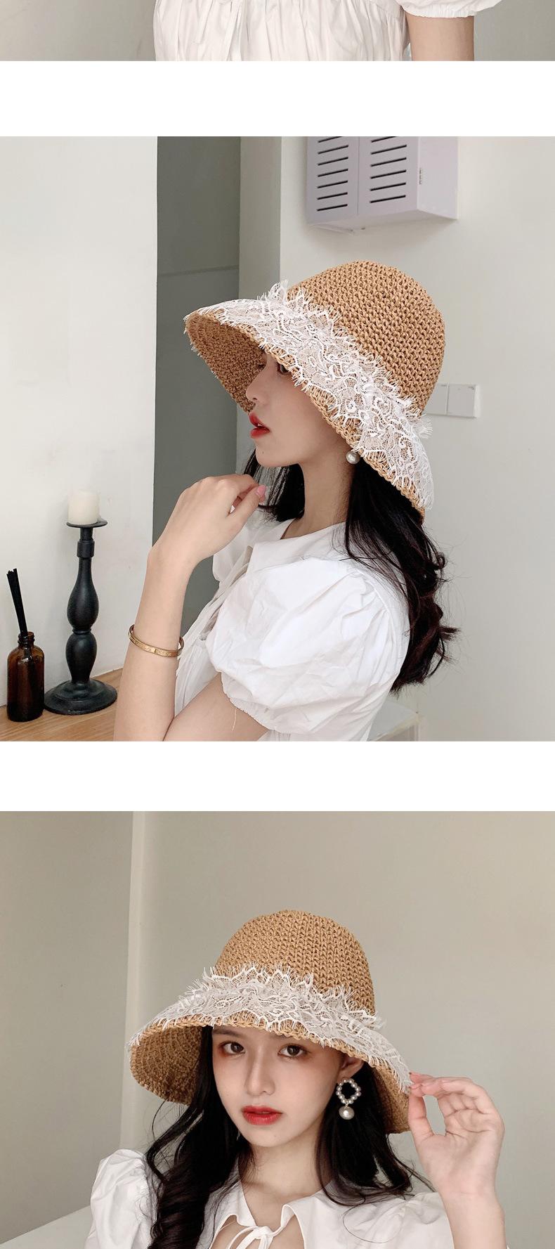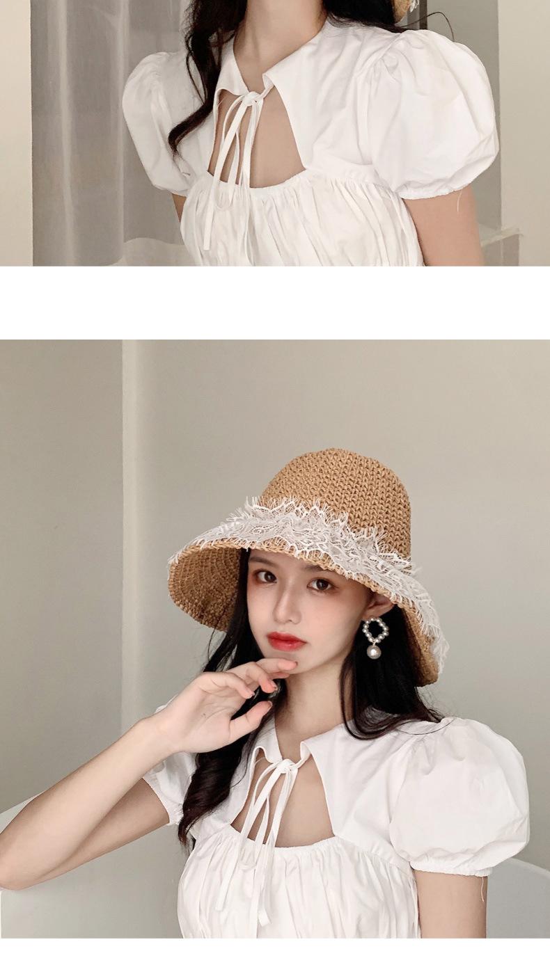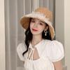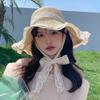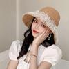 Sombrero de paja con encaje para mujer, pequeño, fresco, protector solar, para playa, de ala grande, estilo coreano, de moda, para pescador, de verano