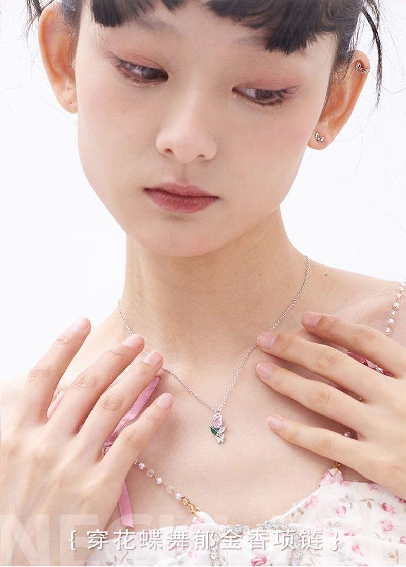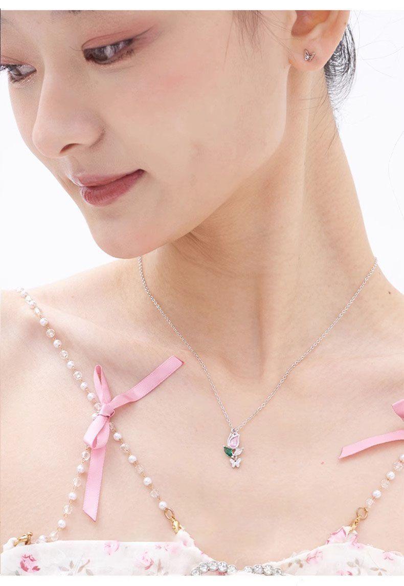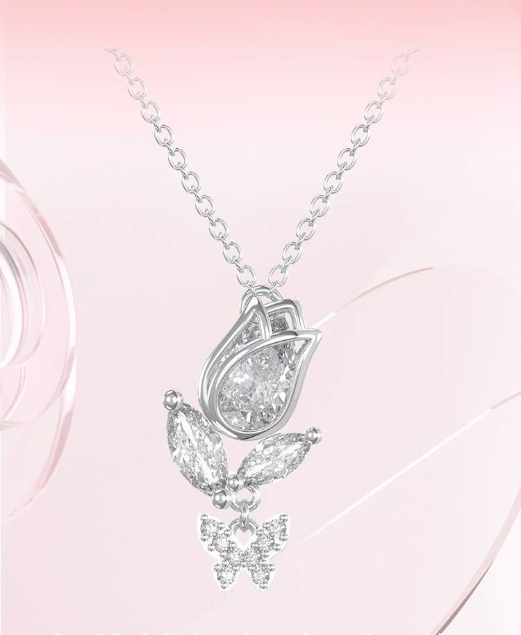 Collar Flor Mariposa Danza Tulipán Espina Amantes Hombres y Mujeres un Diseño de Nicho Lujo Ligero Combinable Collar de Pareja