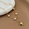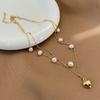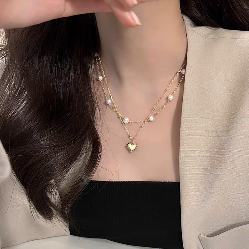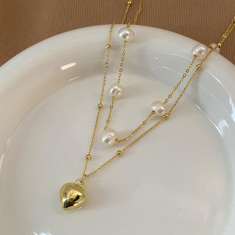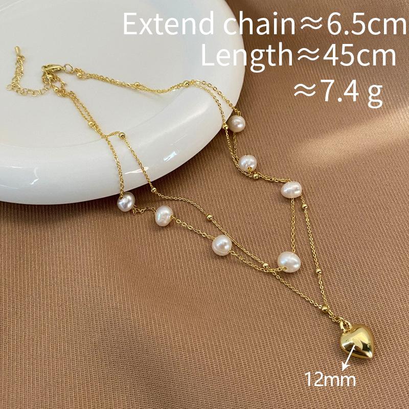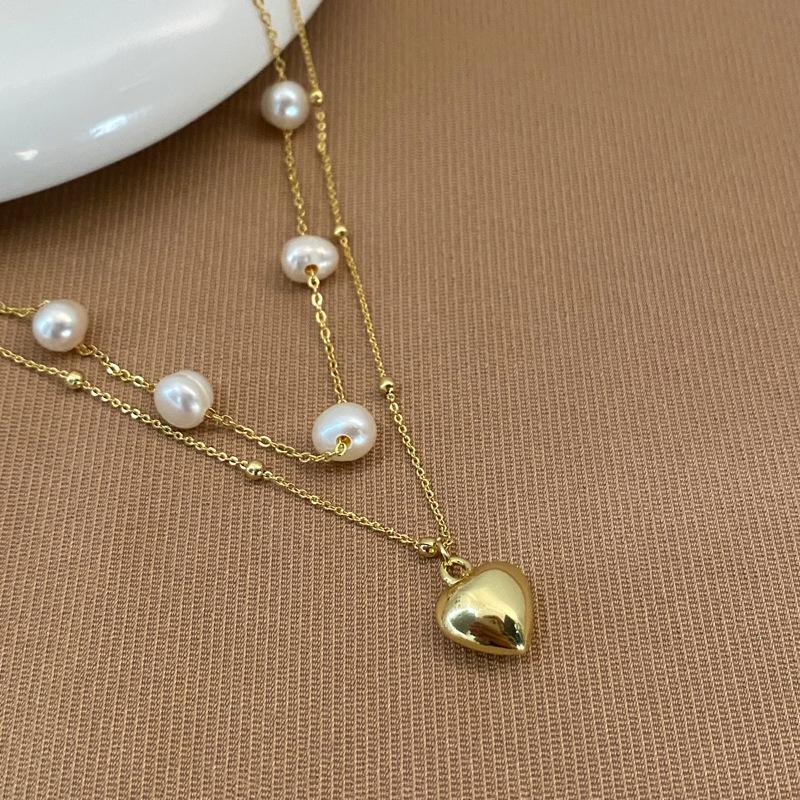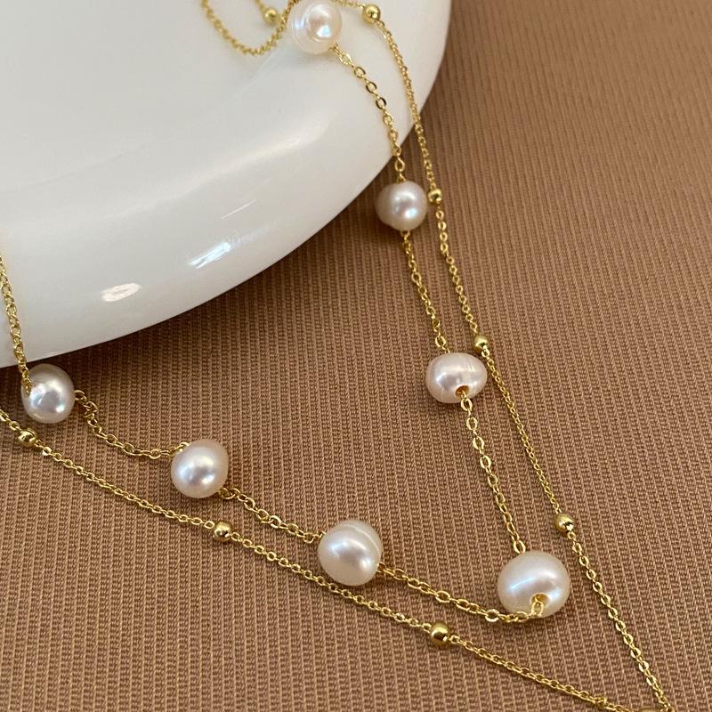 Collar de perlas naturales de agua dulce de doble capa para mujer, cadena de clavícula de lujo, elegante y sencilla, chapada en cobre con oro auténtico.