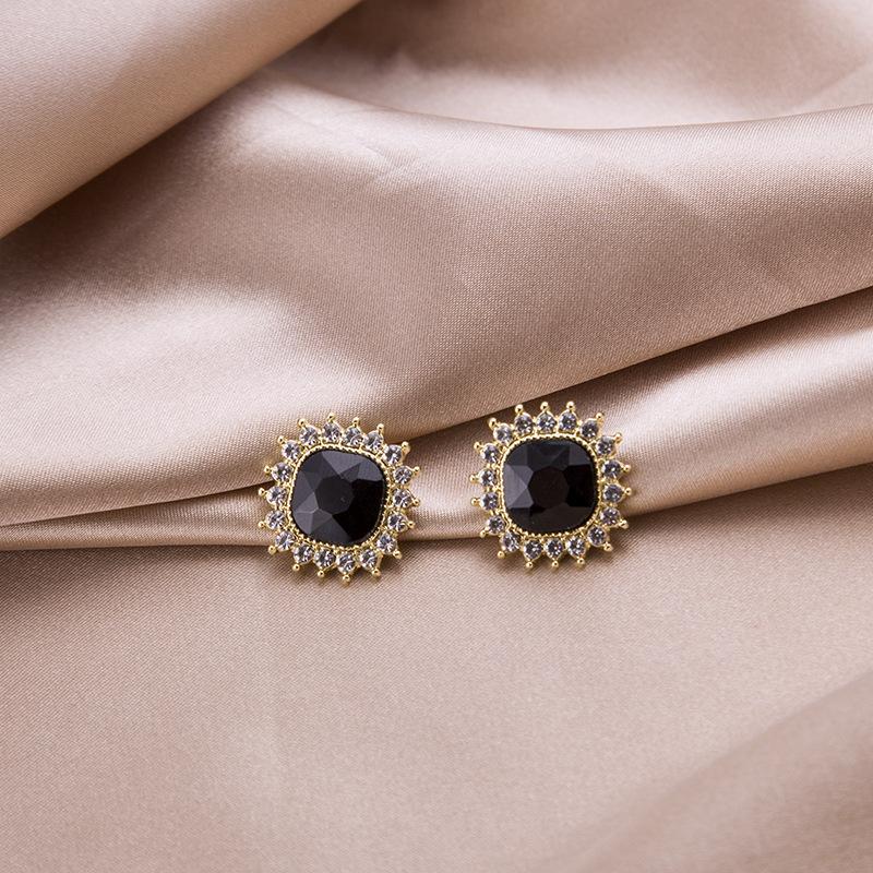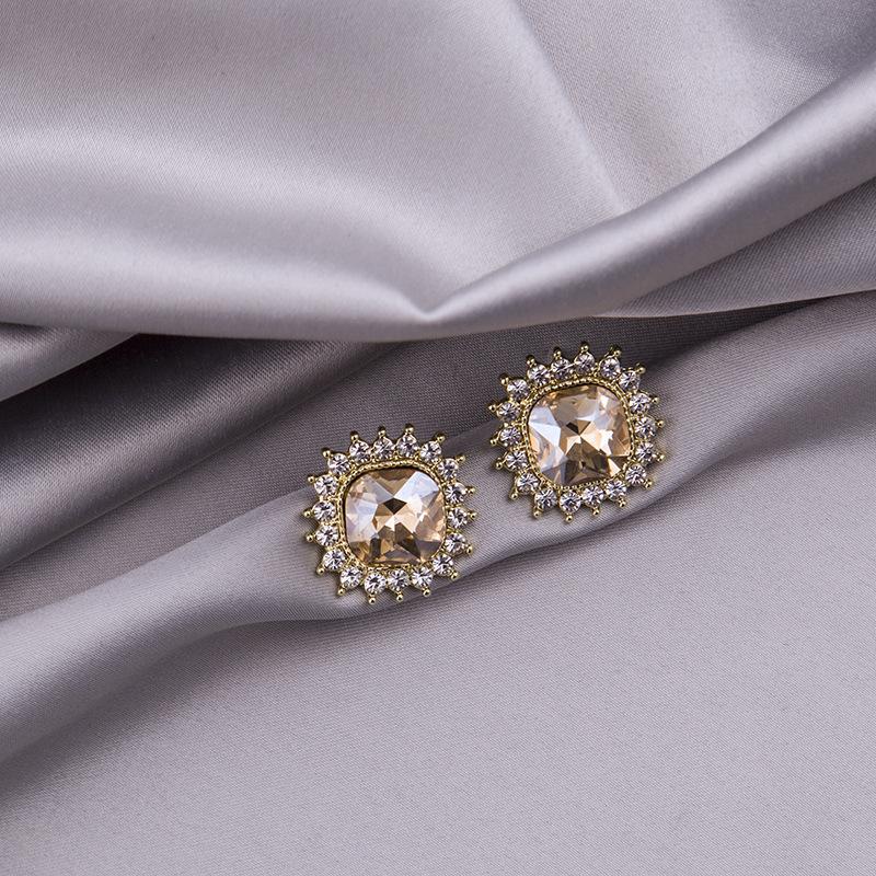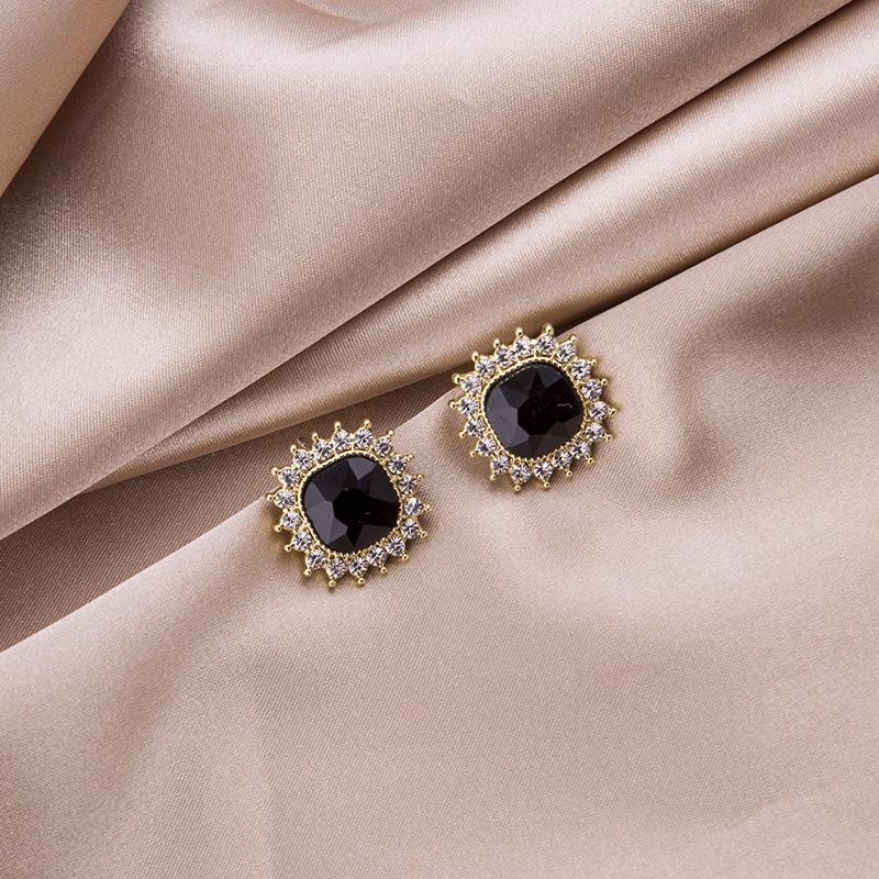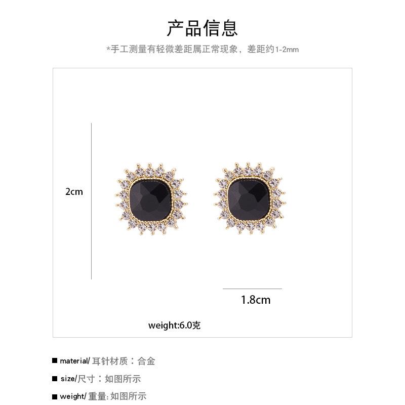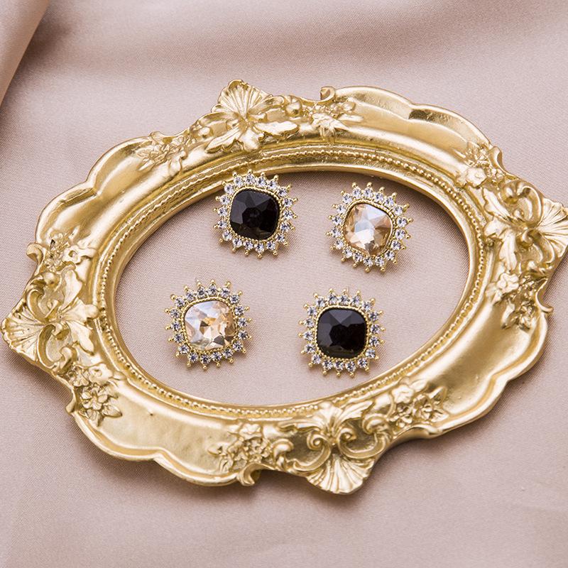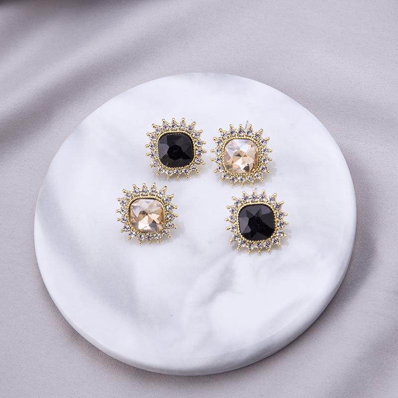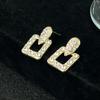 Pendientes de aguja de plata S925 con diamantes de imitación cuadrados, elegantes y sencillos, con un toque de celebridad de Internet, exquisitos pendientes estilo retro de Hong Kong.